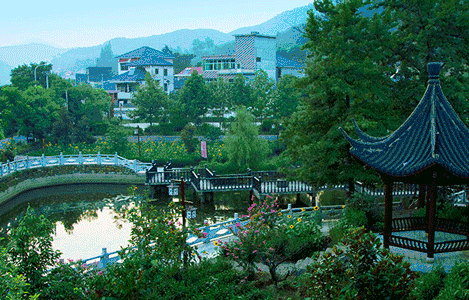 漫步村间小道,竹林郁郁葱葱,白墙黑瓦仿徽派建筑恢宏大气,飞檐翘角流露着飘逸俊秀