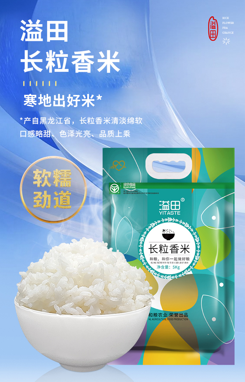 溢田 长粒香大米5kg绿色食品东北大米新米【厂家直供】清香软糯 健康安心 煮粥 煮饭 炒饭优选