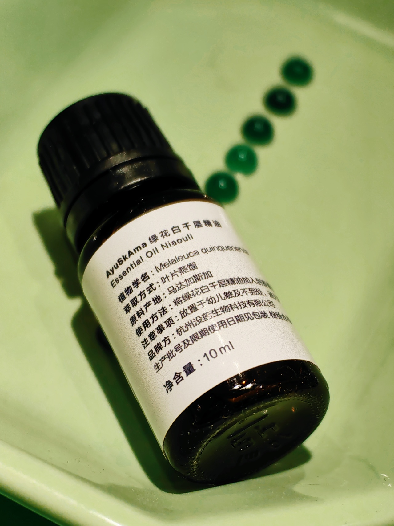 绿花白千层精油相当万用了,大家可根据需求选择最适合的方式。日常可以作为香薰,缓解压力,提升情绪,也让呼吸道更通畅,但需注意不要过于贴近鼻腔口,以避免刺激呼吸道;