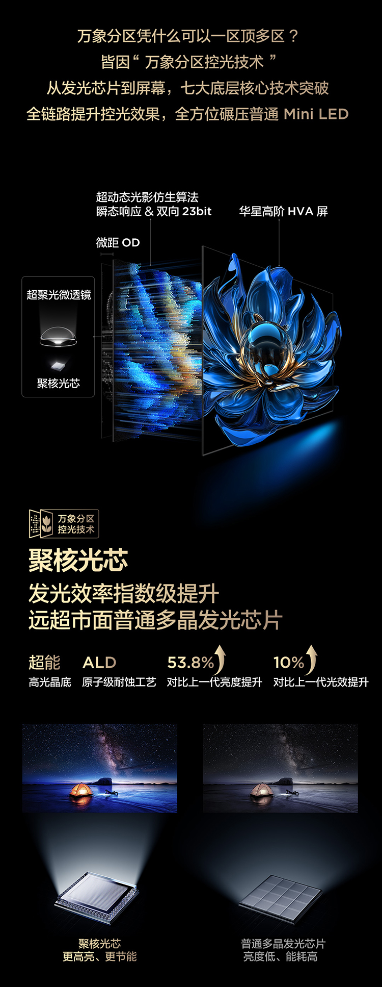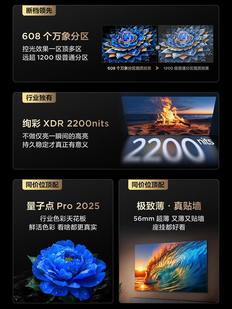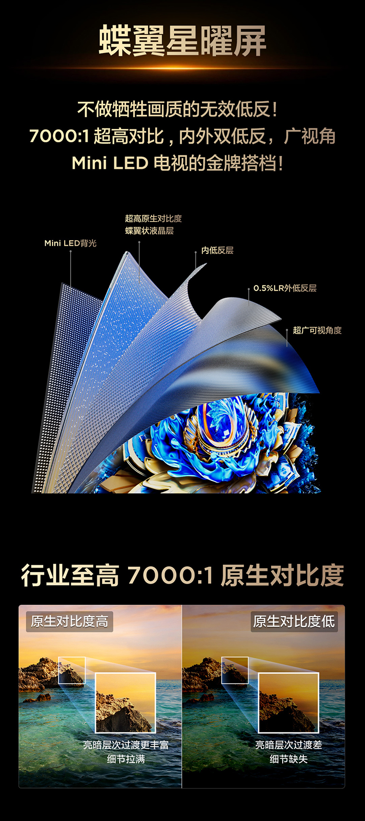 TCL电视 65T7L Pro 65英寸 QD-Mini LED 蝶翼星曜屏 万象分区 绚彩XDR 2200nits 超薄电视