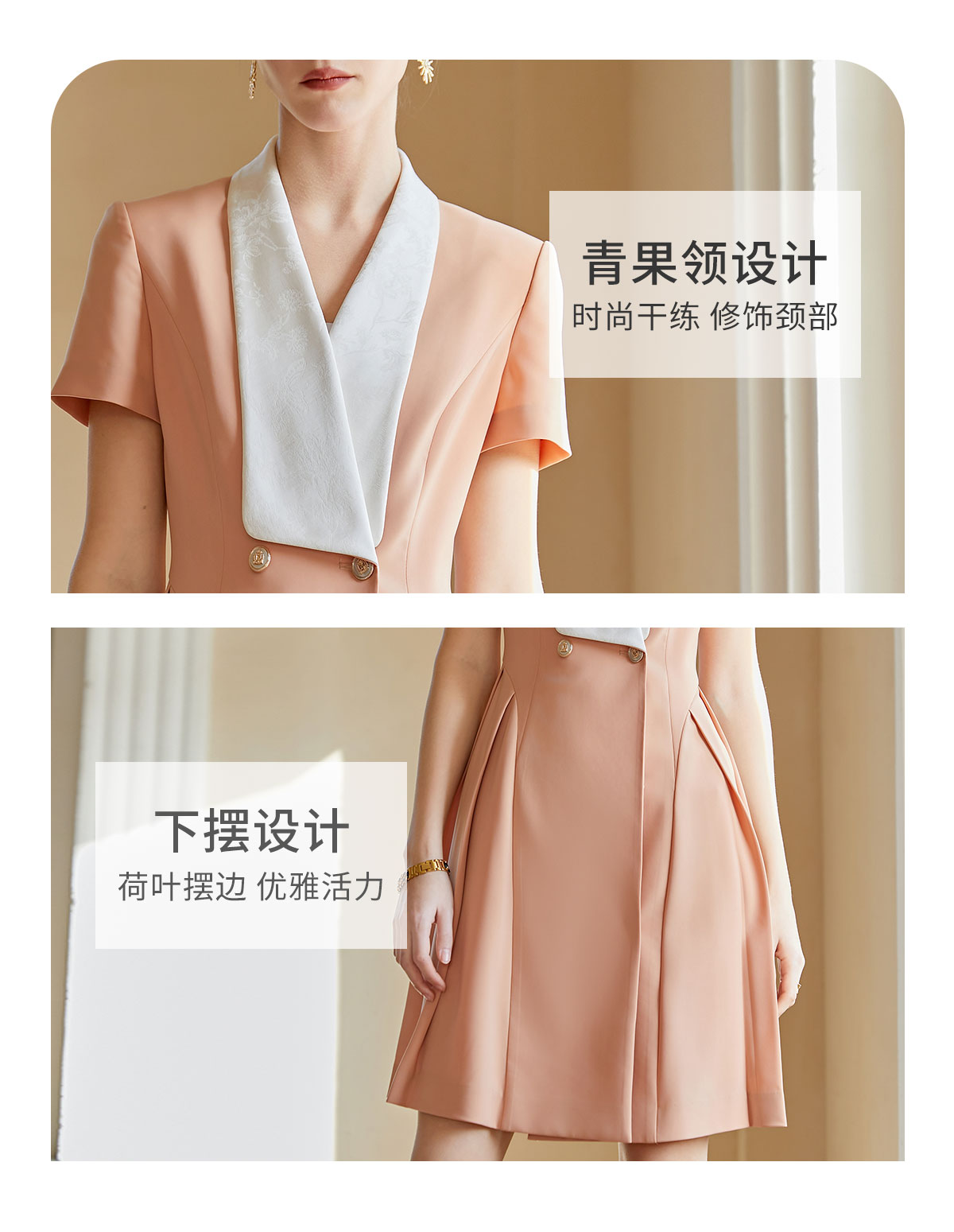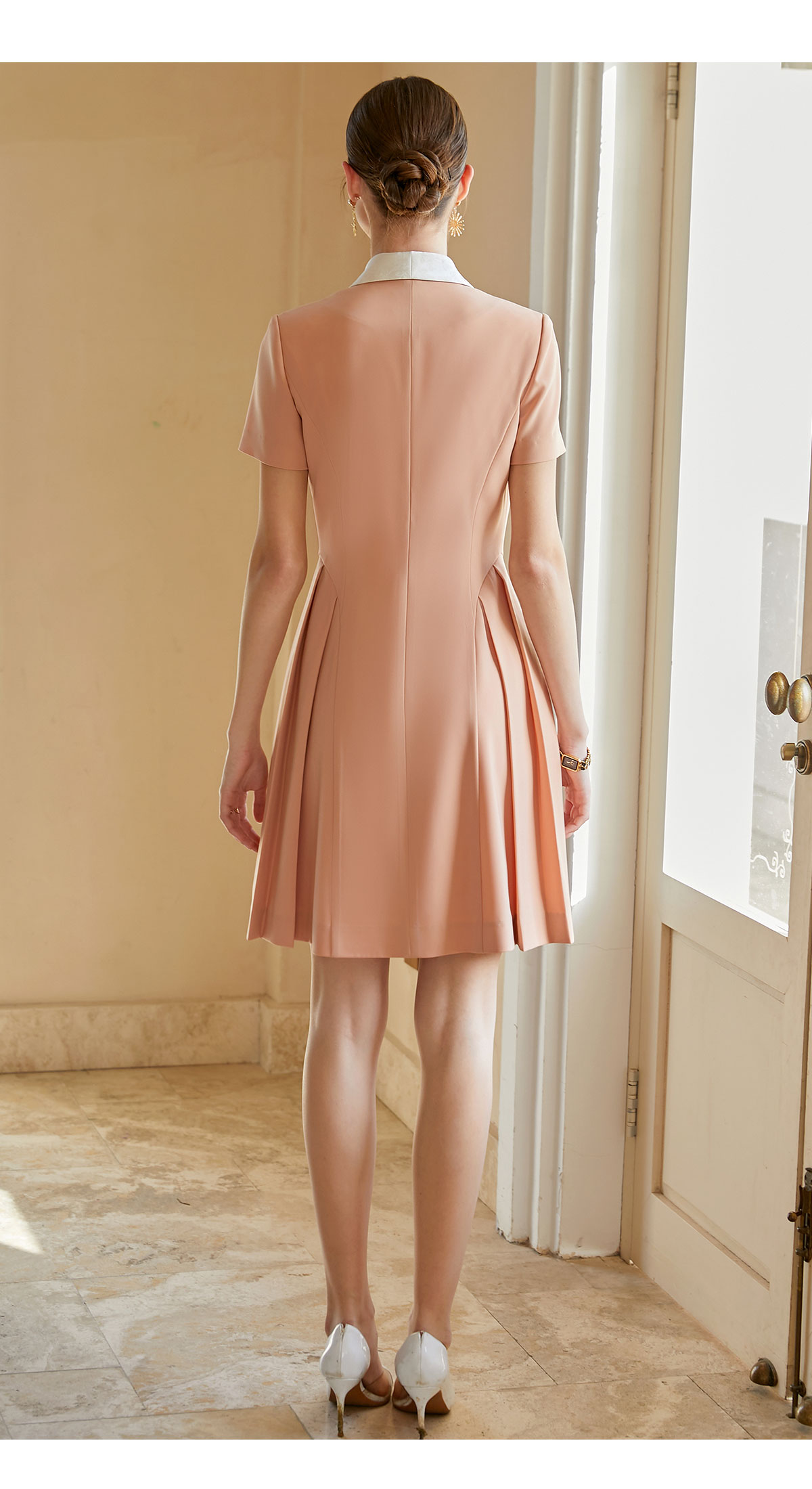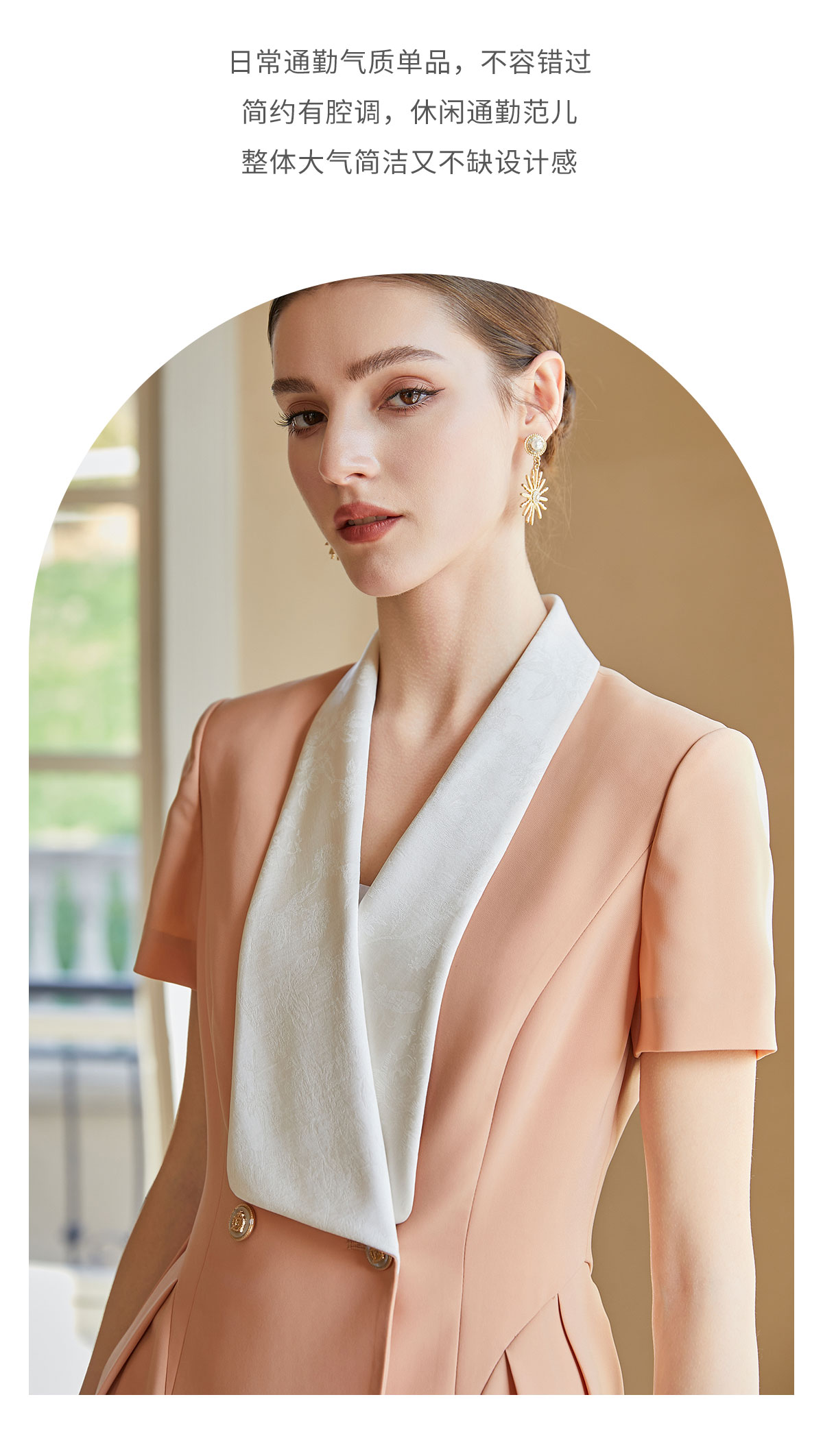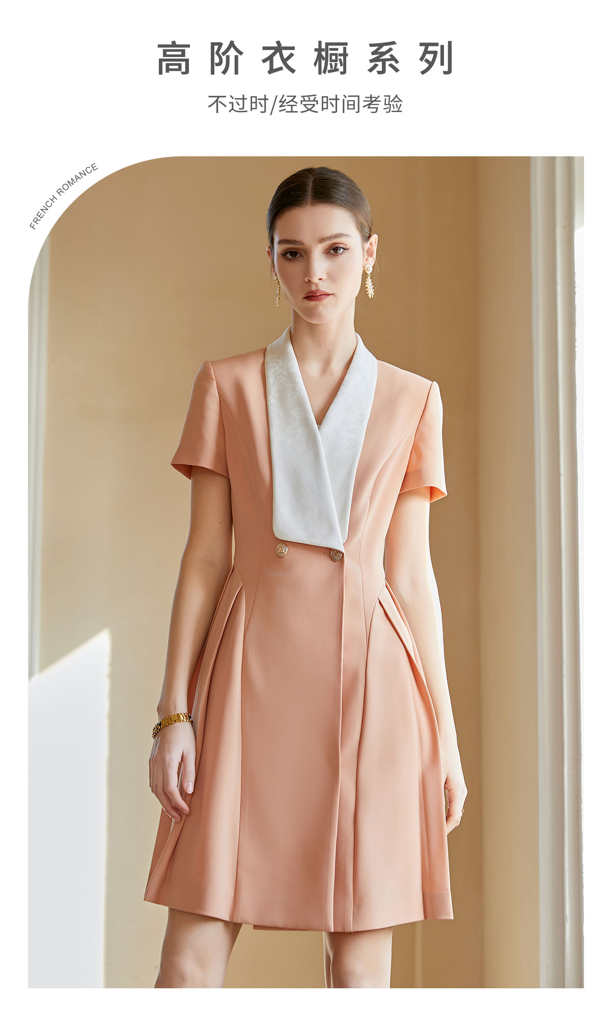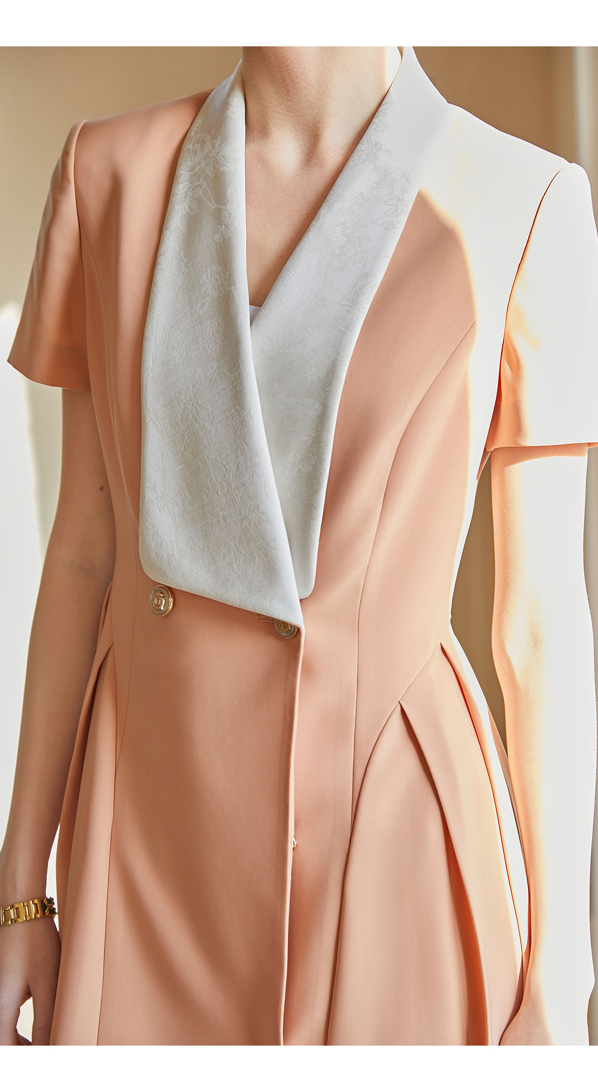 AD夏日多巴胺西装连衣裙女显白橘粉色百褶伞裙新款提花法式连身裙