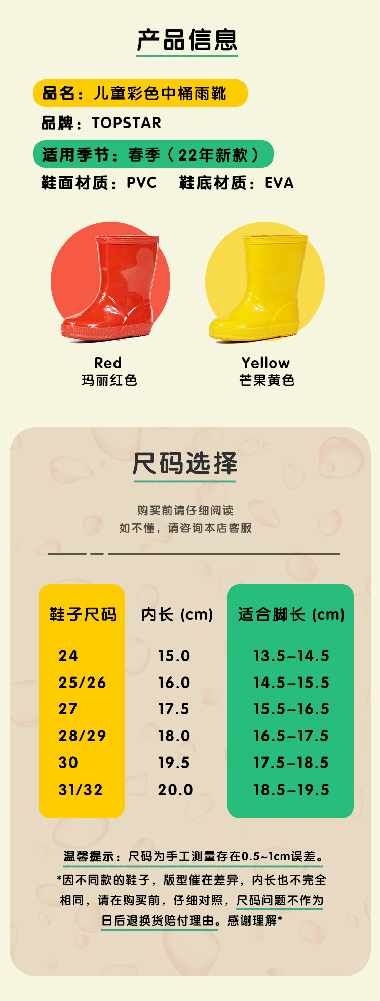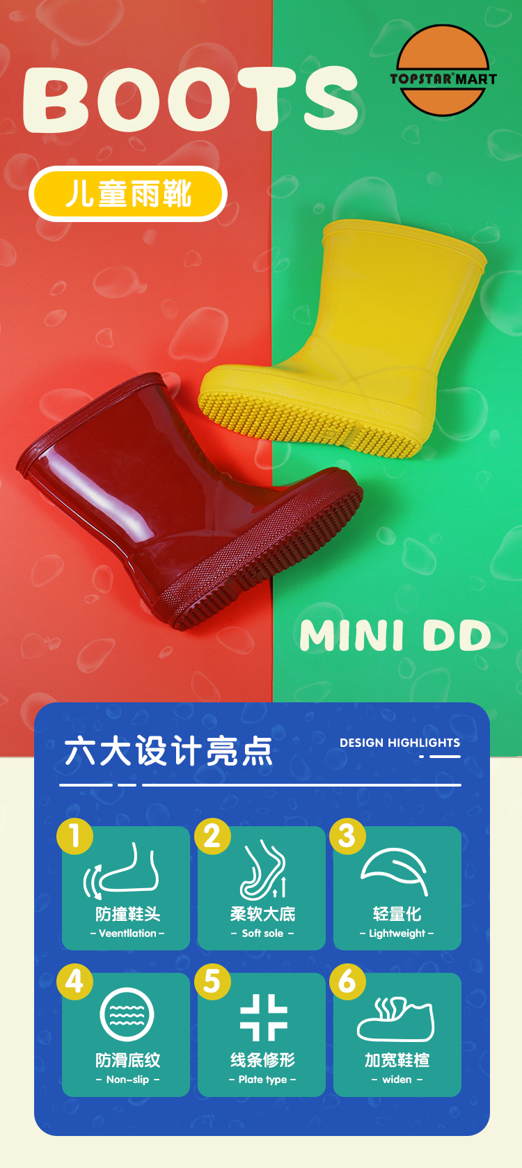 TOPSTAR&MINI DD儿童雨鞋男童宝宝防滑雨靴女童水鞋防水小孩胶鞋