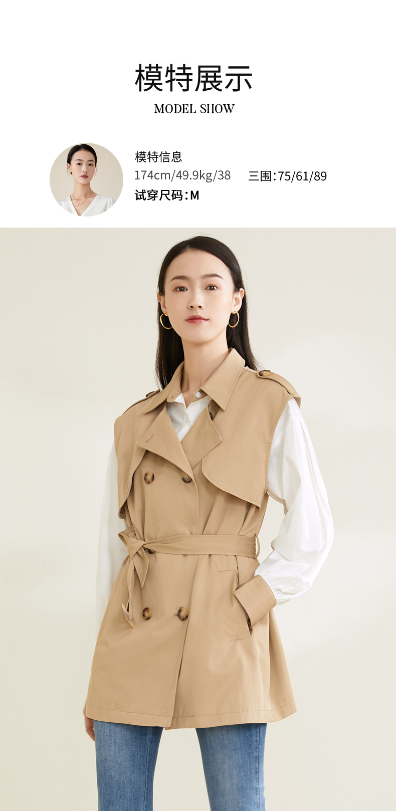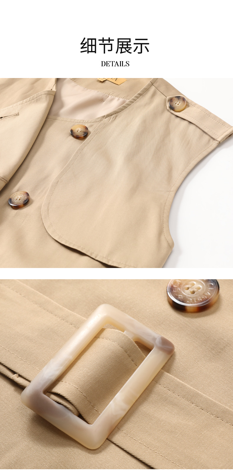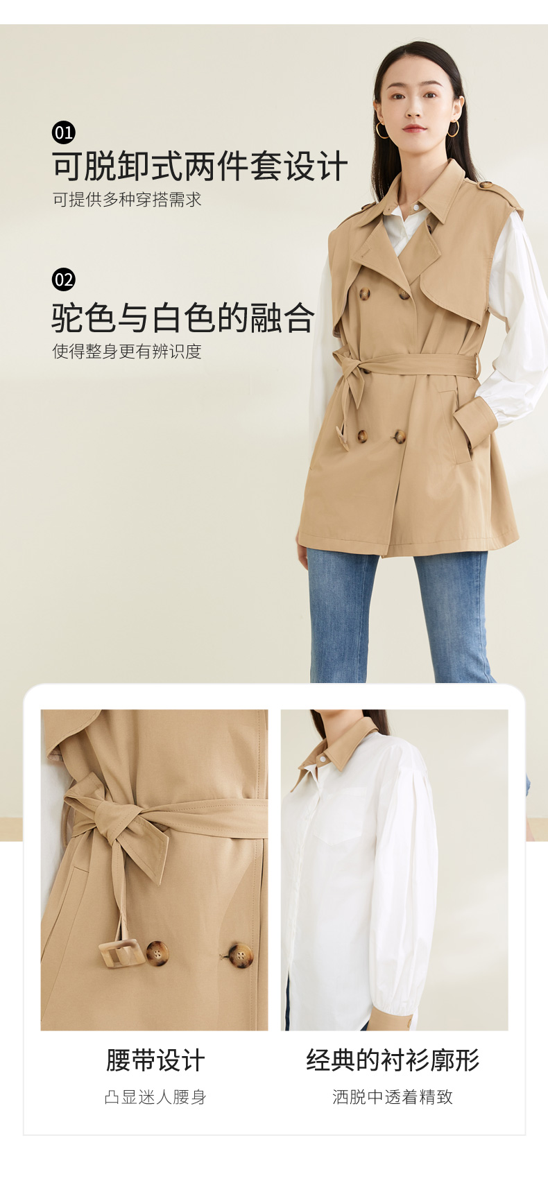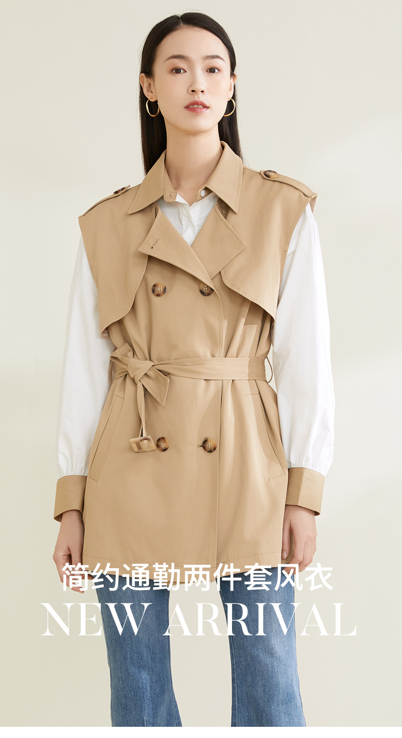 玳莎风衣套装中长款2022春装新款通勤衬衫马甲两件套外套女 CA38302