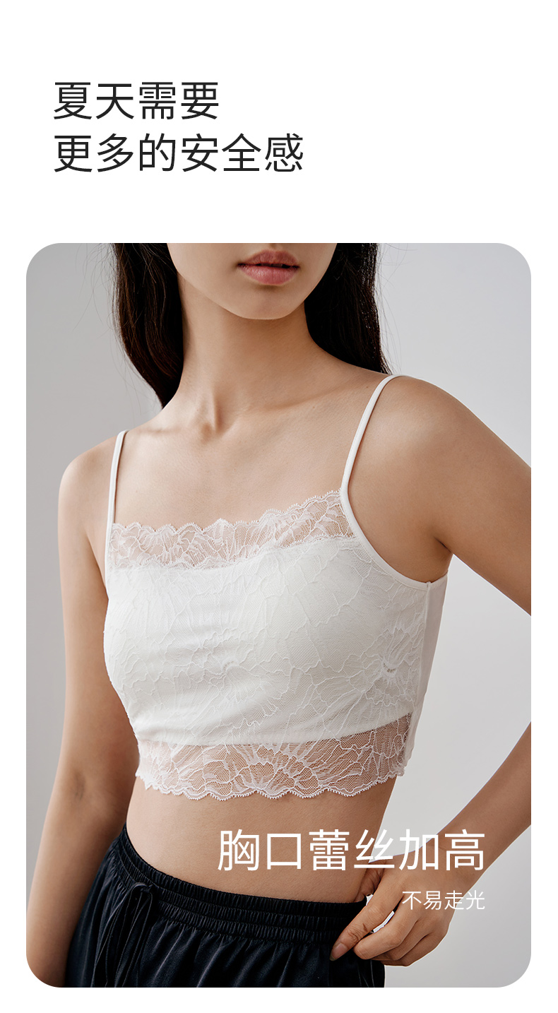 金三塔桑蚕丝抹胸式文胸女透气舒适蕾丝吊带bra-in带杯垫内衣新品 NZFFB401