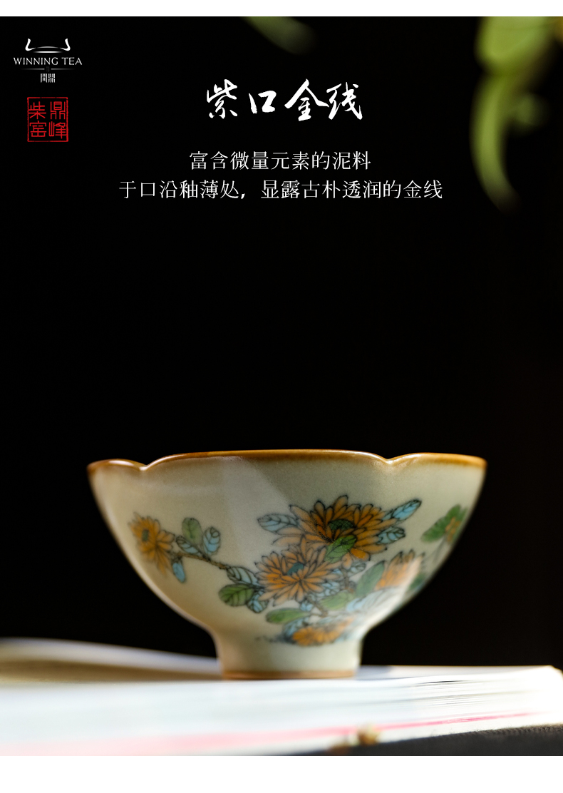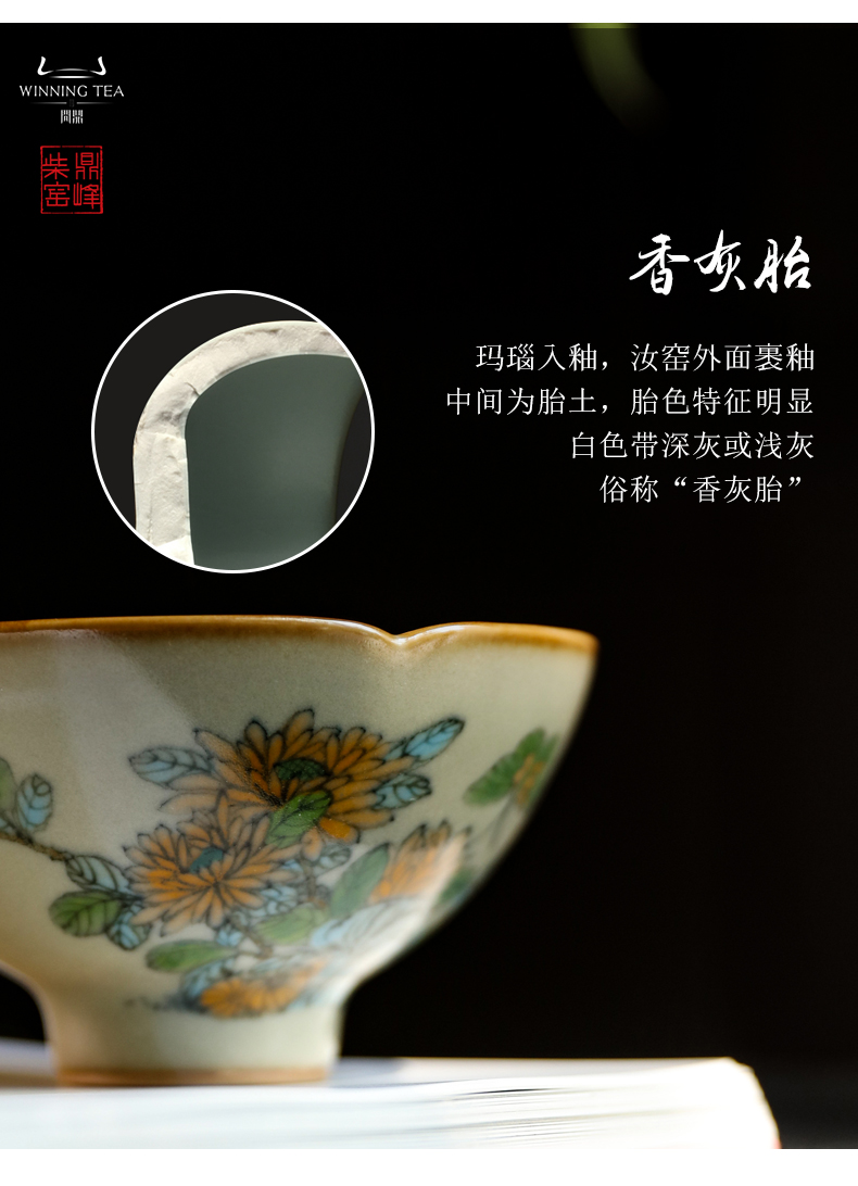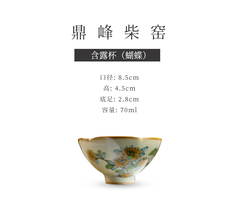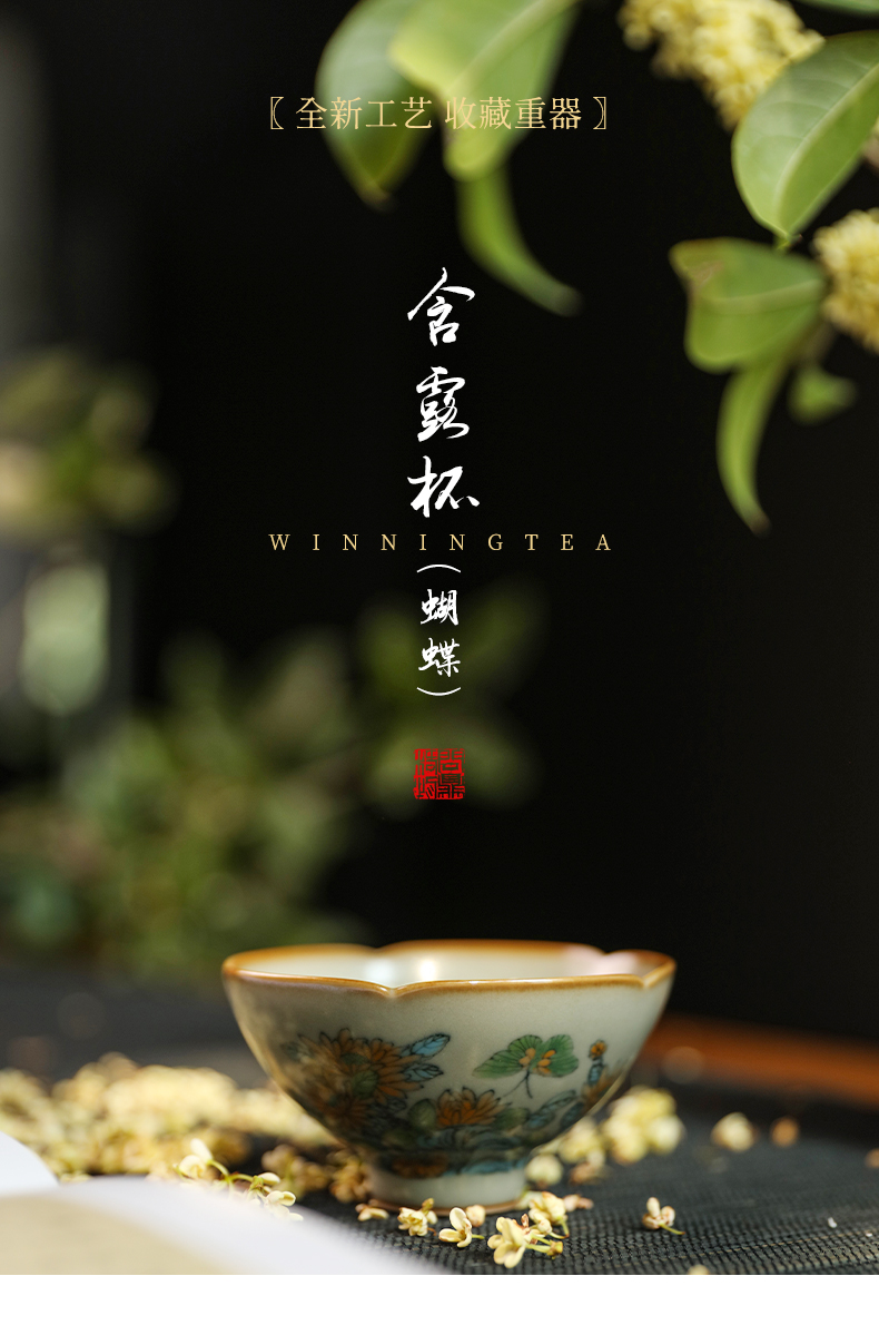 问鼎汝瓷鼎峰柴窑高温彩含露杯(蝴蝶)(缺货)