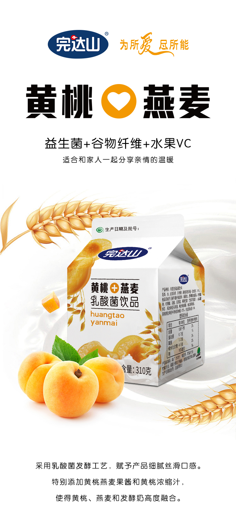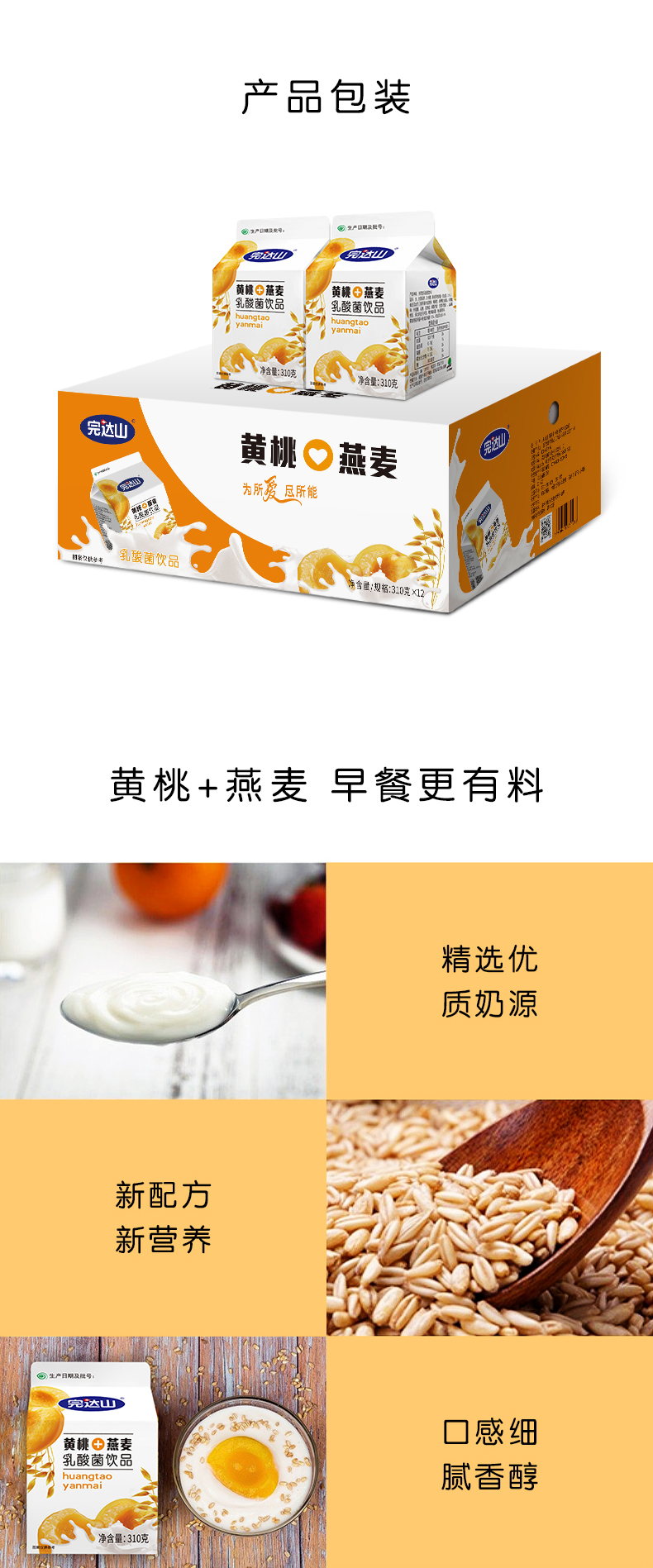 完达山黄桃燕麦酸奶饮品310g*12盒
