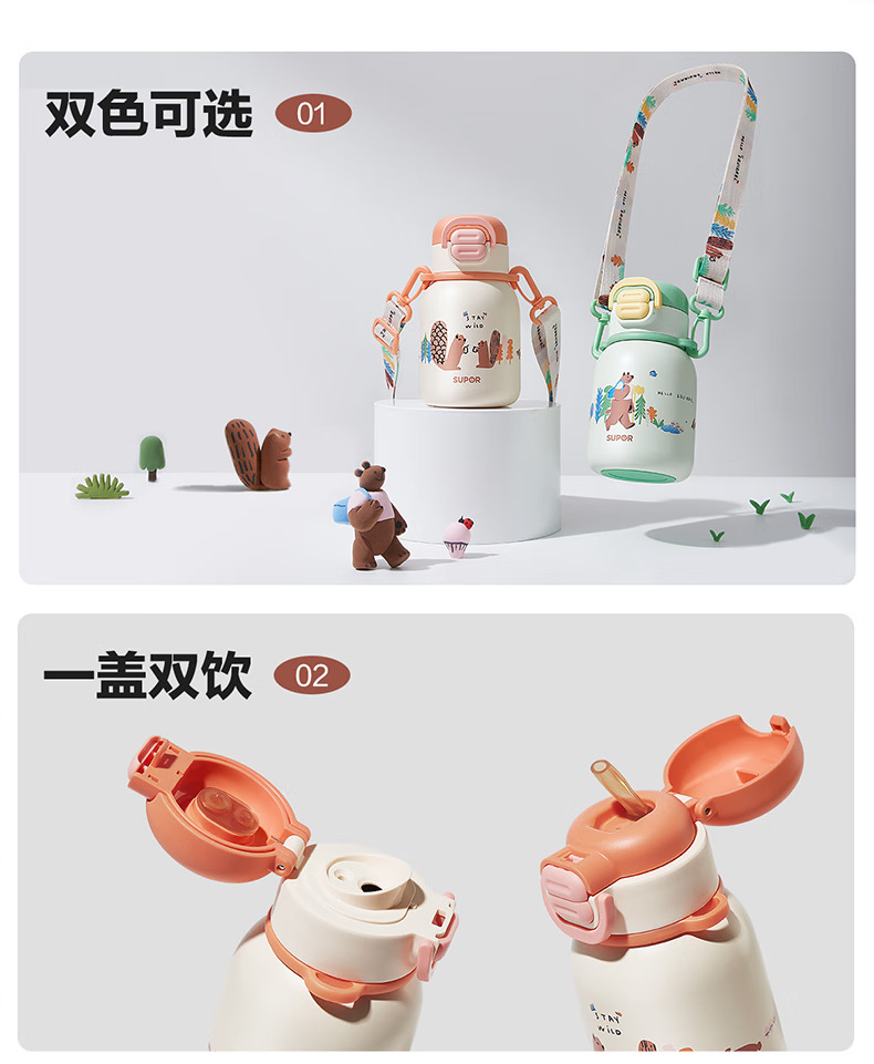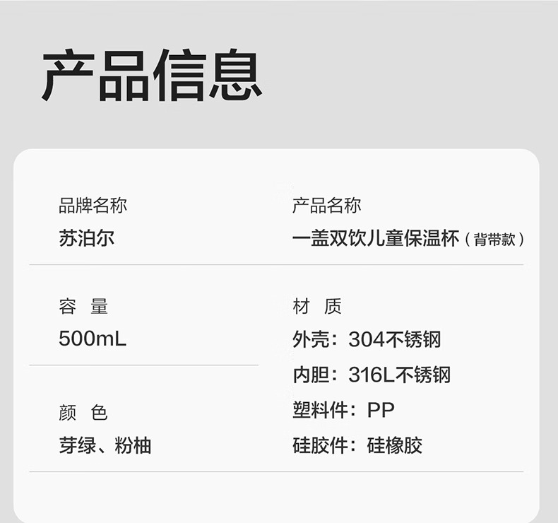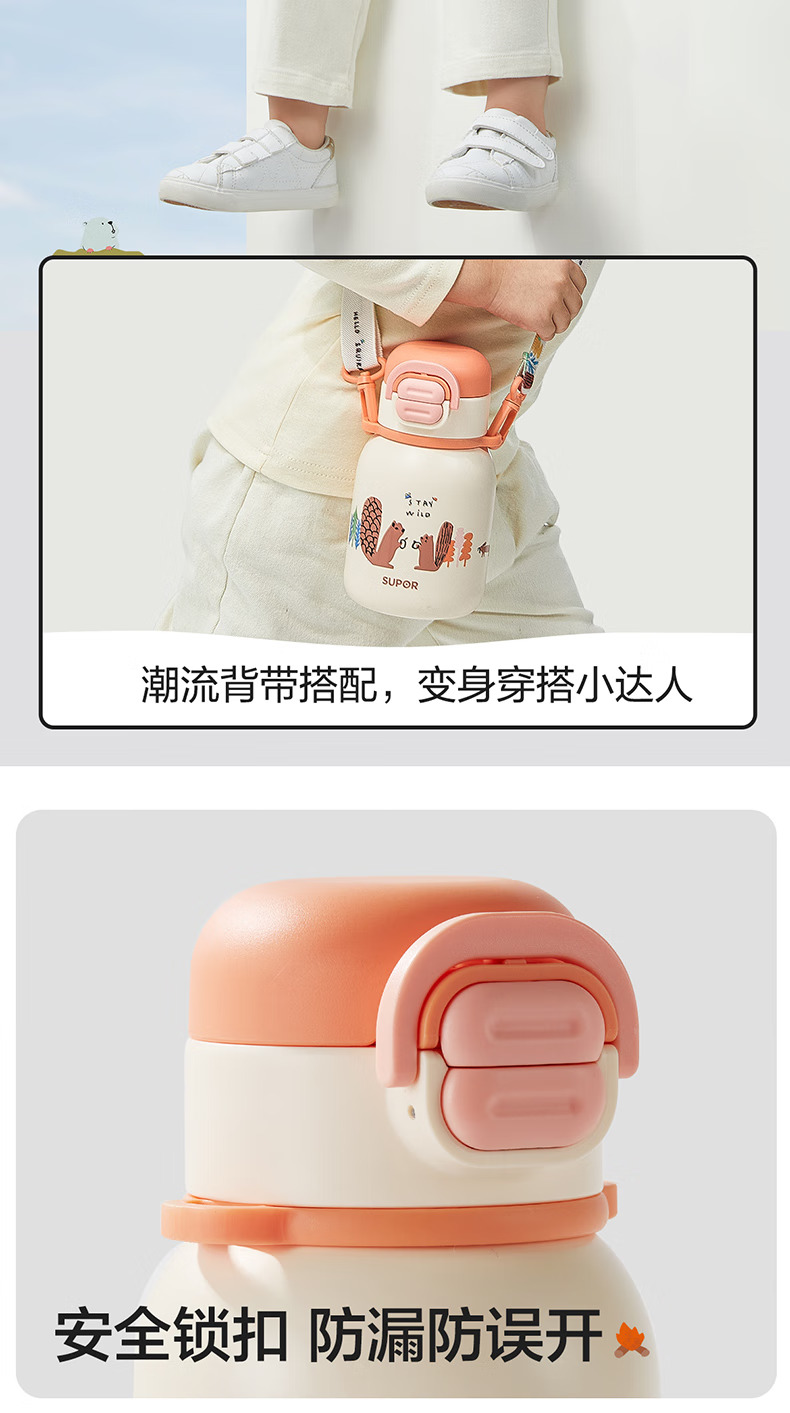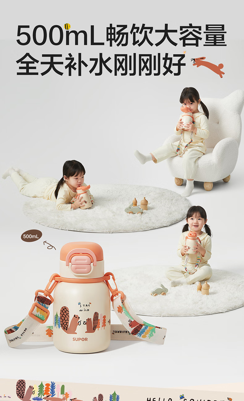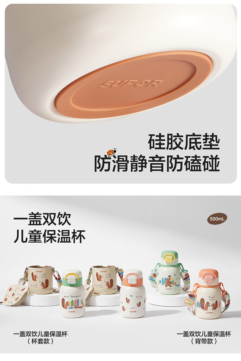 SUPOR苏泊尔儿童保温杯水杯316L儿童水壶外出 杯套款·芽绿 500ml