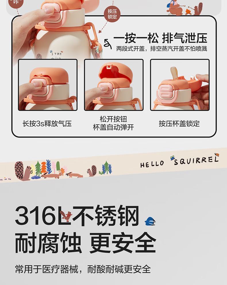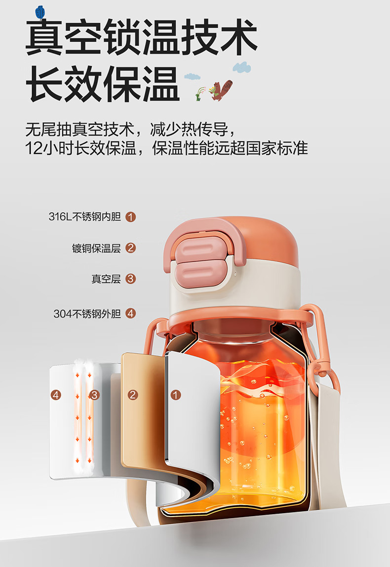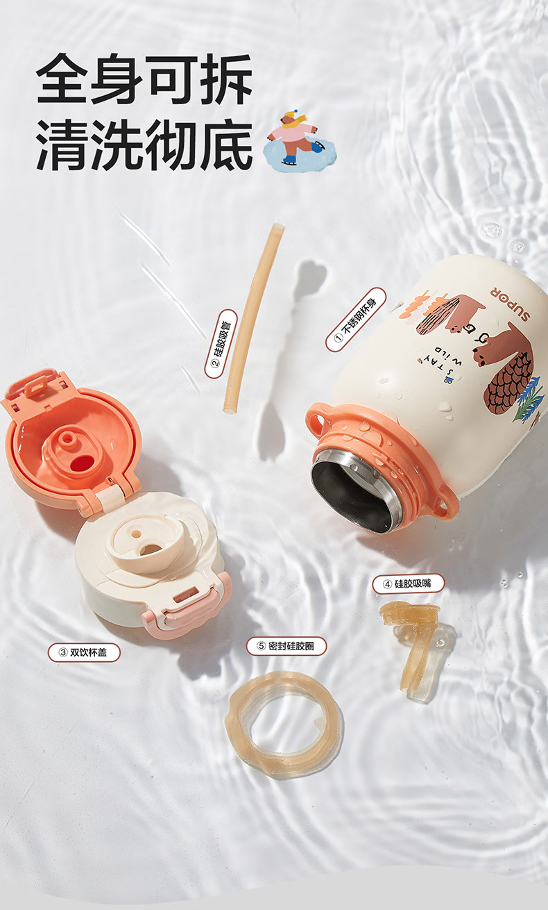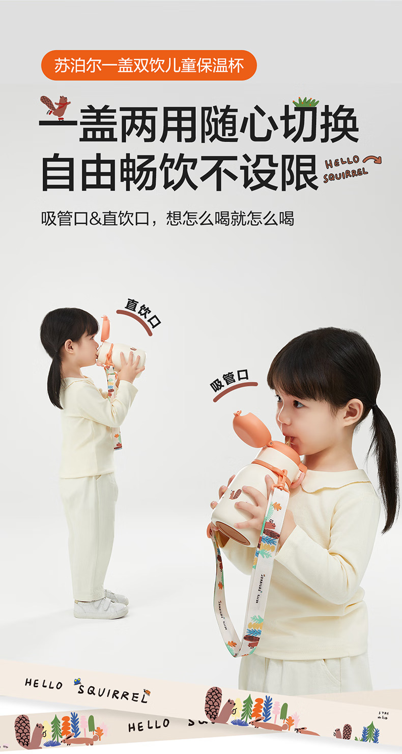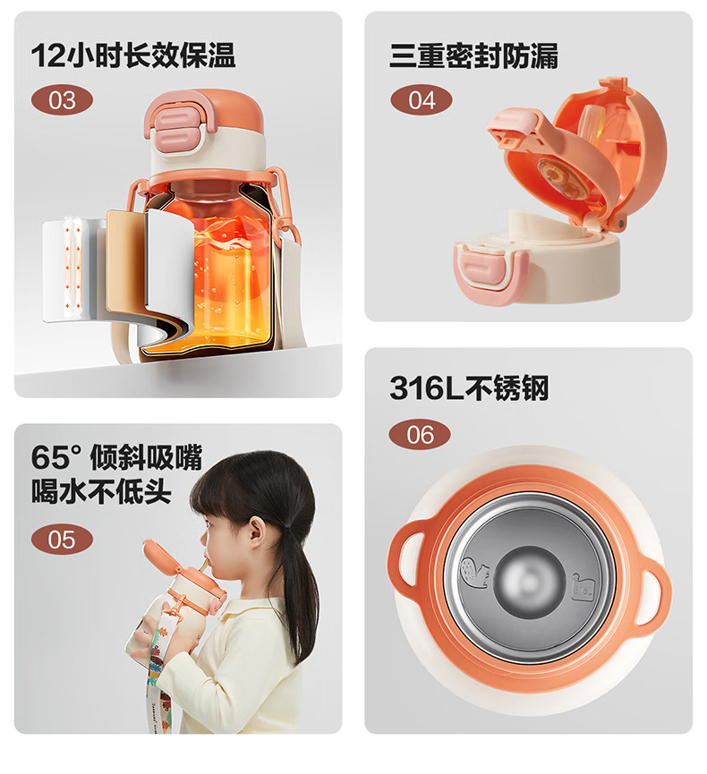 SUPOR苏泊尔儿童保温杯水杯316L儿童水壶外出 杯套款·芽绿 500ml