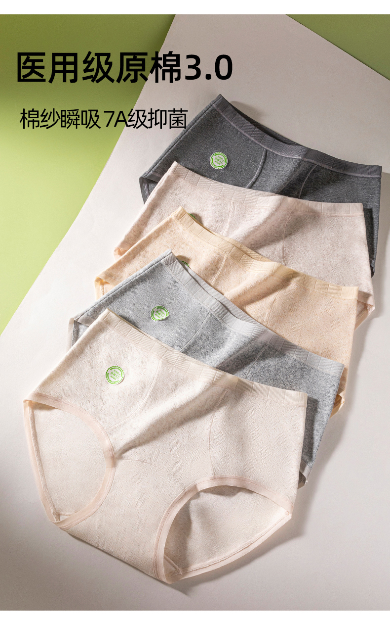 【超值5条装】早秋7A级原棉内裤3.0,A类纯棉面料,健康洁净,净化异味,柔软无缝面料,3D蜜桃臀,透气轻薄
