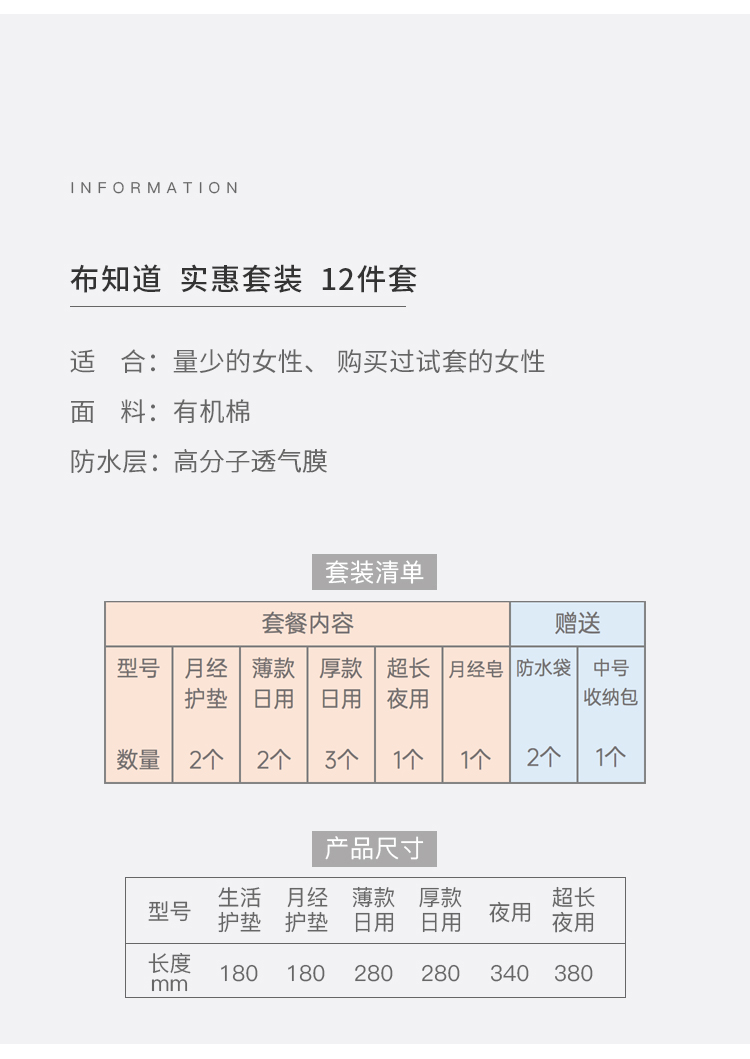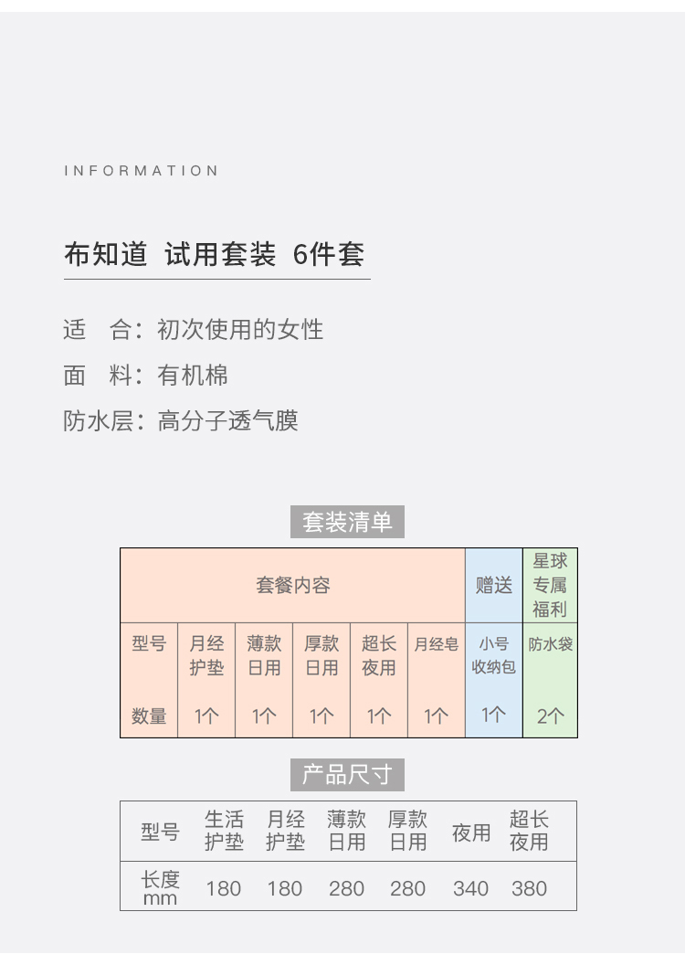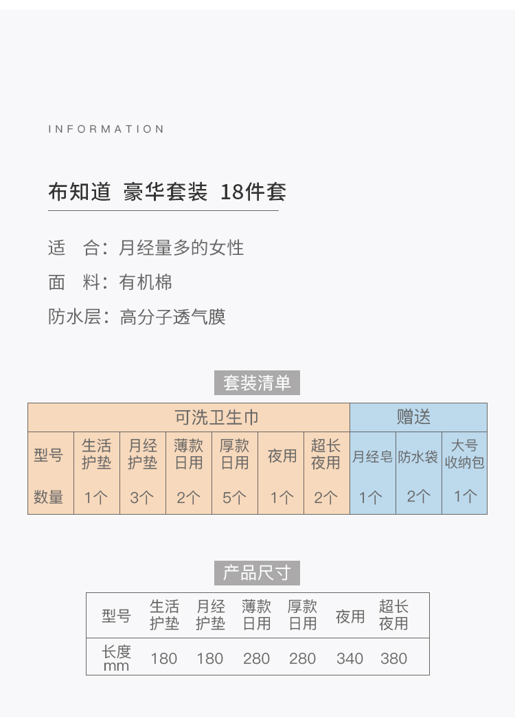 布知道水洗卫生巾套装 环保卫生巾卫生棉