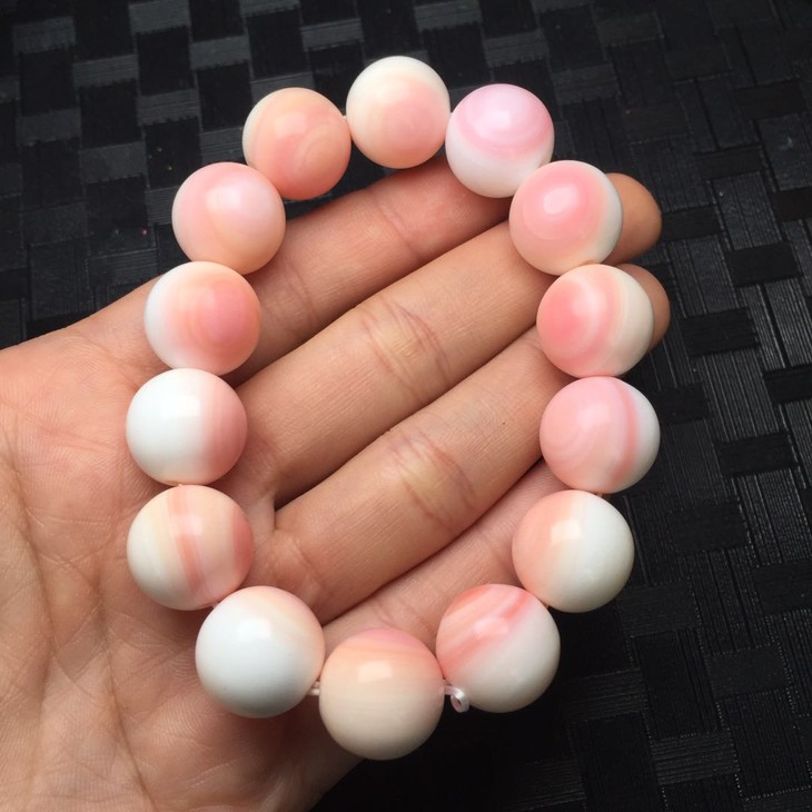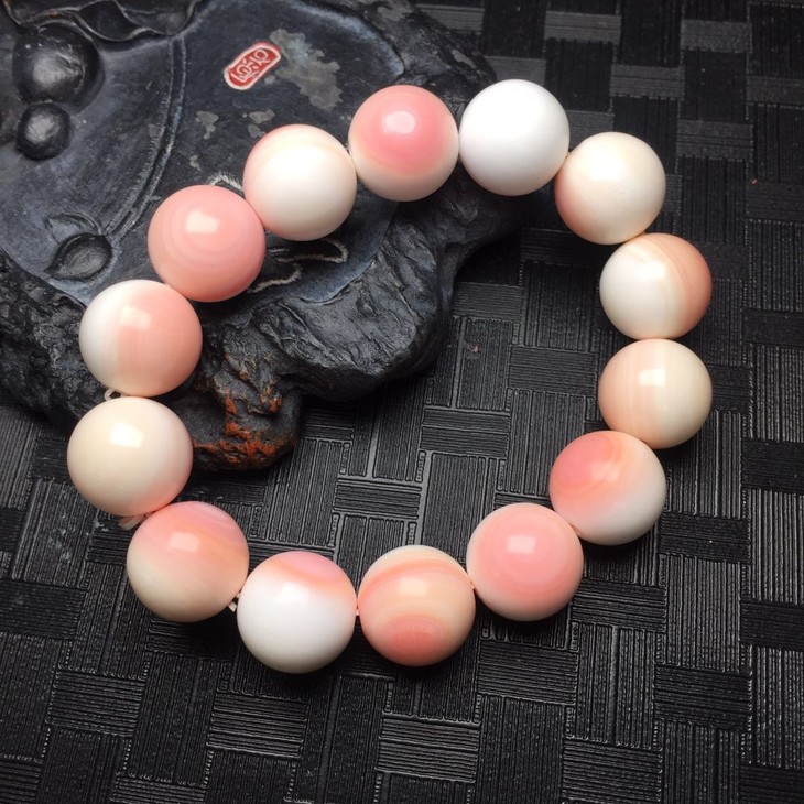 【D49713】砗磲胭脂螺圆珠手串,温润细腻,圆润饱满,纹路精美,颜色靓丽,佩戴上手秀丽上档次。尺寸14.5mm克重61g特价460