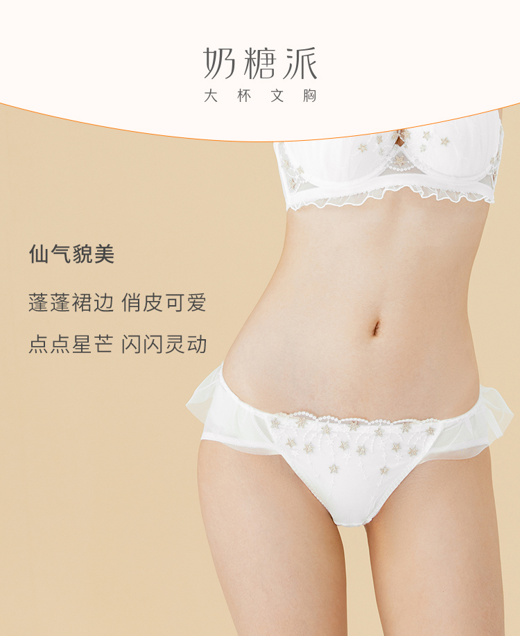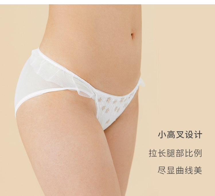奶糖派星芒配套内裤荷叶边刺绣轻薄透气亲肤舒适小高叉女士三角裤