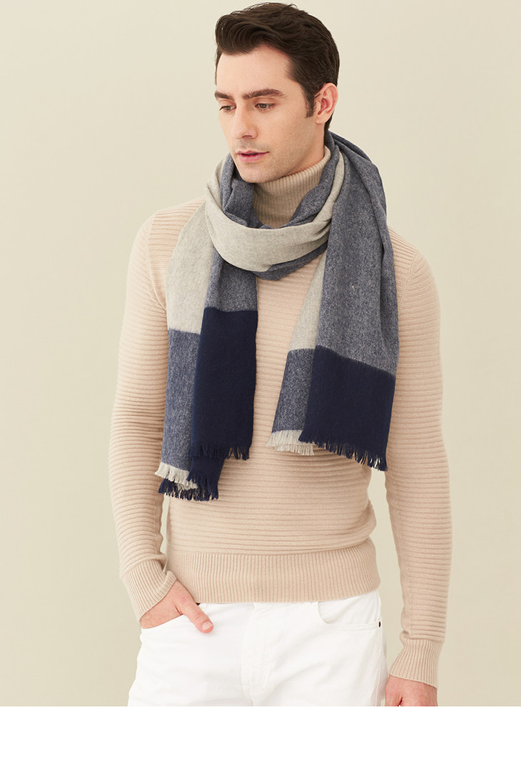 牛仔蓝拼色羊绒披肩 190x70cm 情侣披肩