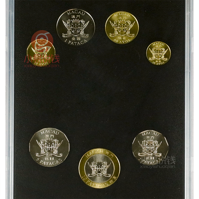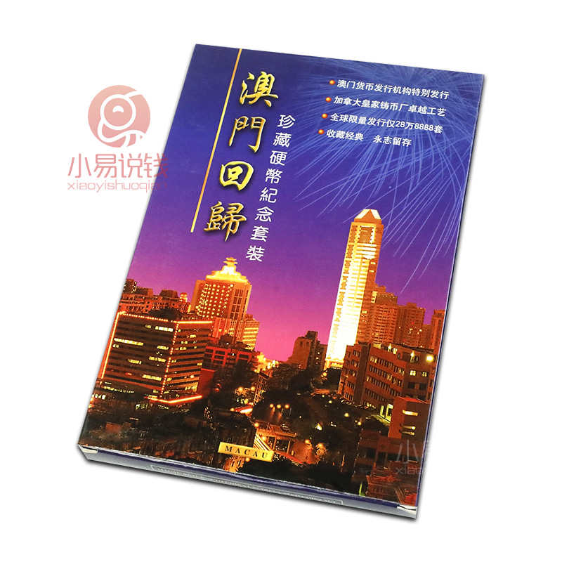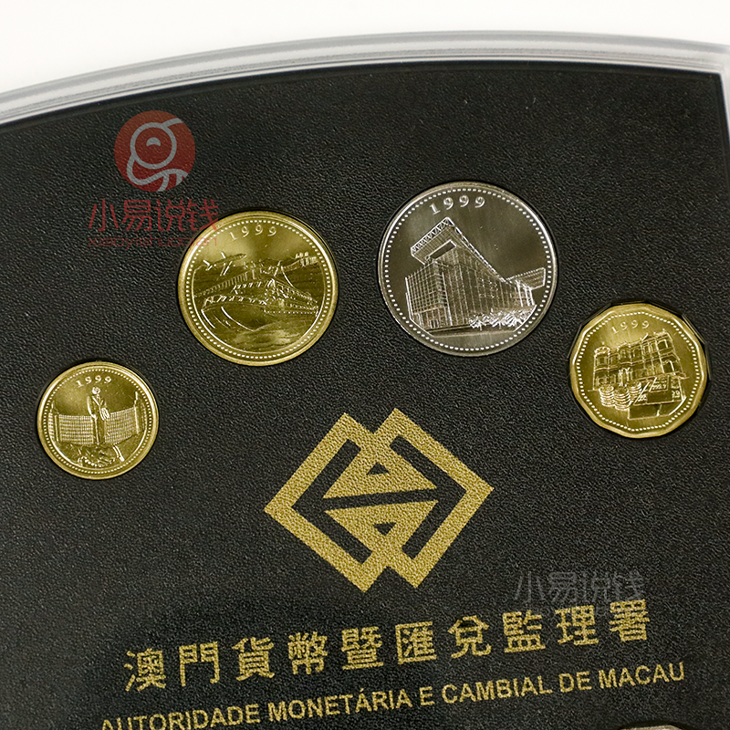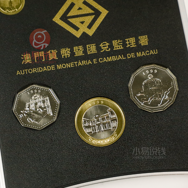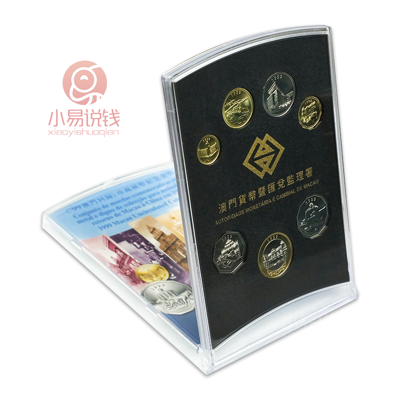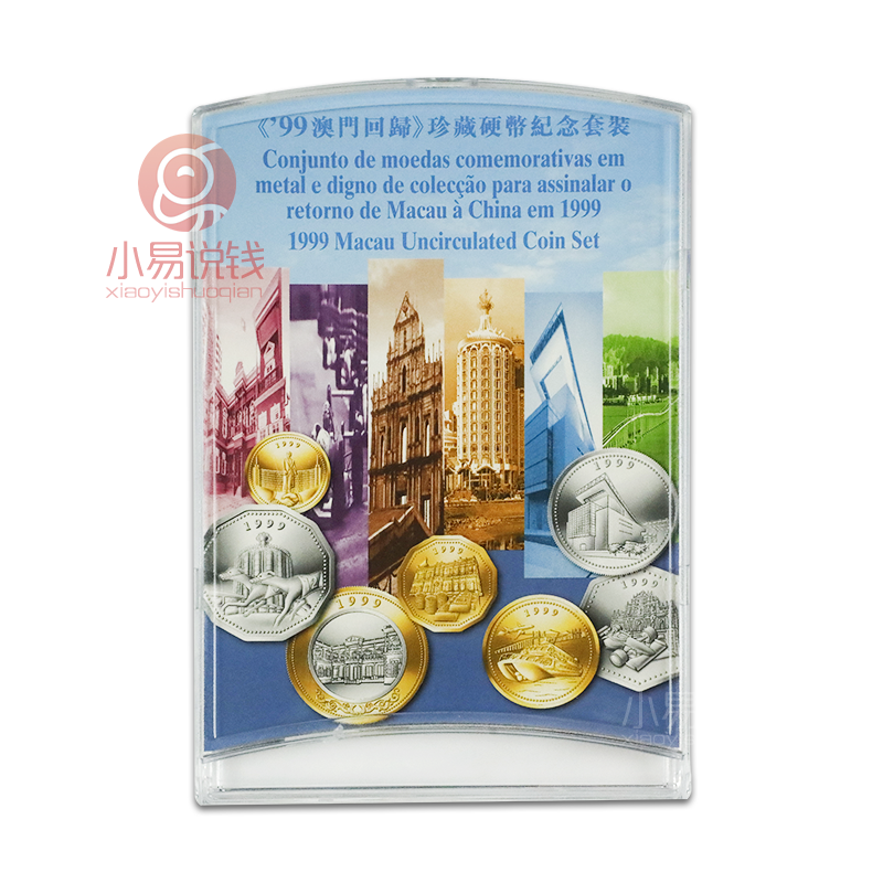 为了纪念1999年澳门回归祖国,同年,澳门政府特别许可发行了一套澳门回归珍藏精制硬币套装,全套7枚,由加拿大皇家造币厂铸造。