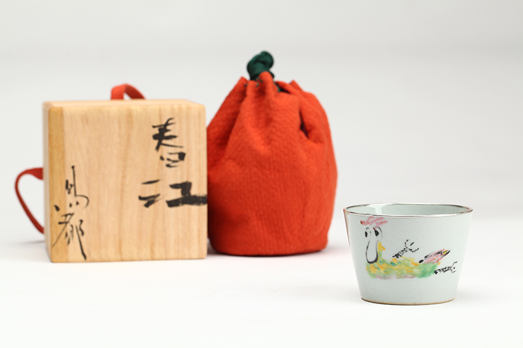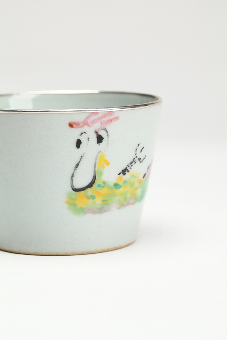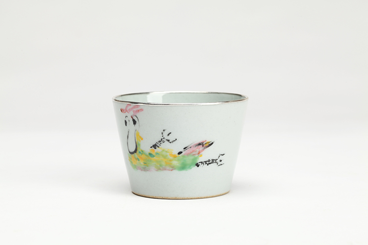 《春江》仿古灰釉彩绘,鸭子从古至今很多画家都画,没人画的像易都这样,天真烂漫,幽默有趣,富有灵性,出笔松弛,形态夸张,润色明快,易都艺术多栖,感受敏锐。