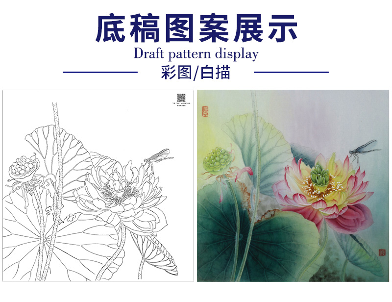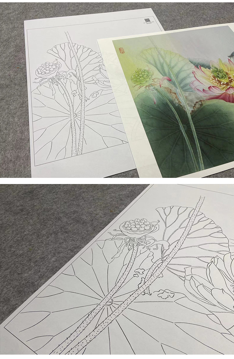 【大彩图】杨冬冬工笔画白描底稿小品《莲蕊染香尘》荷花临摹勾线花鸟线稿HD24