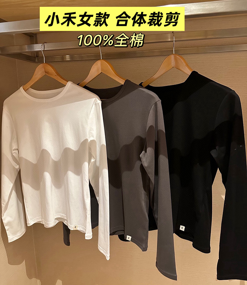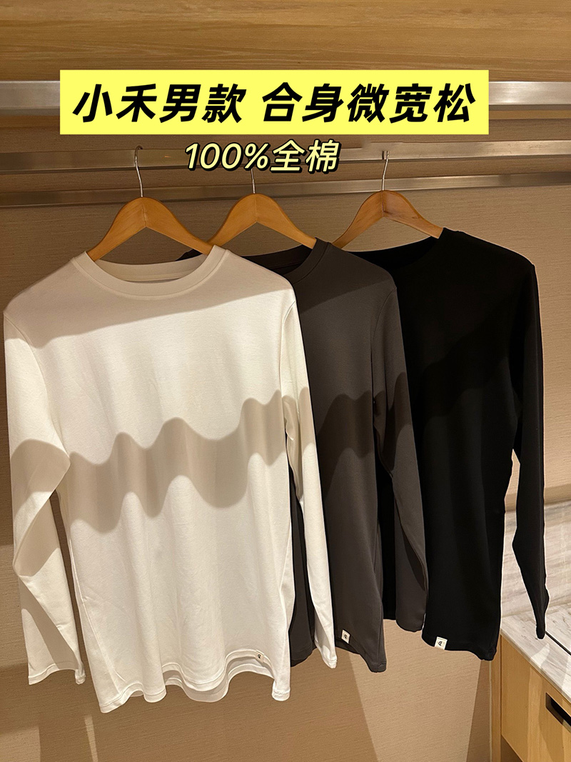 极简王炸~!情侣!禾の臻选 100%有机棉 正肩长袖T!万neng打底利器!