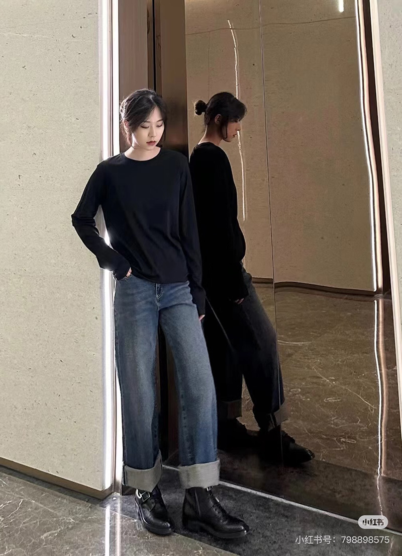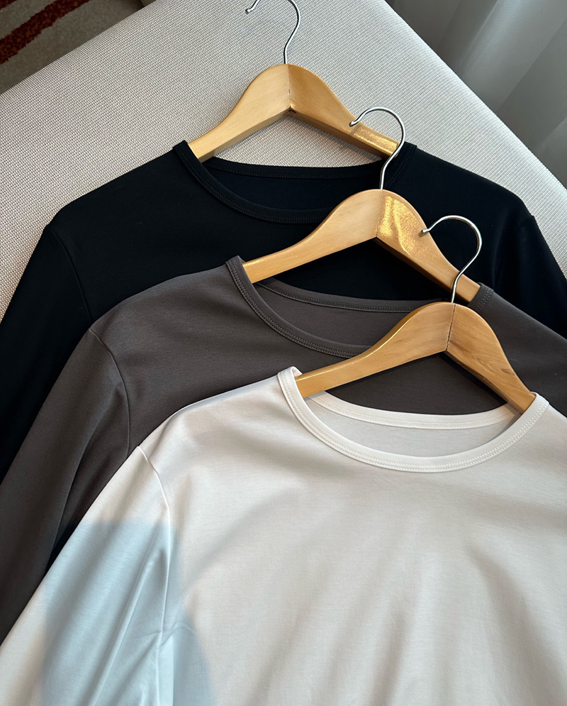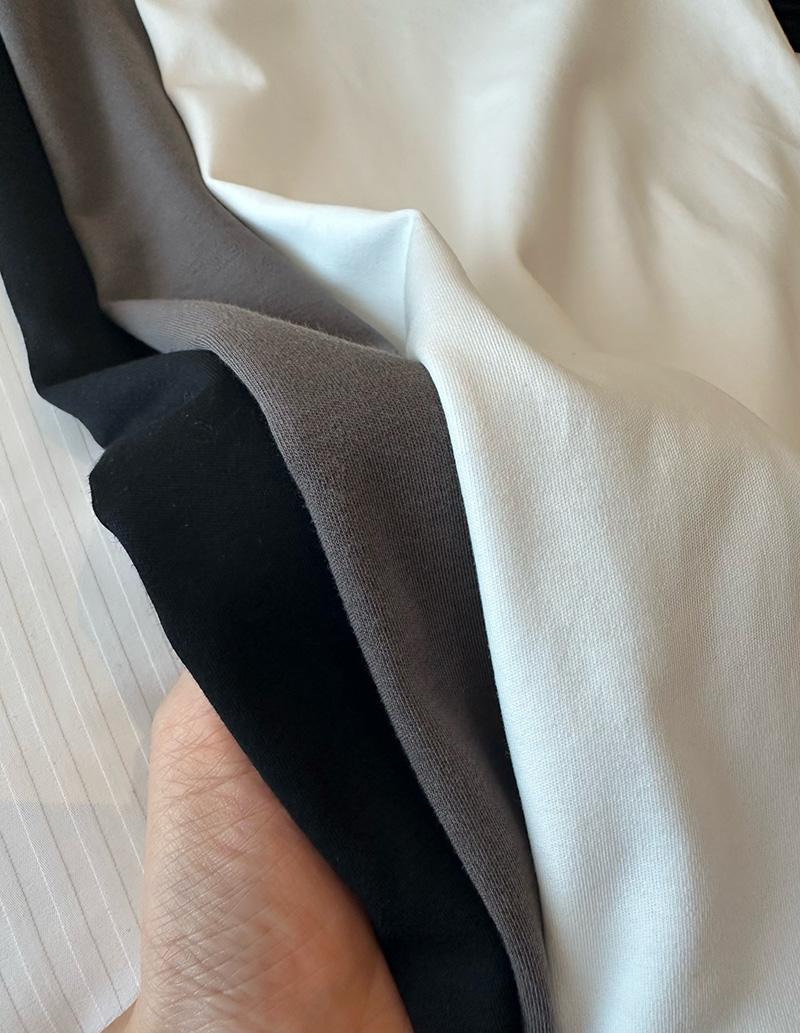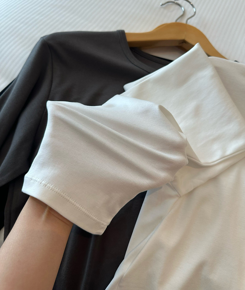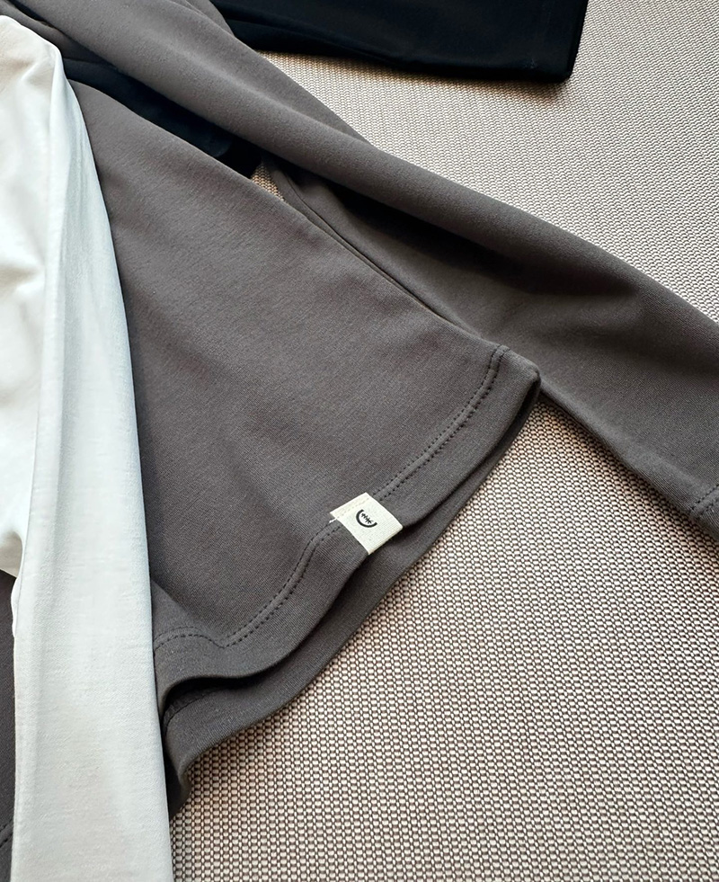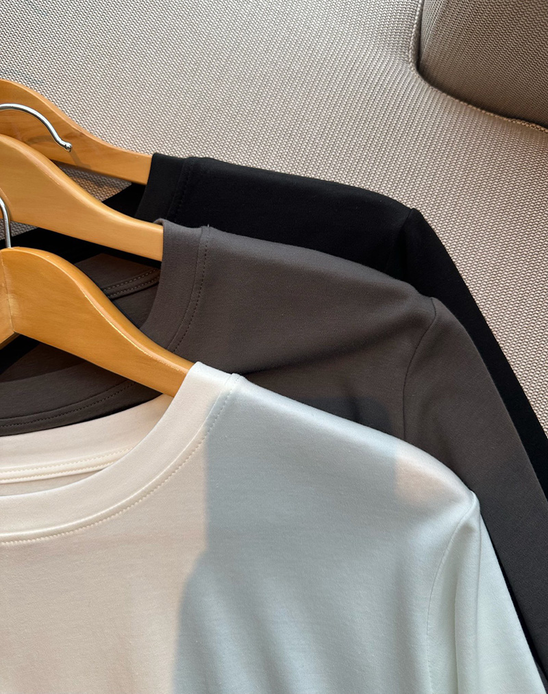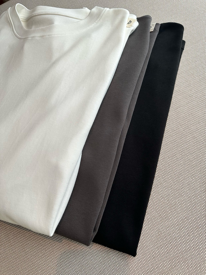 人个更偏爱这种薄薄滑的软的,这种叠穿在面里那种自然的懒慵的感觉更好。我不喜欢太重厚的tee,缺乏适舒性。这个面料有微弹力,上身舒适度更佳