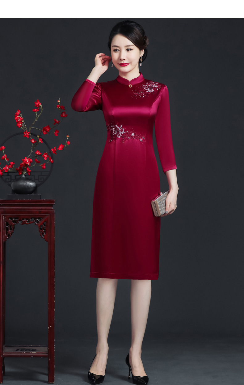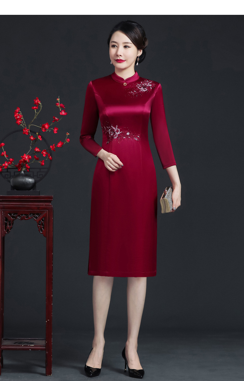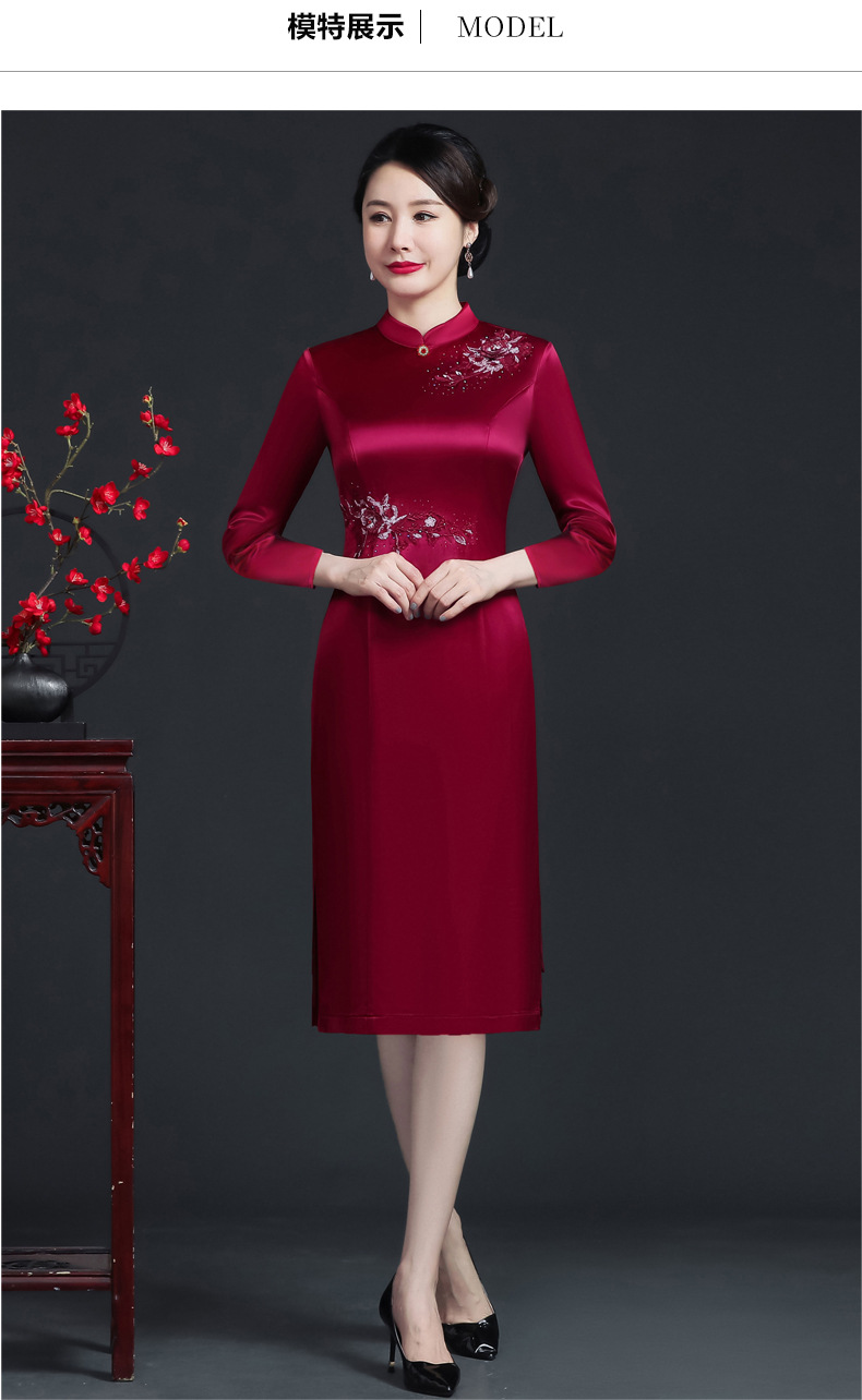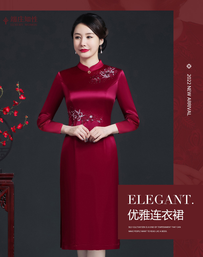JC-62201醋酸气质红色婚宴妈妈装喜婆婆礼服