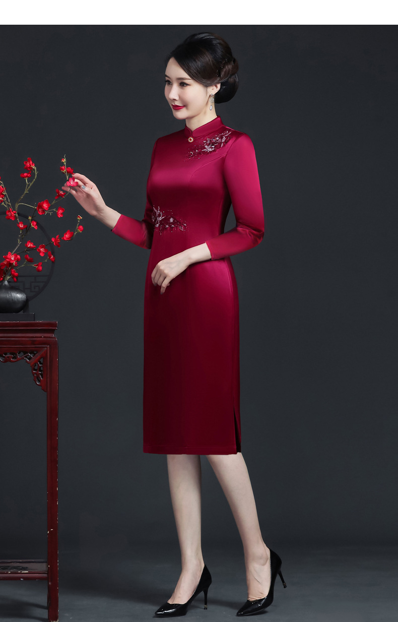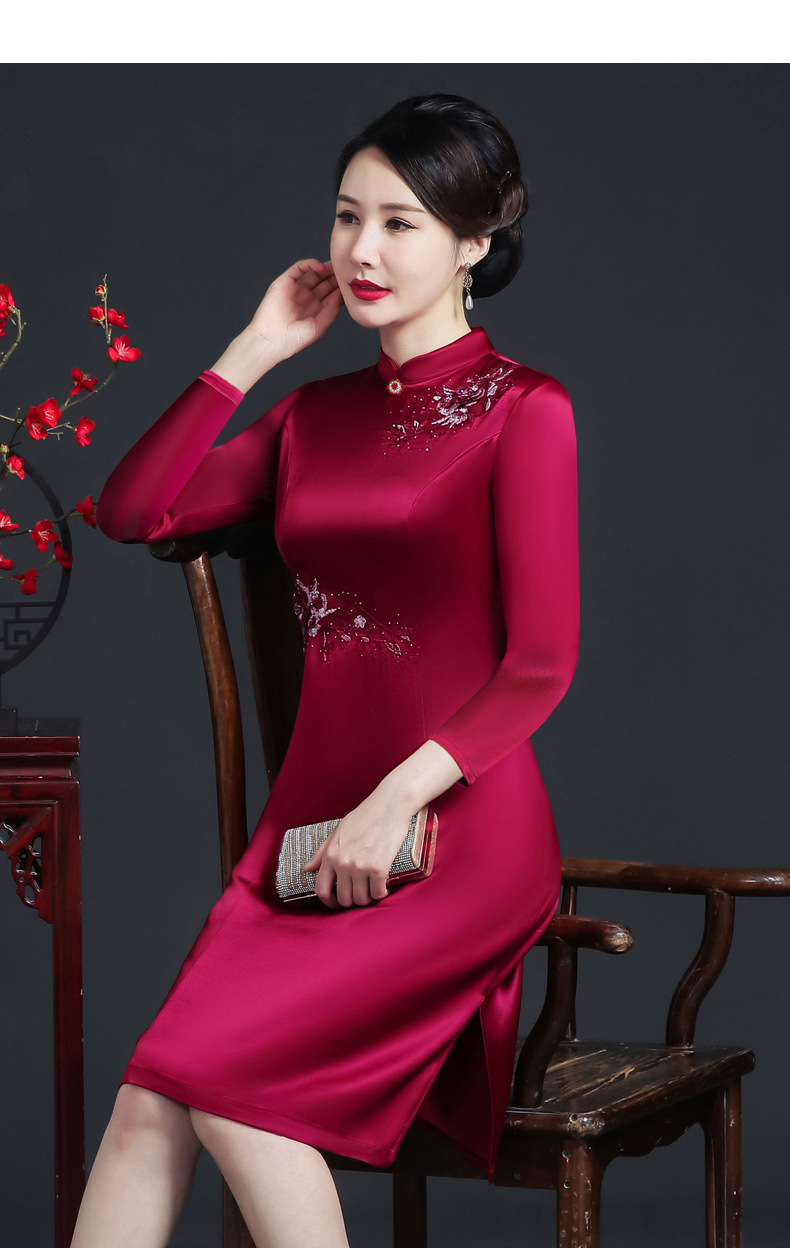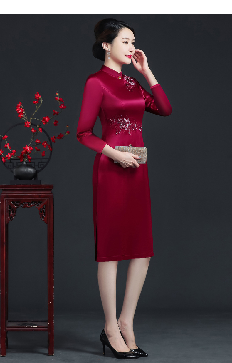 JC-62201醋酸气质红色婚宴妈妈装喜婆婆礼服