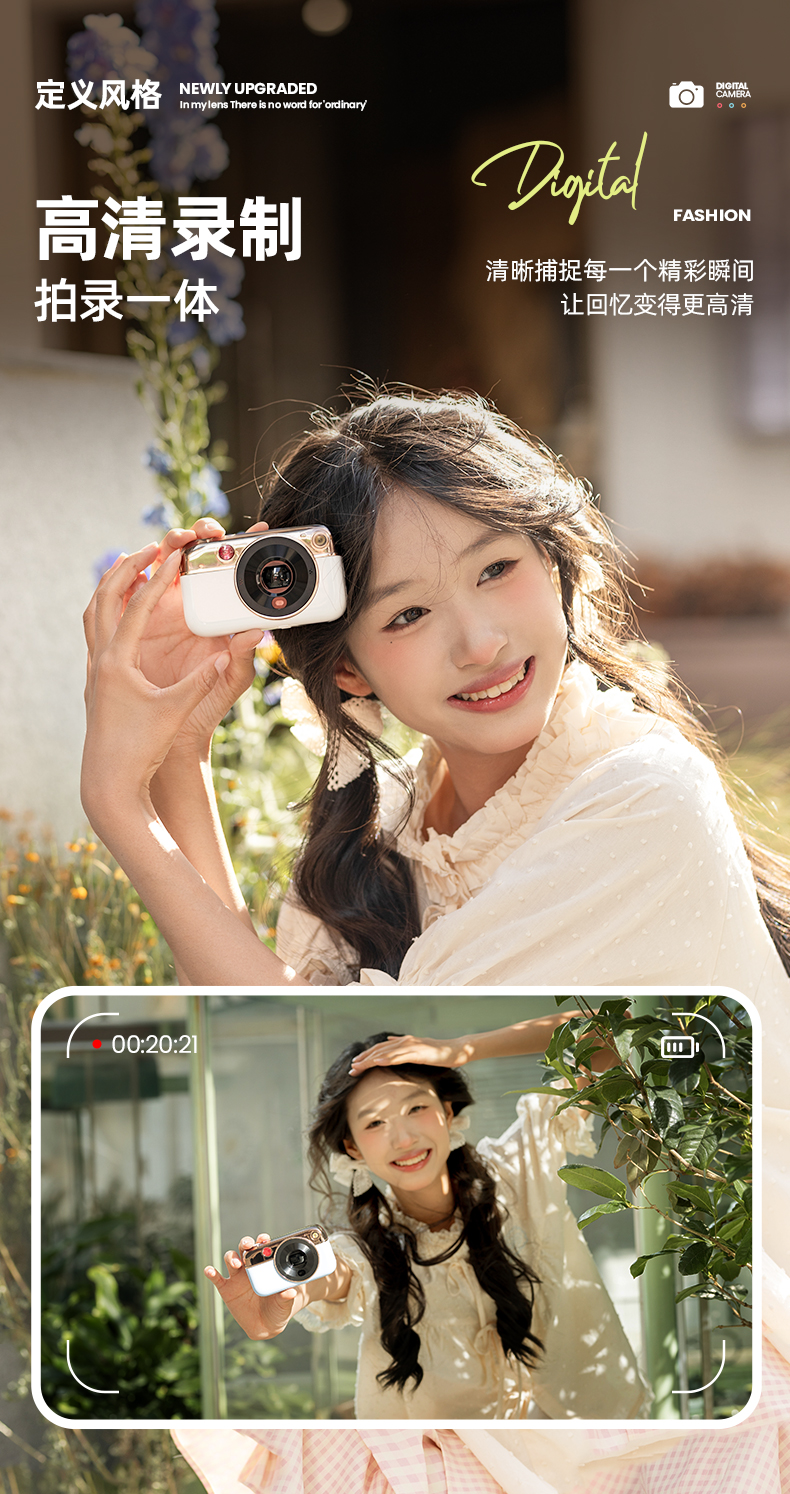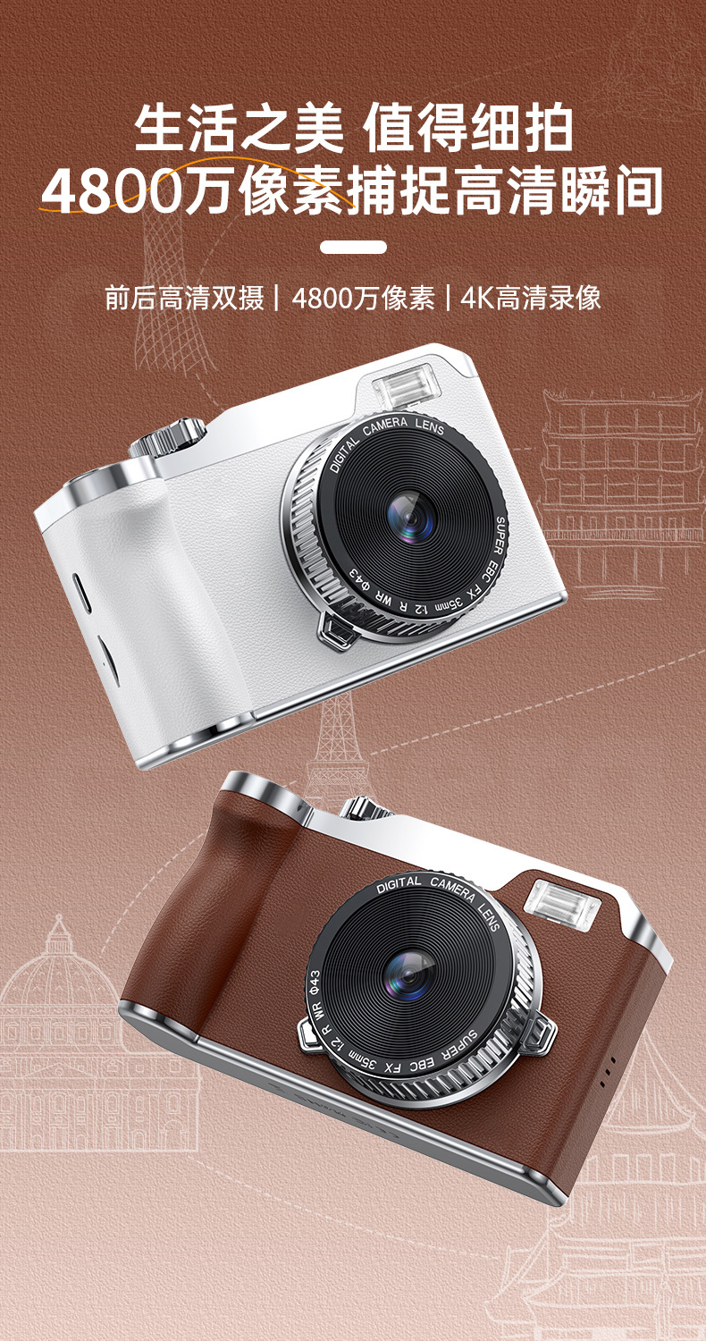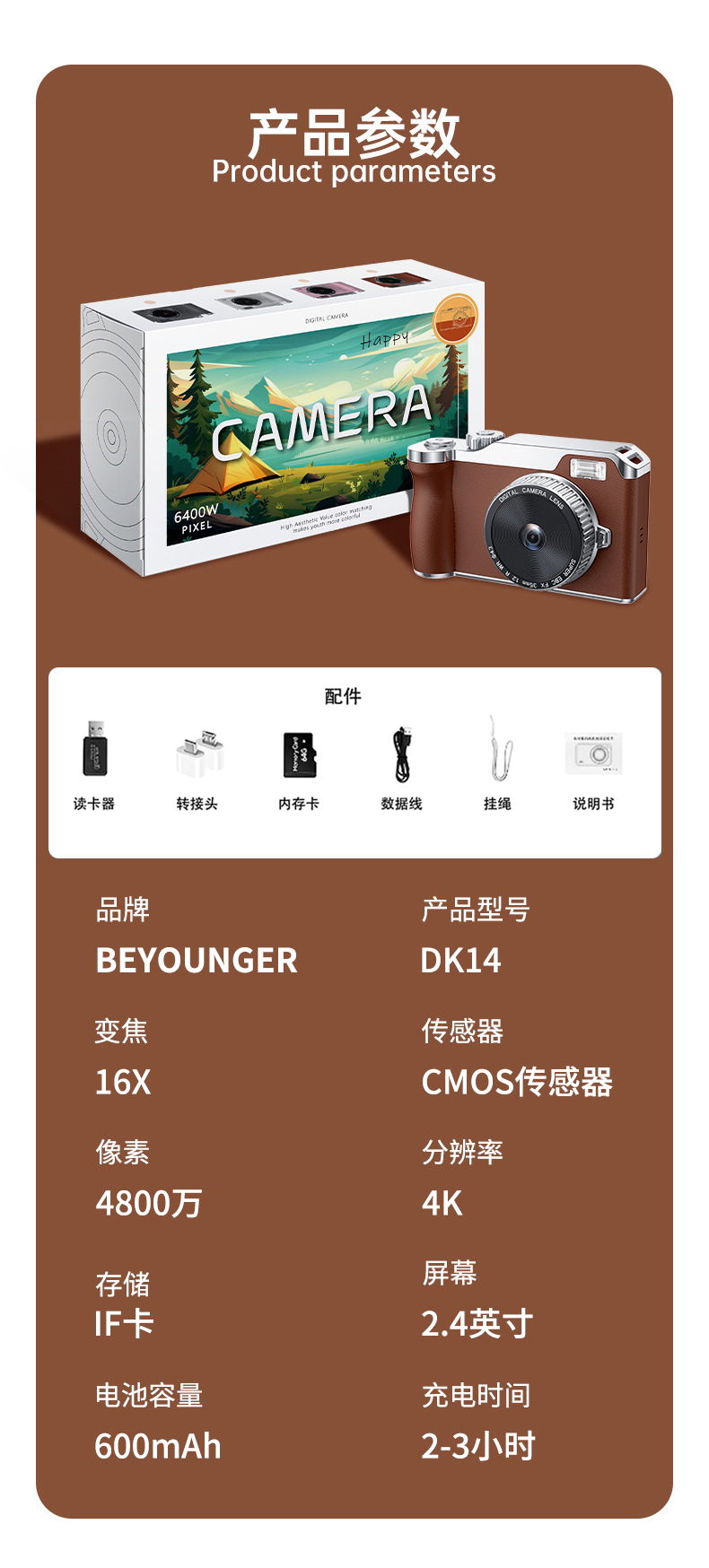 BYOUNGER CCD数码相机 6400万像素 4K画质 前后高清双摄 16倍数码变焦 高清分辨率 超强续航