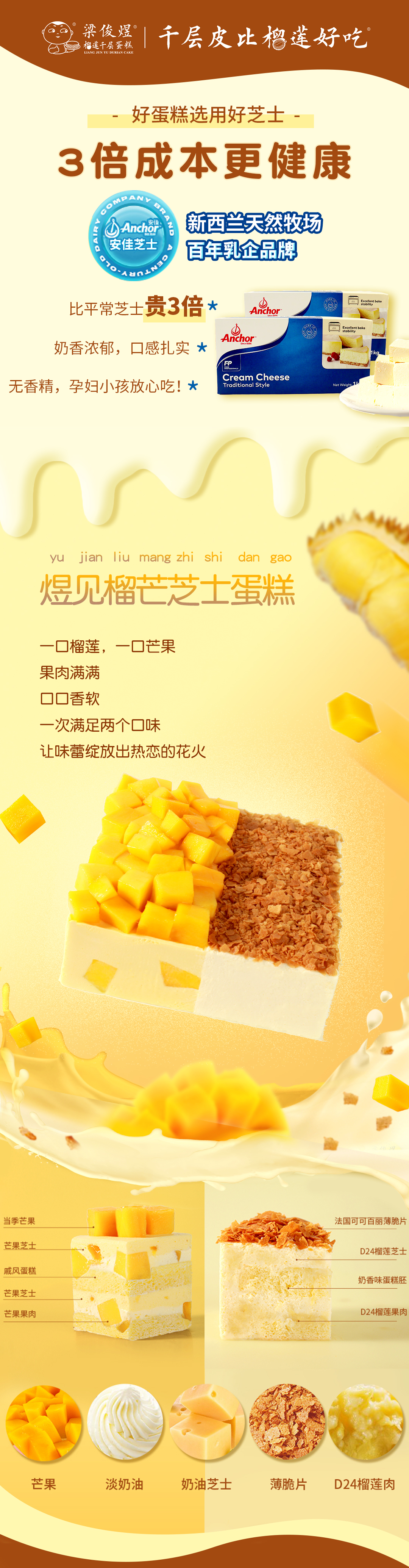 【招牌芝士系列】榴芒双拼芝士蛋糕,一口芒果,一口榴莲,满足感直达心底!