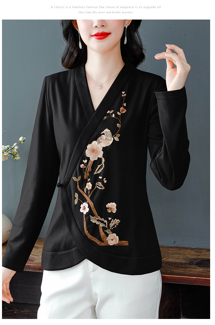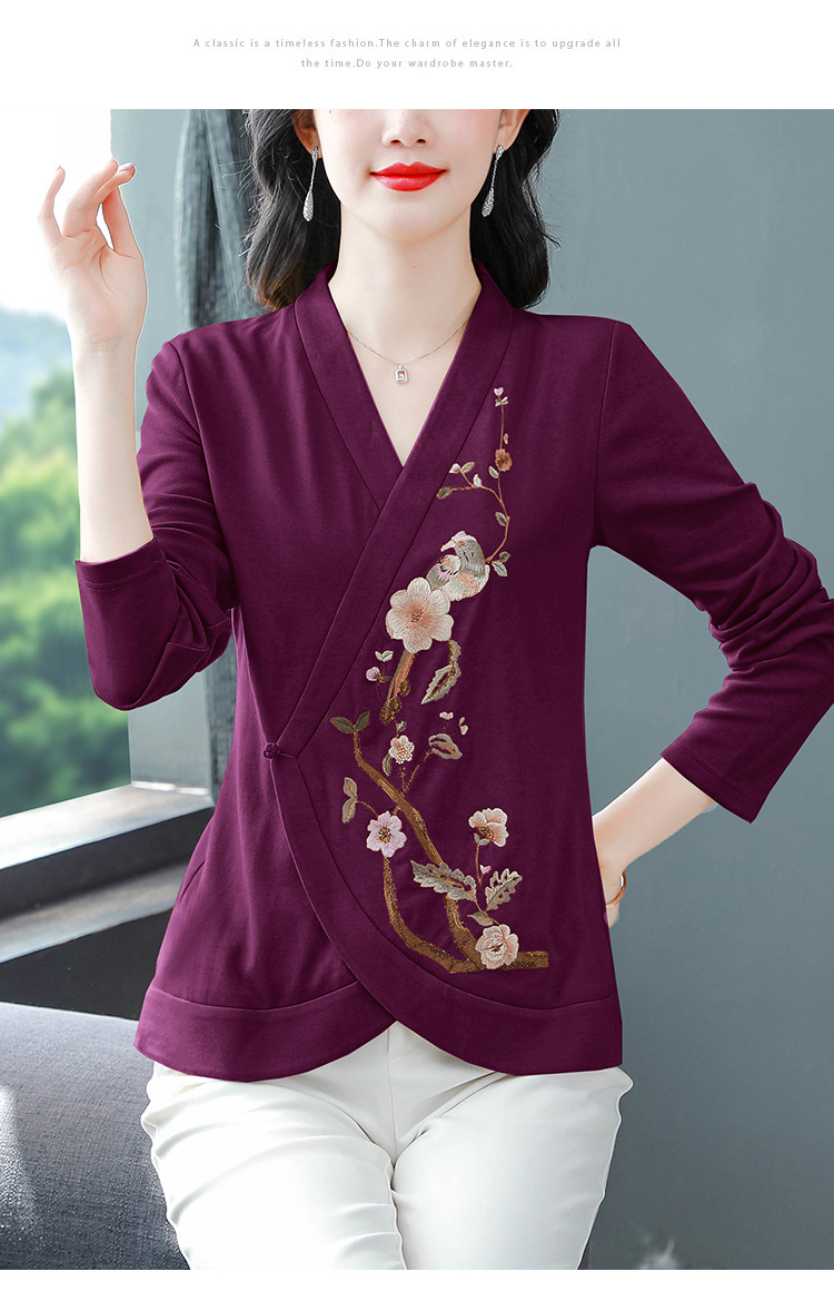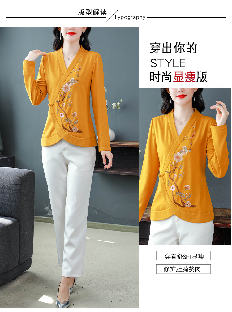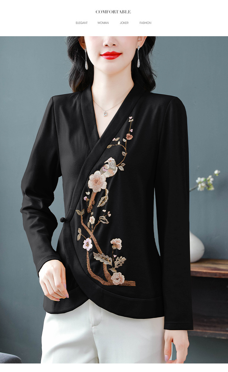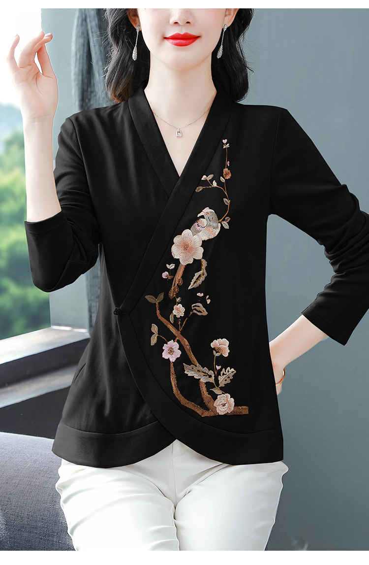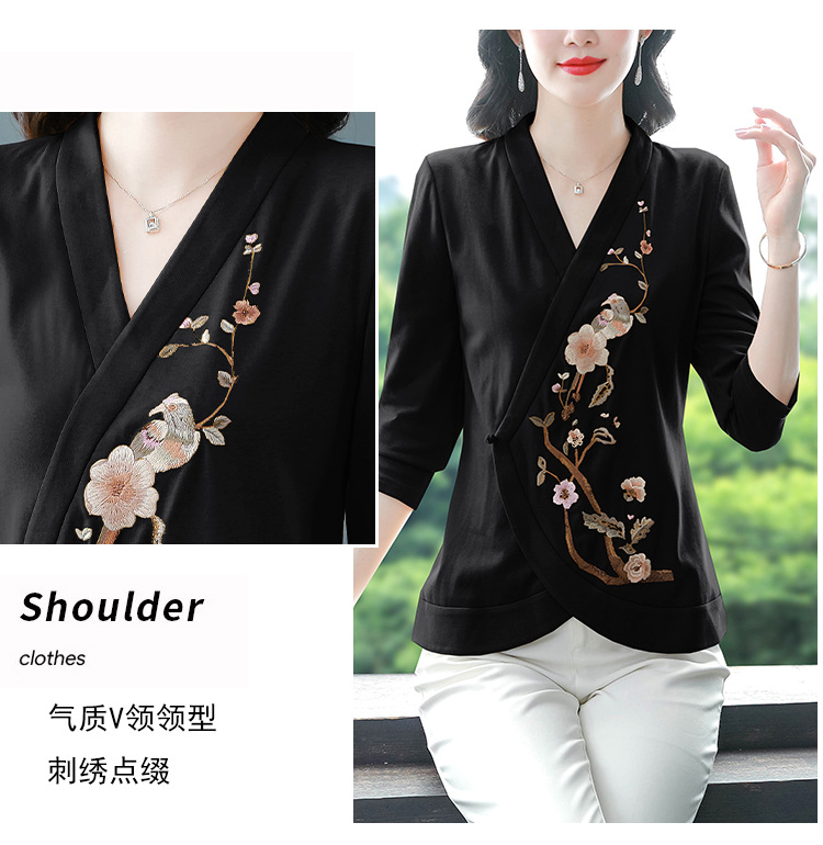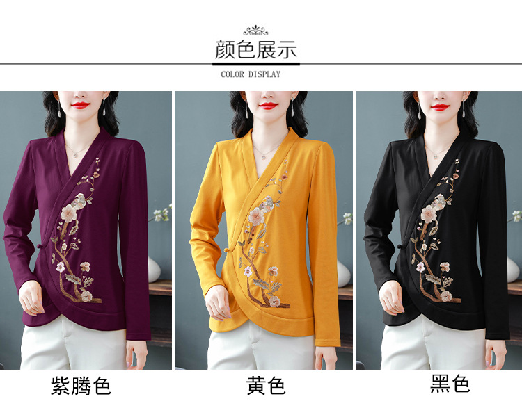 新中式重工刺绣长袖T恤女2025新款民族风女装上衣大码时尚打底衫