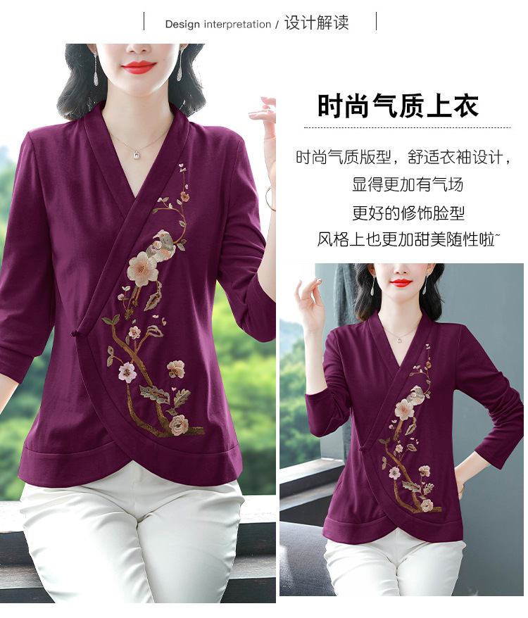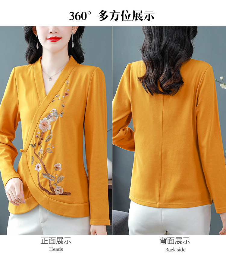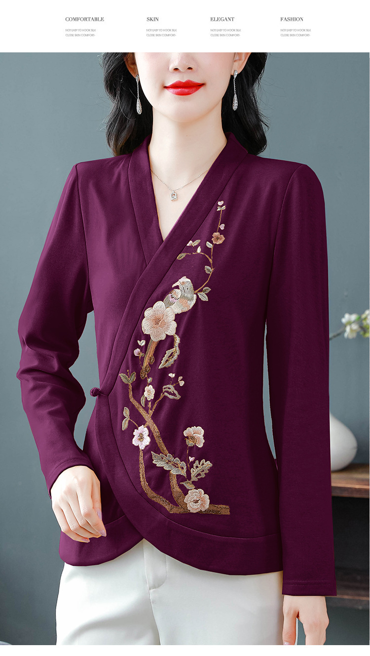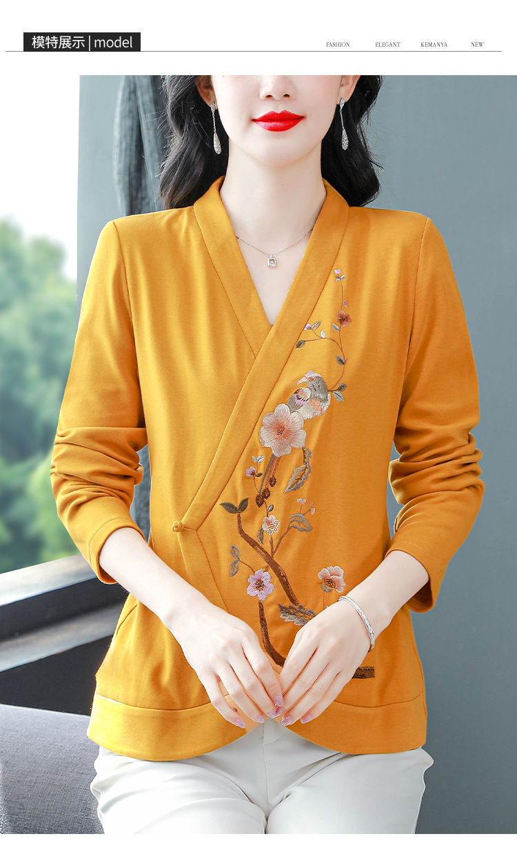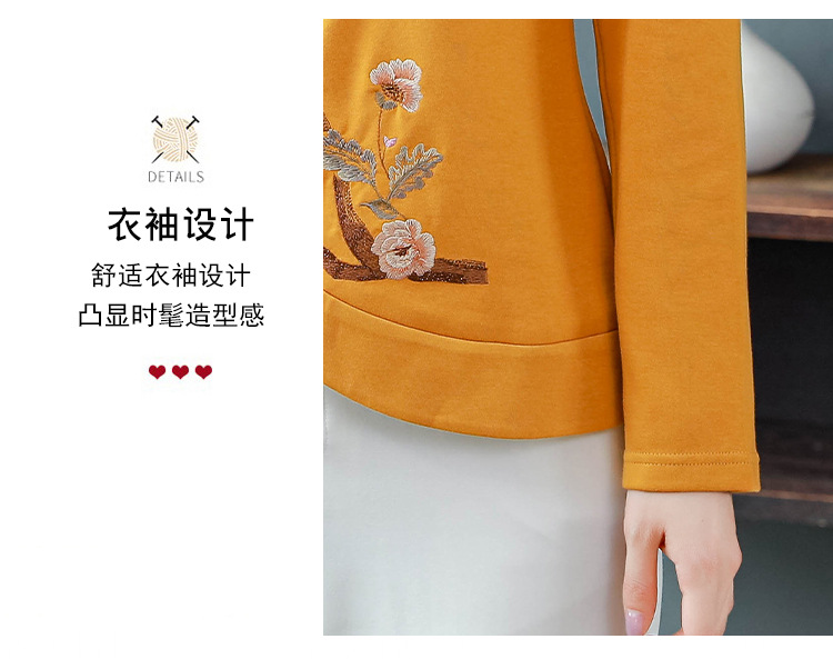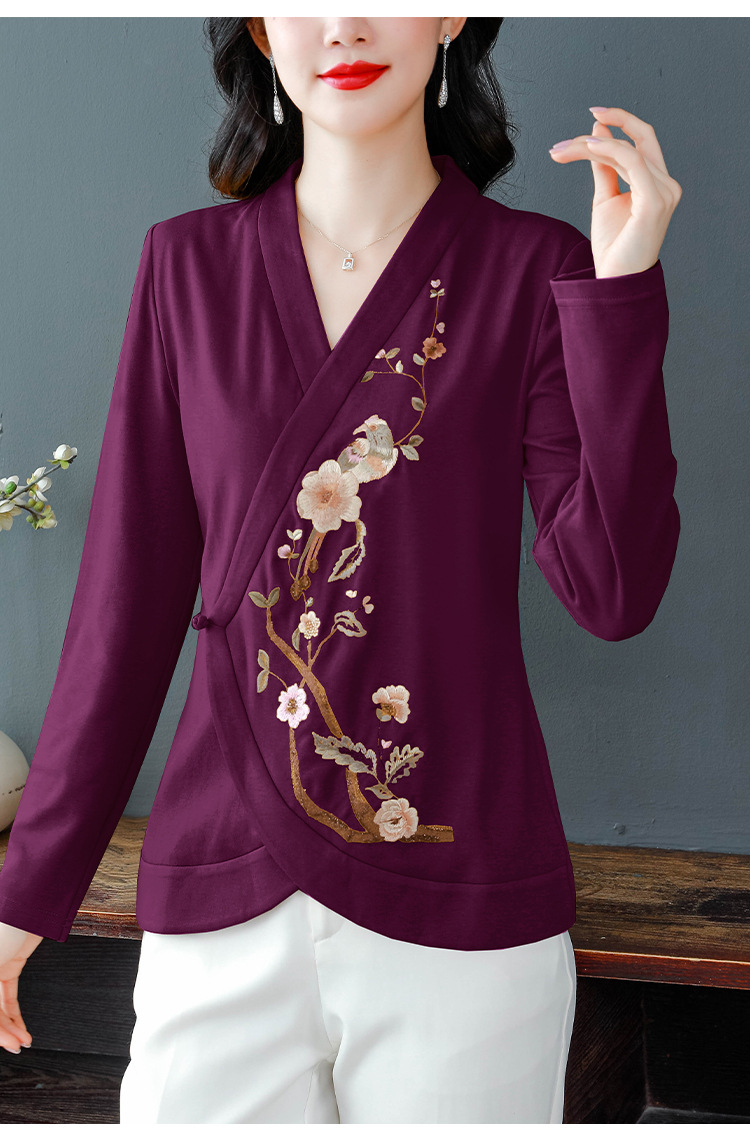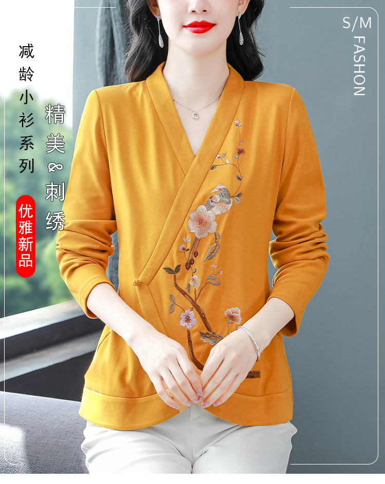 新中式重工刺绣长袖T恤女2025新款民族风女装上衣大码时尚打底衫