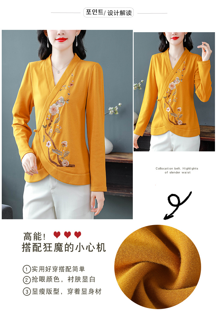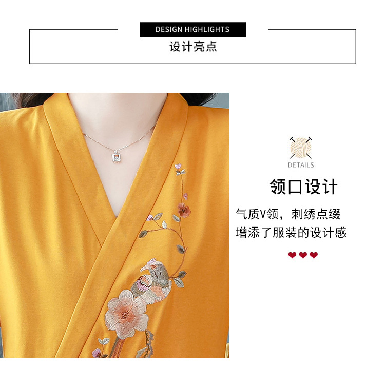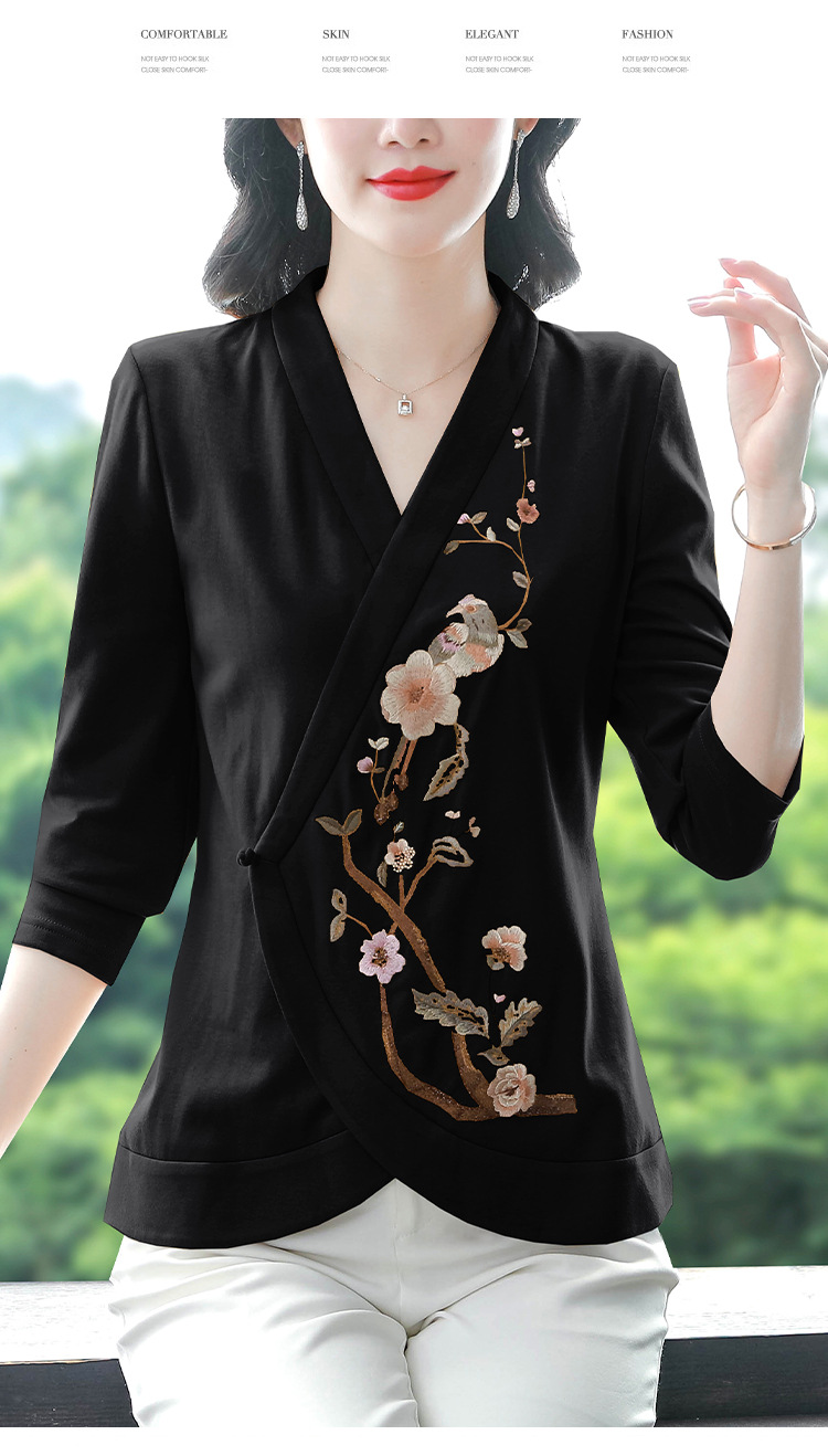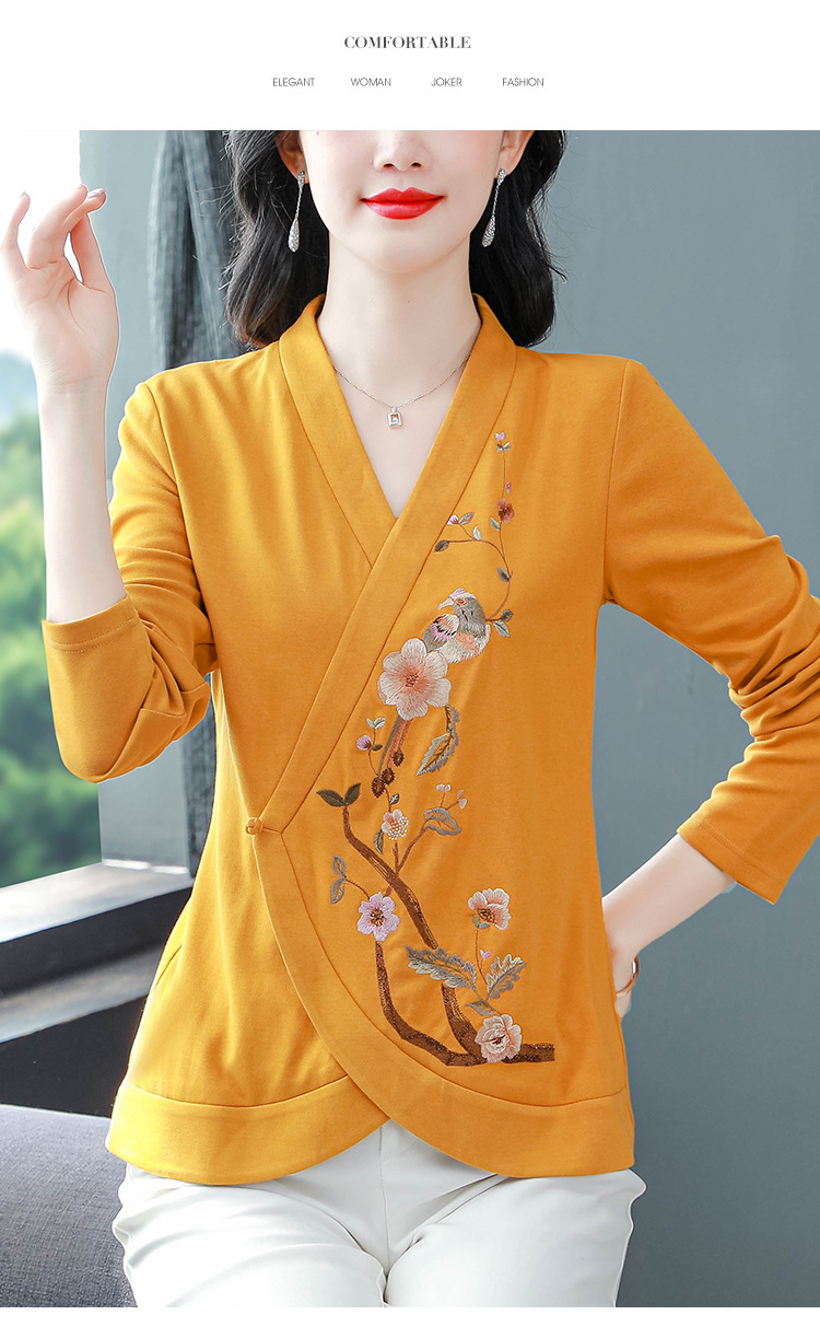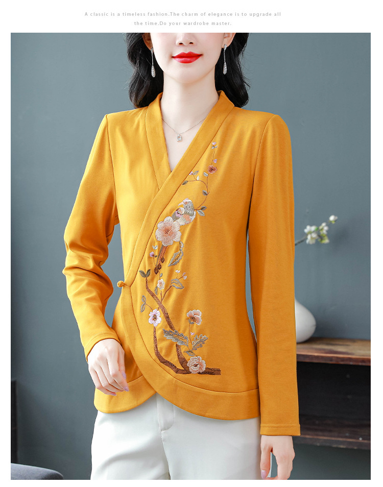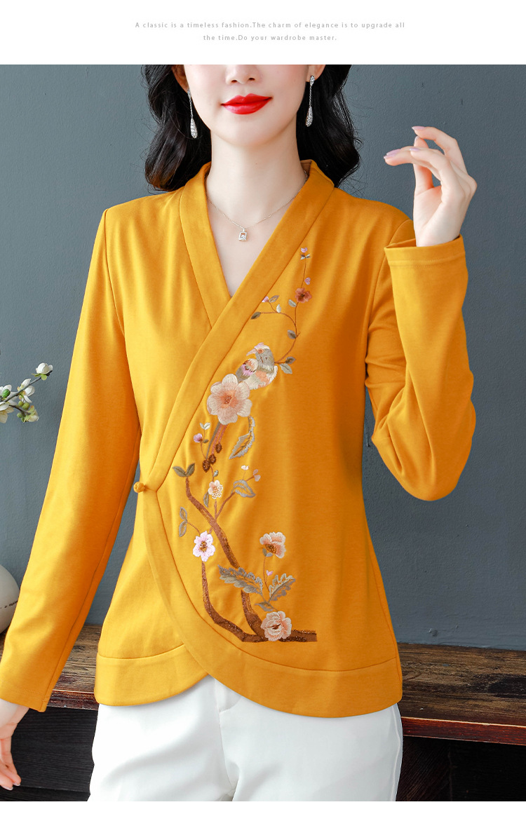 新中式重工刺绣长袖T恤女2025新款民族风女装上衣大码时尚打底衫