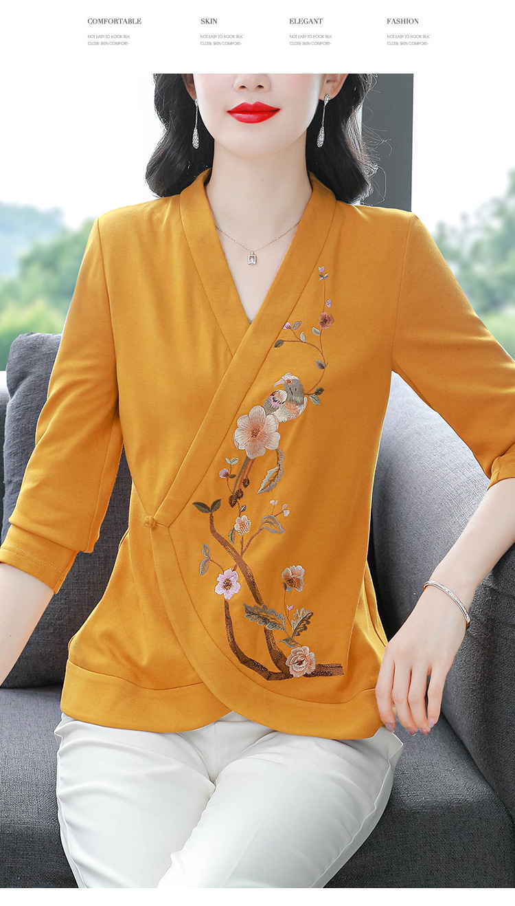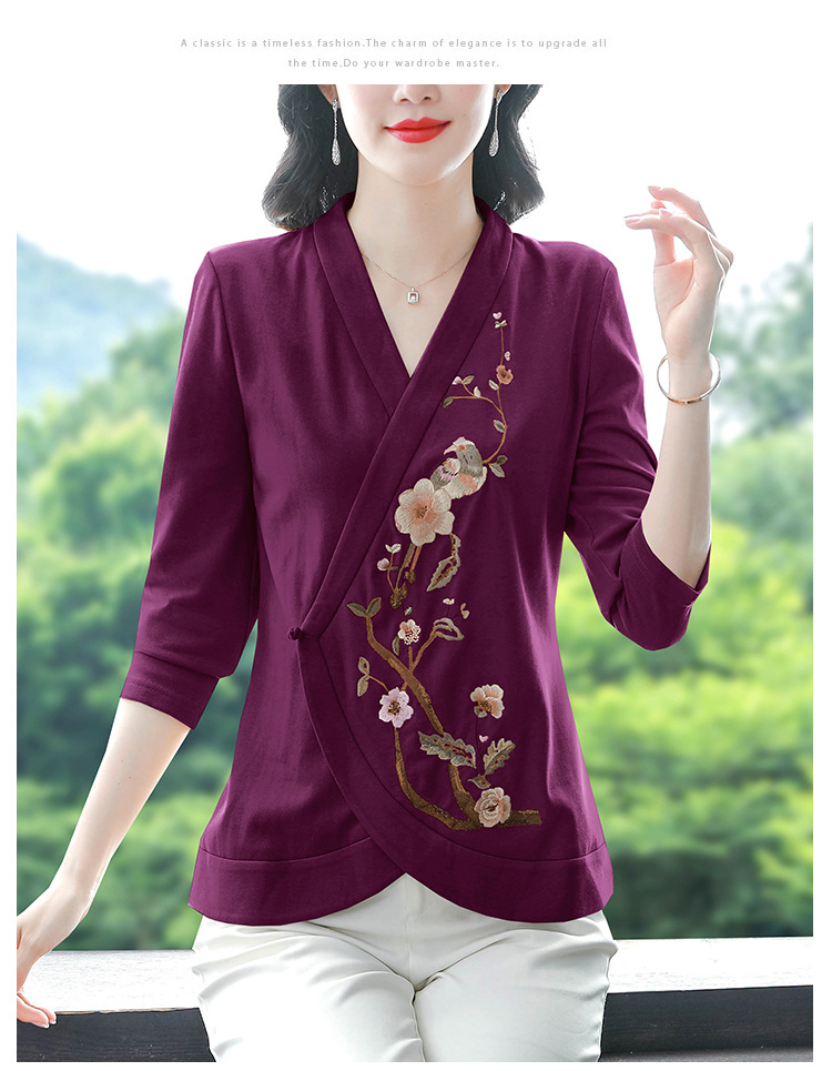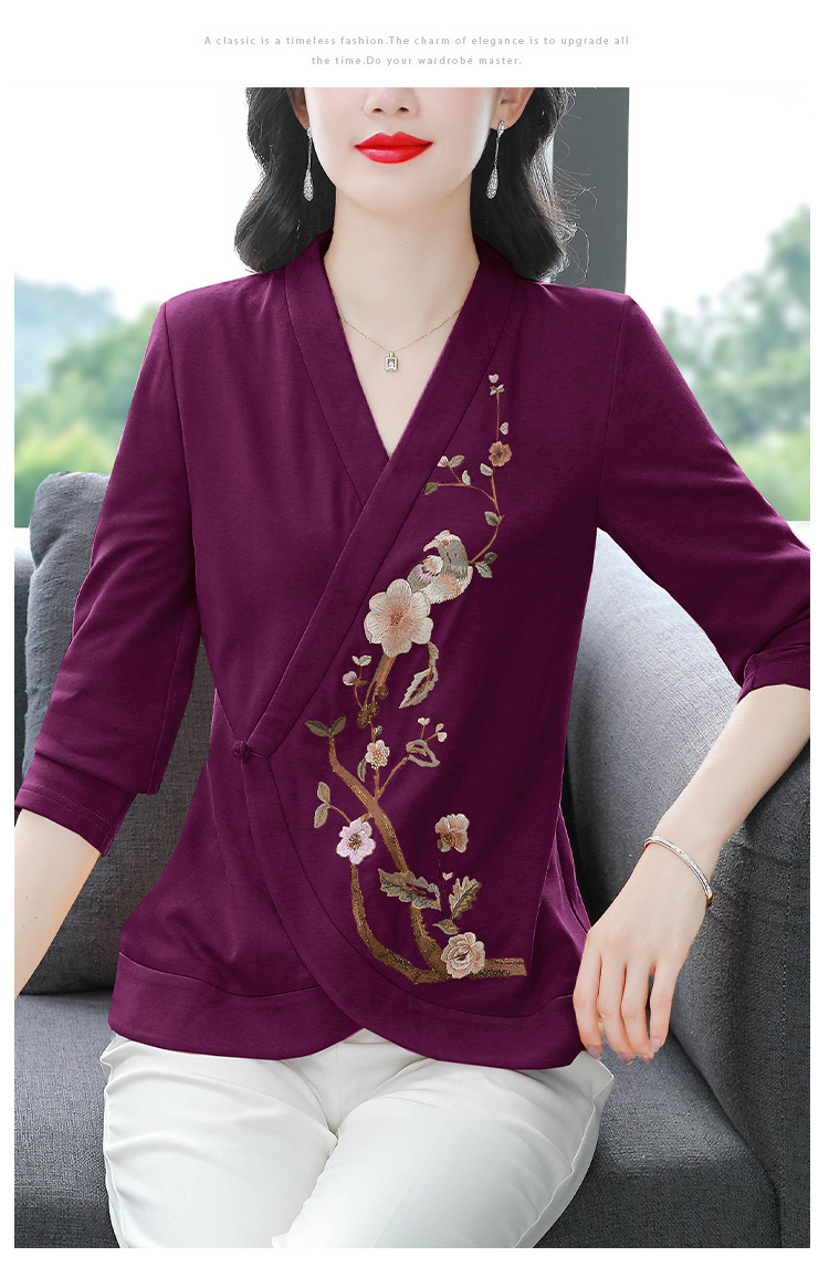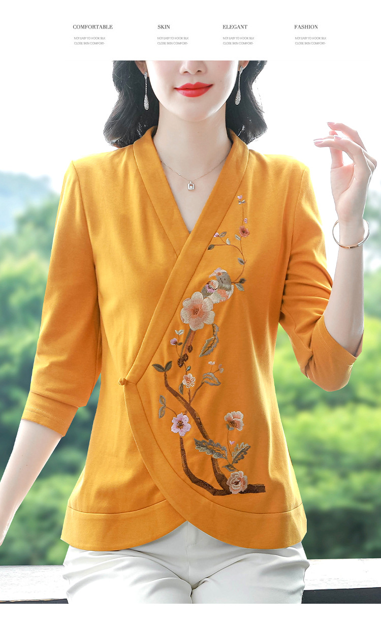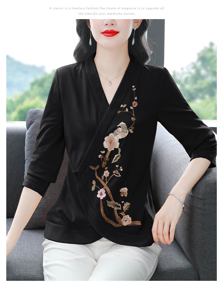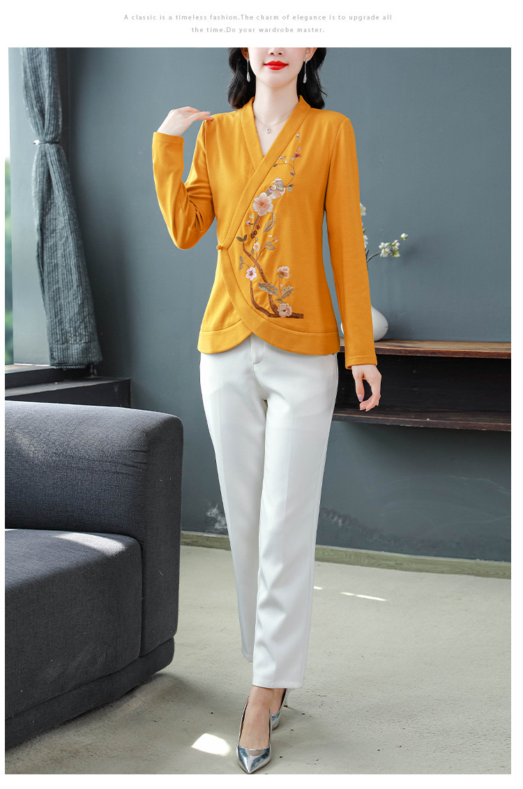 新中式重工刺绣长袖T恤女2025新款民族风女装上衣大码时尚打底衫