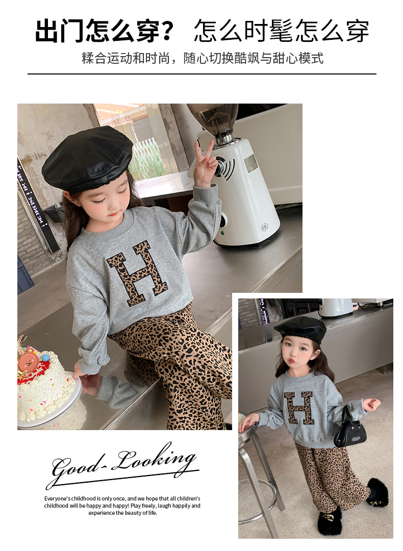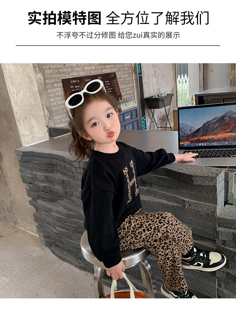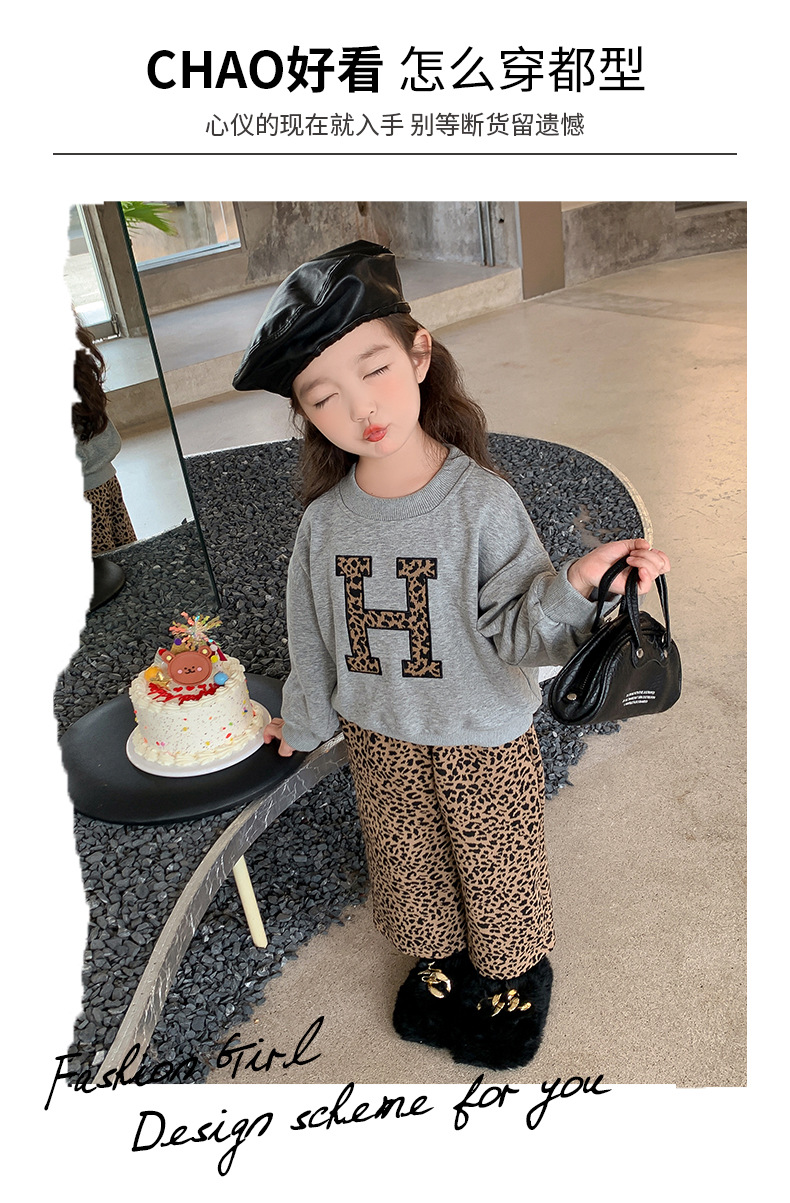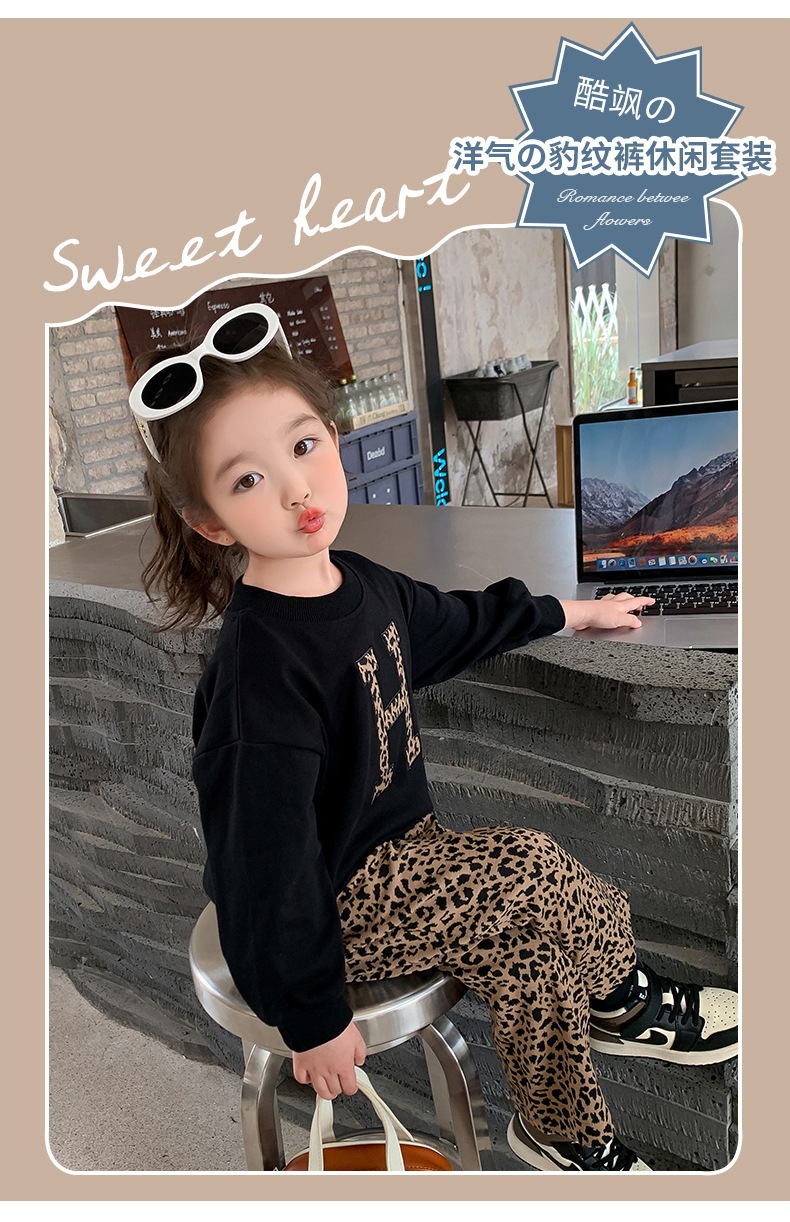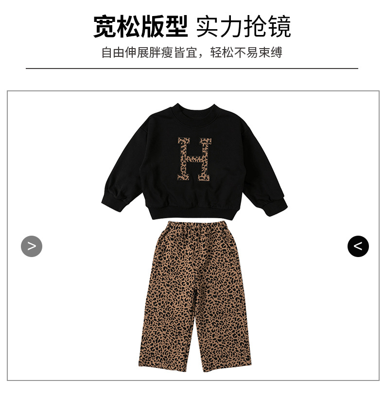 【chao好看,怎么穿都型!】潮流爆款套装女童春秋新款女,时尚洋气棉质卫衣儿儿童豹纹阔腿裤两件套,糅合运动和时尚,随心切换酷飒与甜心模式!