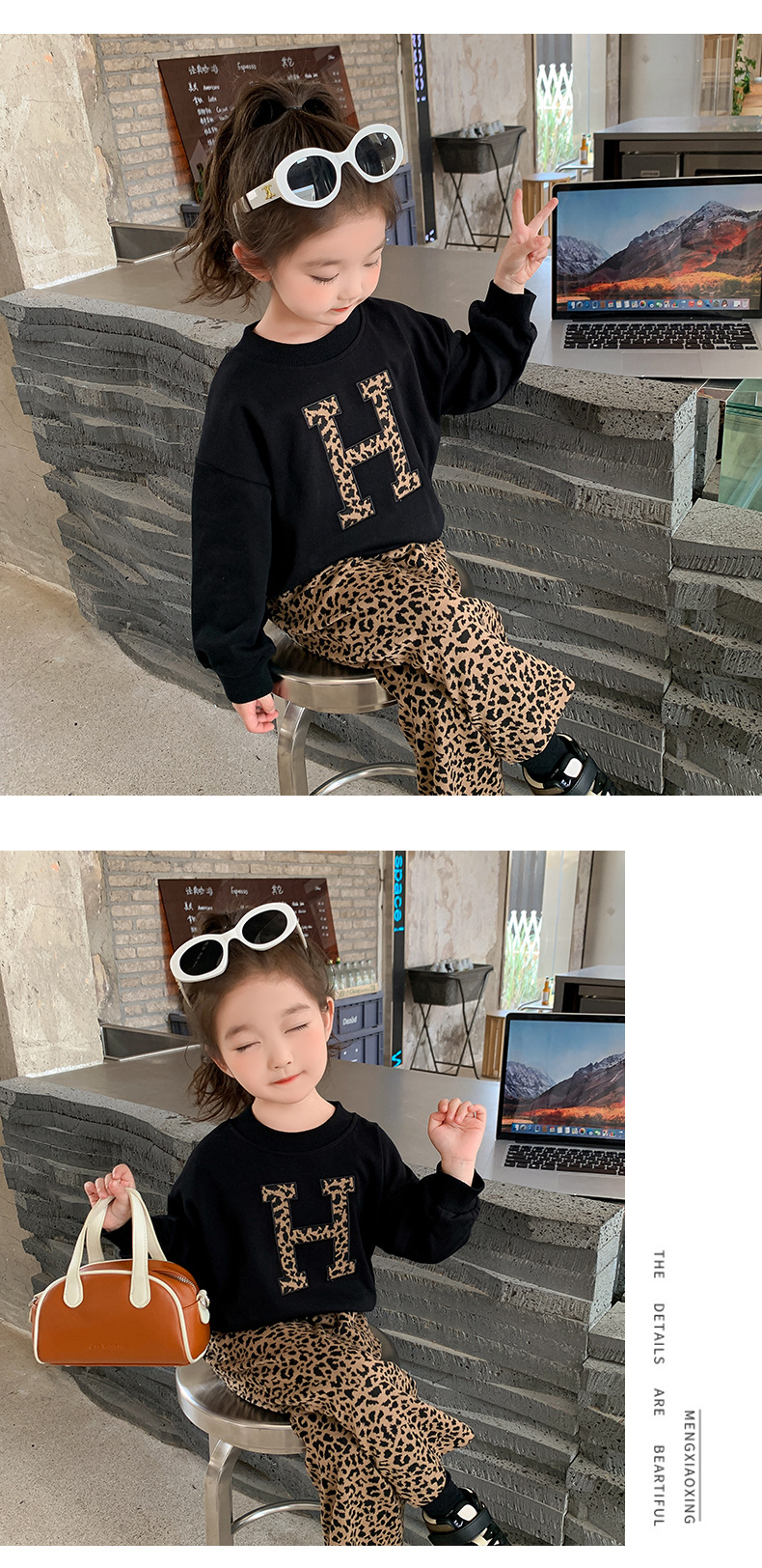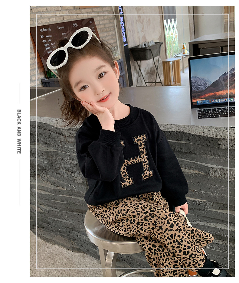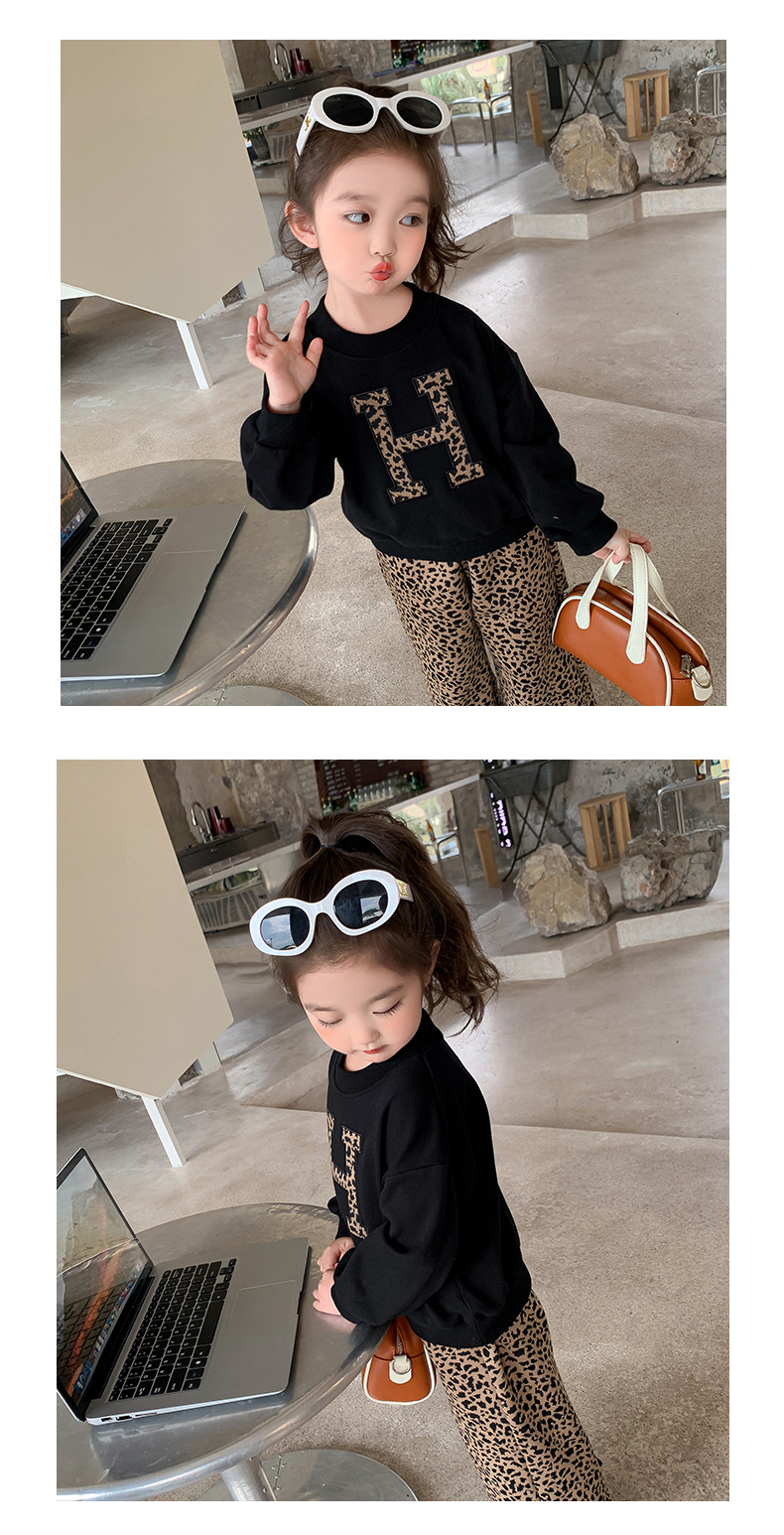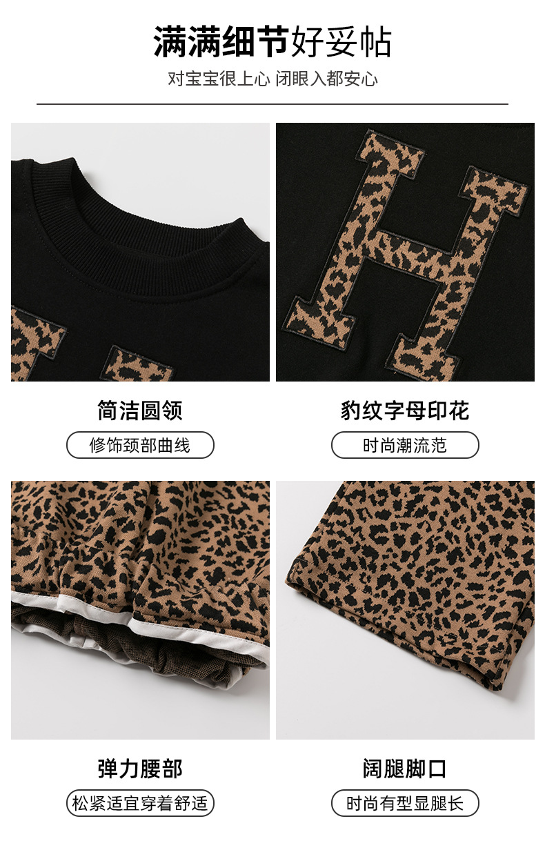 【chao好看,怎么穿都型!】潮流爆款套装女童春秋新款女,时尚洋气棉质卫衣儿儿童豹纹阔腿裤两件套,糅合运动和时尚,随心切换酷飒与甜心模式!