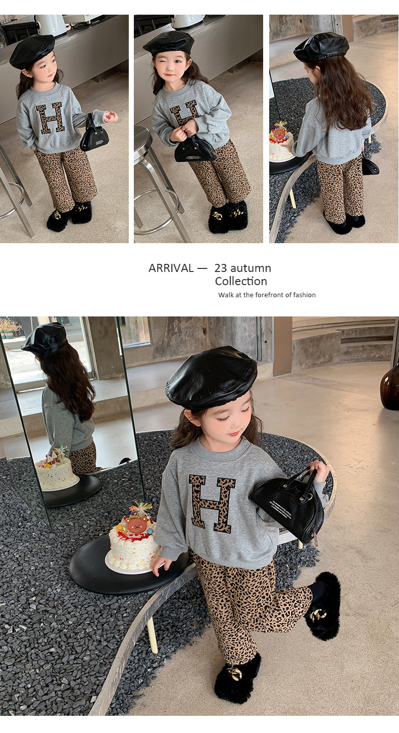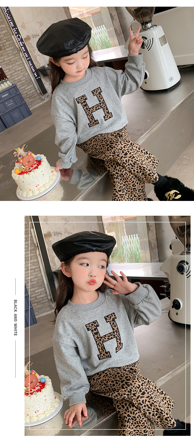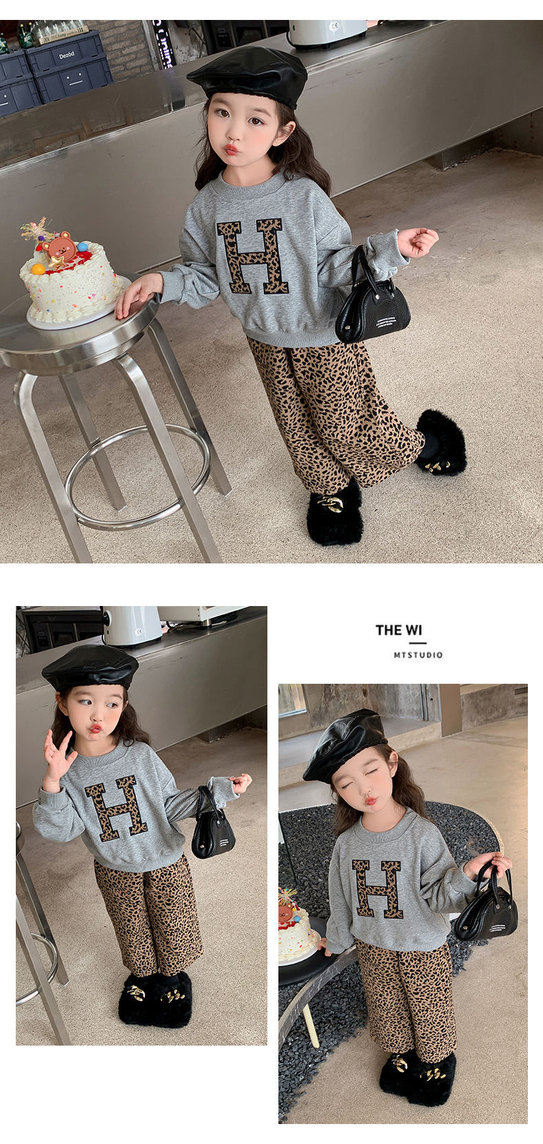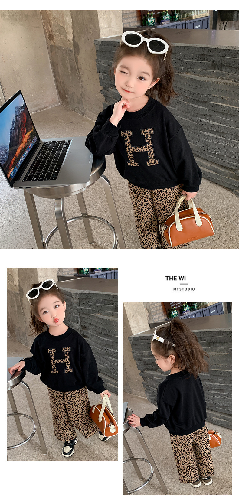 【chao好看,怎么穿都型!】潮流爆款套装女童春秋新款女,时尚洋气棉质卫衣儿儿童豹纹阔腿裤两件套,糅合运动和时尚,随心切换酷飒与甜心模式!