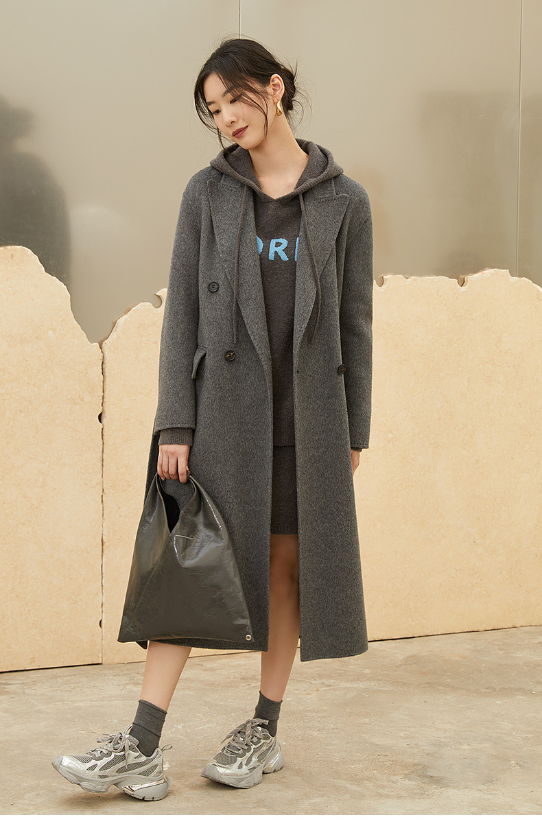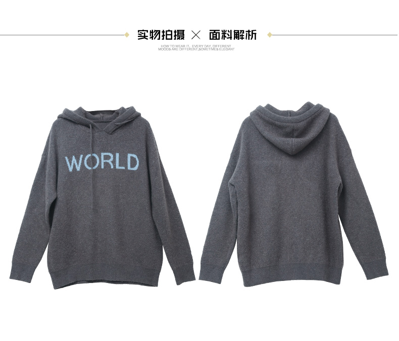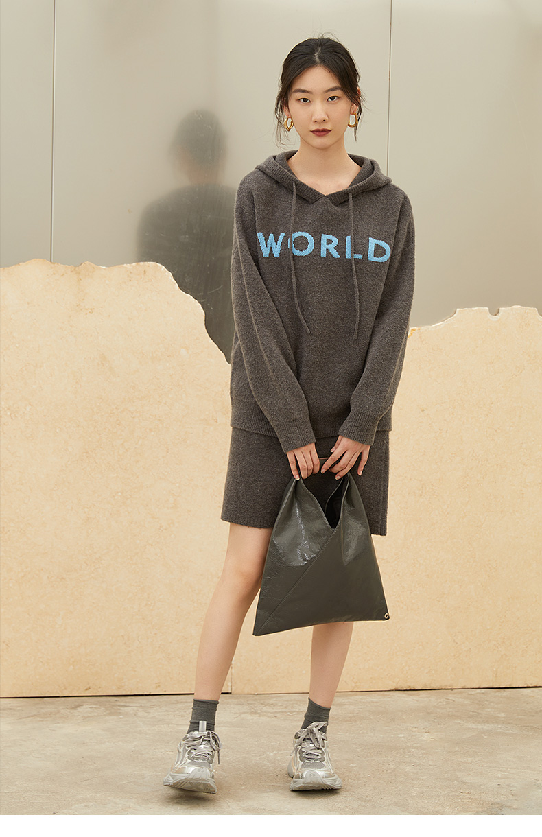 深灰连帽卫衣连衣裙套装 字母印花宽松针织两件套 休闲慵懒风秋冬舒适穿搭套组