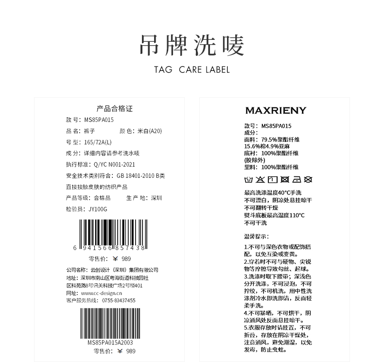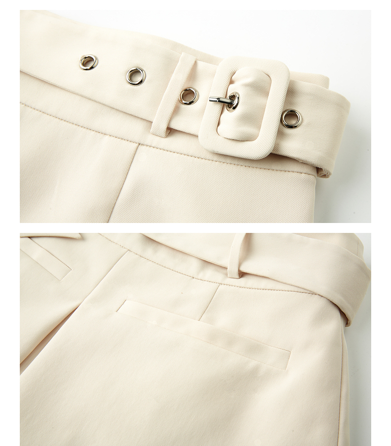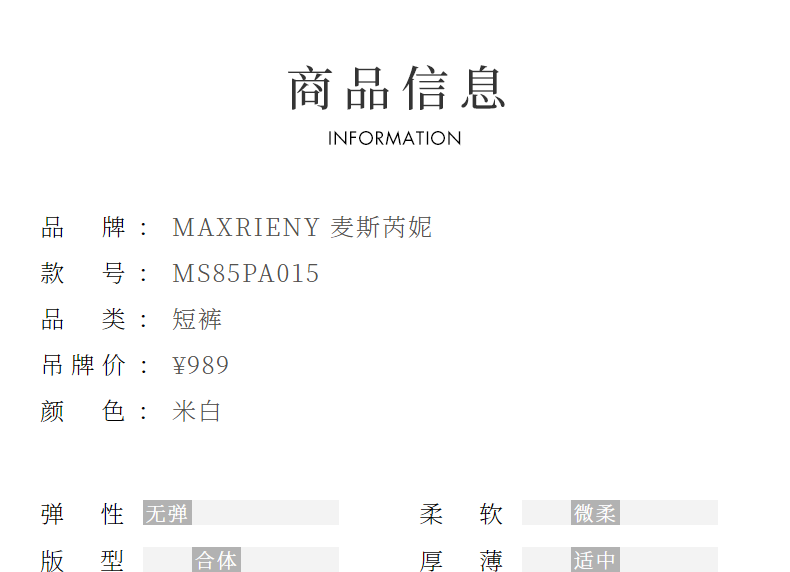 MAXRIENY精致复古感高腰a字裤裙气质春季新品米白直筒短裤(货号:MS85PA015)