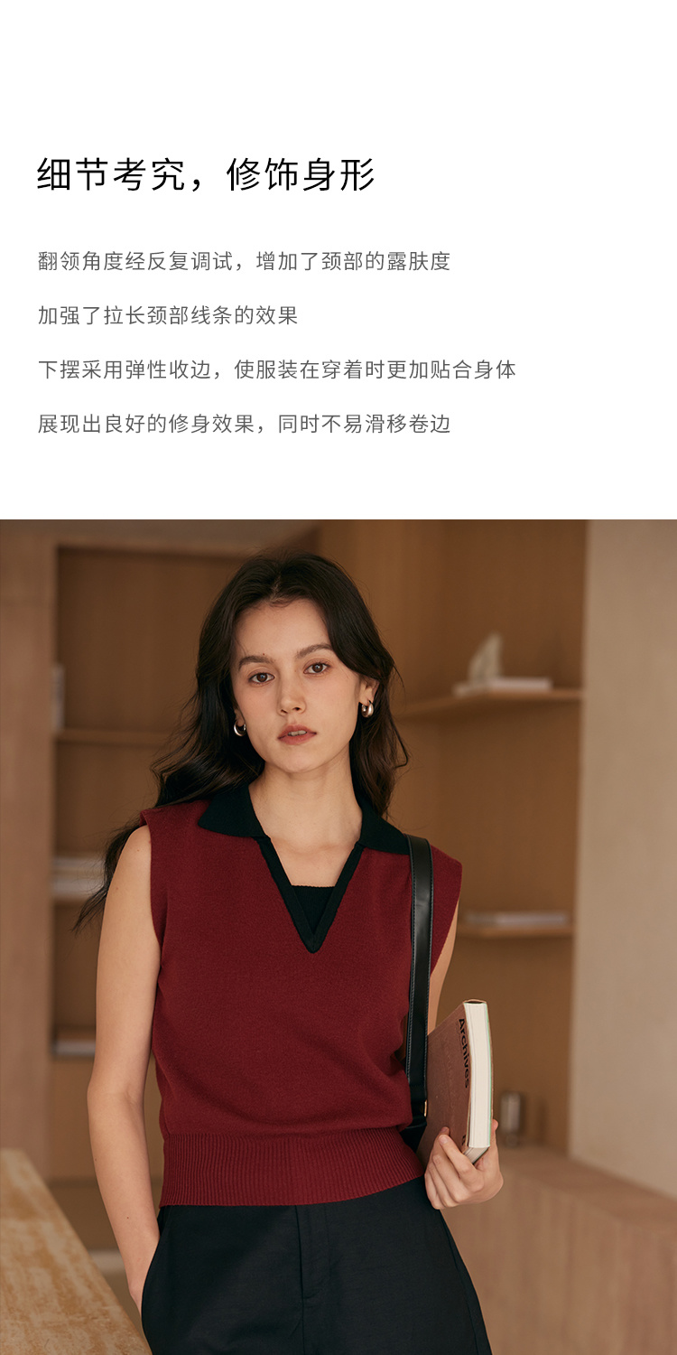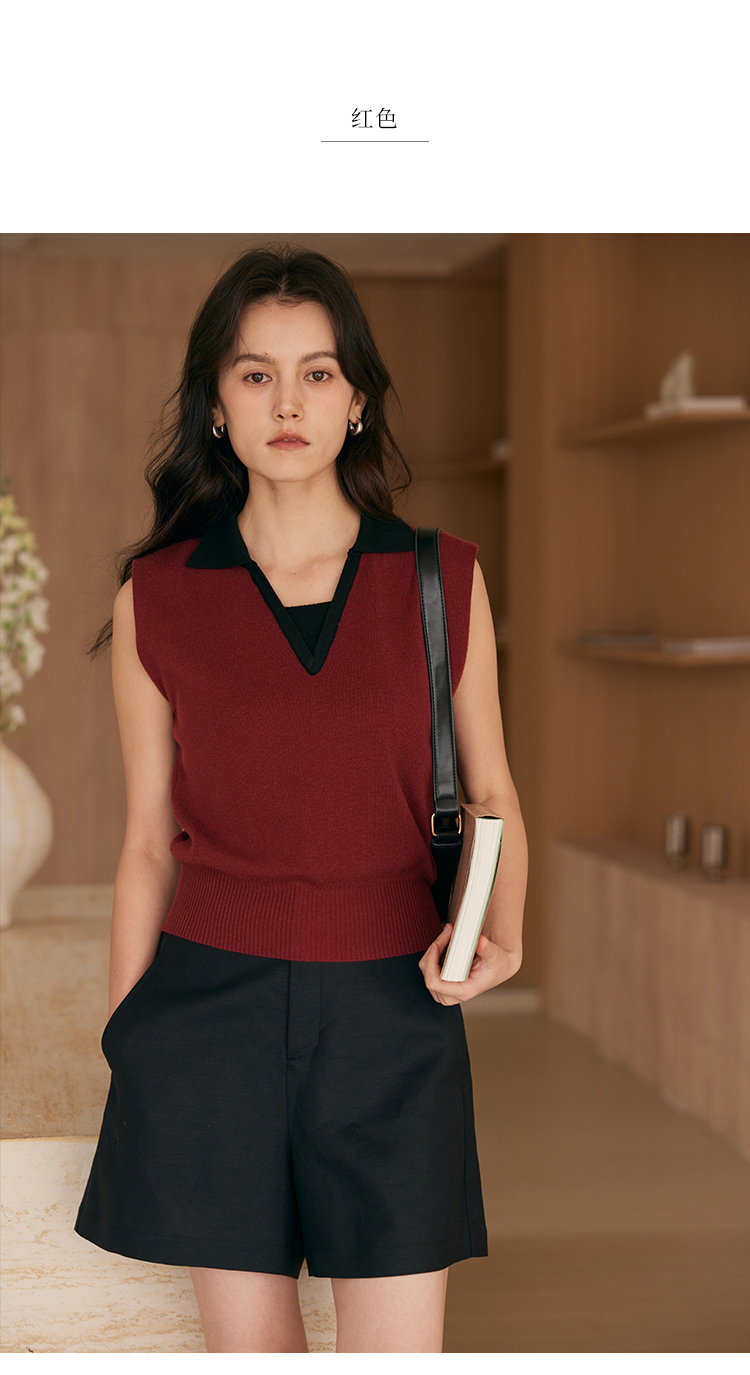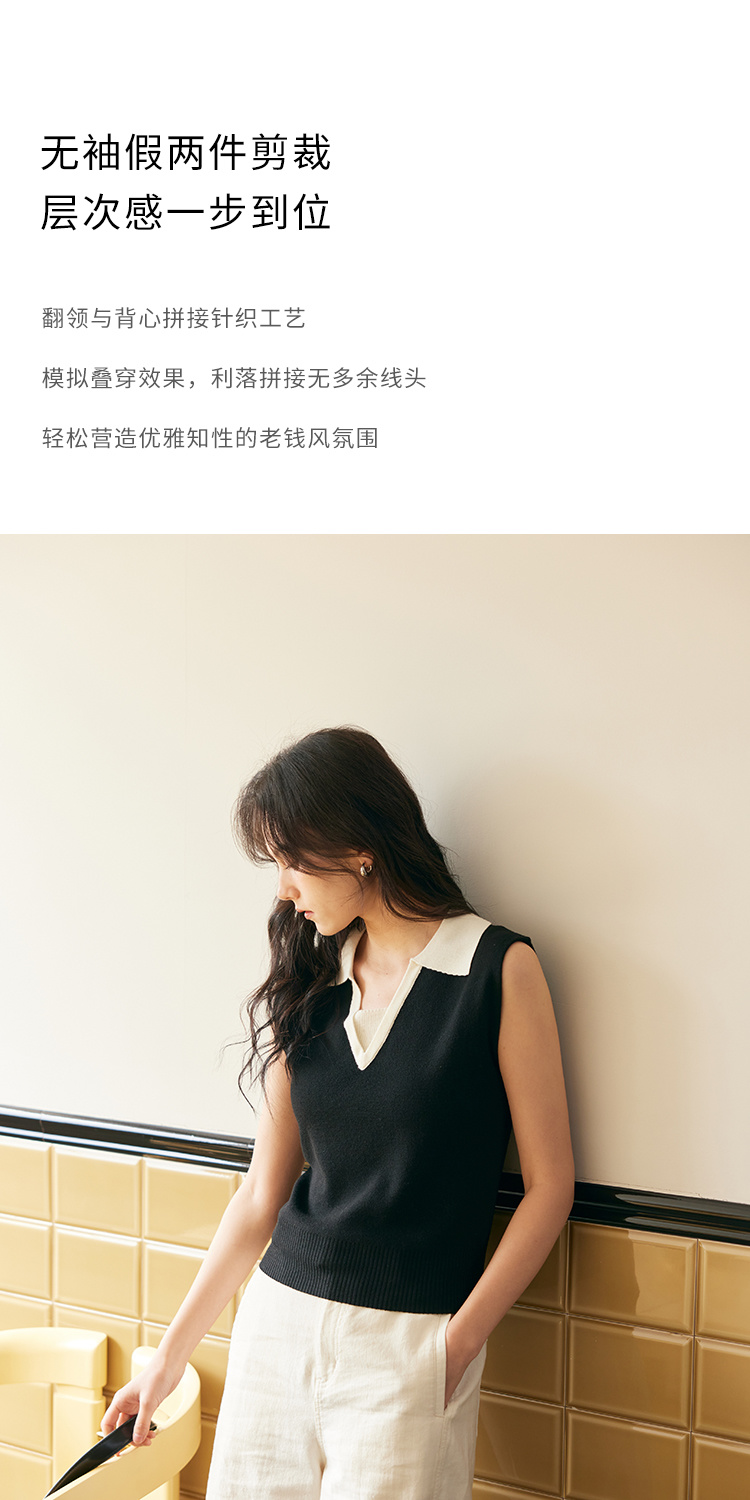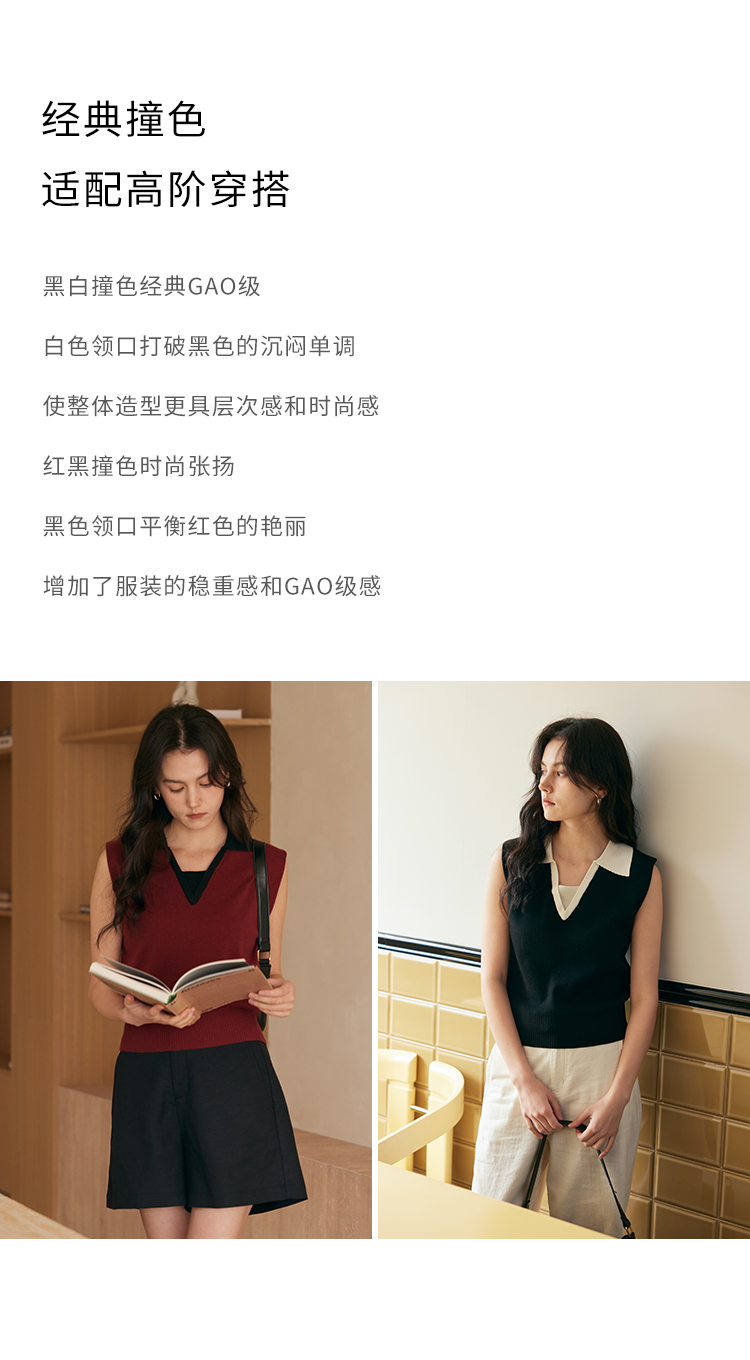 HeyDres撞色翻领针织背心女夏季复古宽松内搭新款外穿无袖短上衣