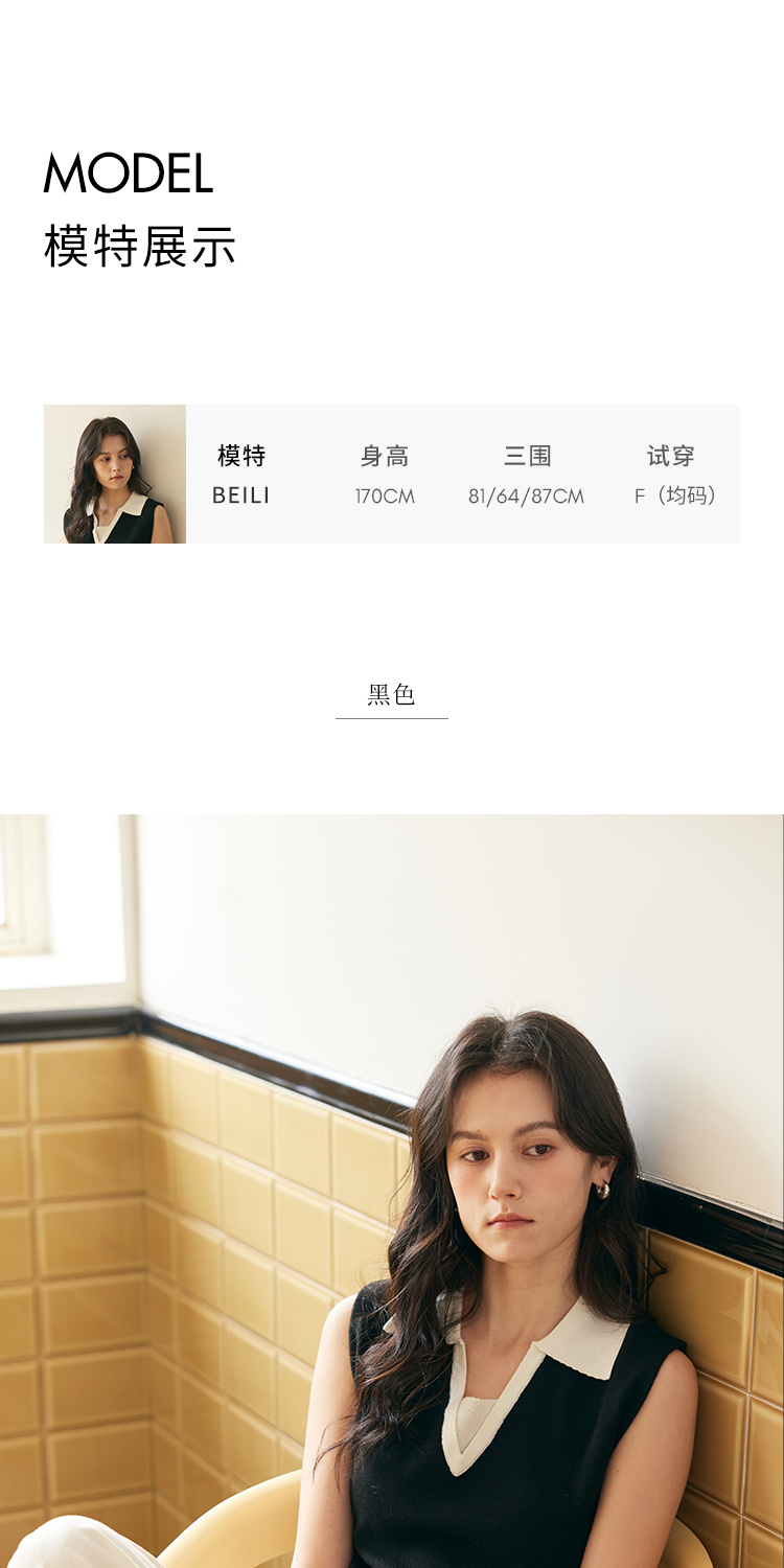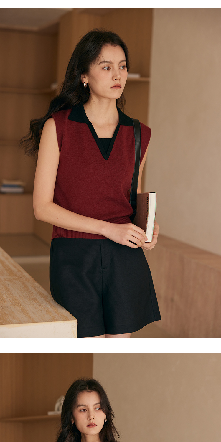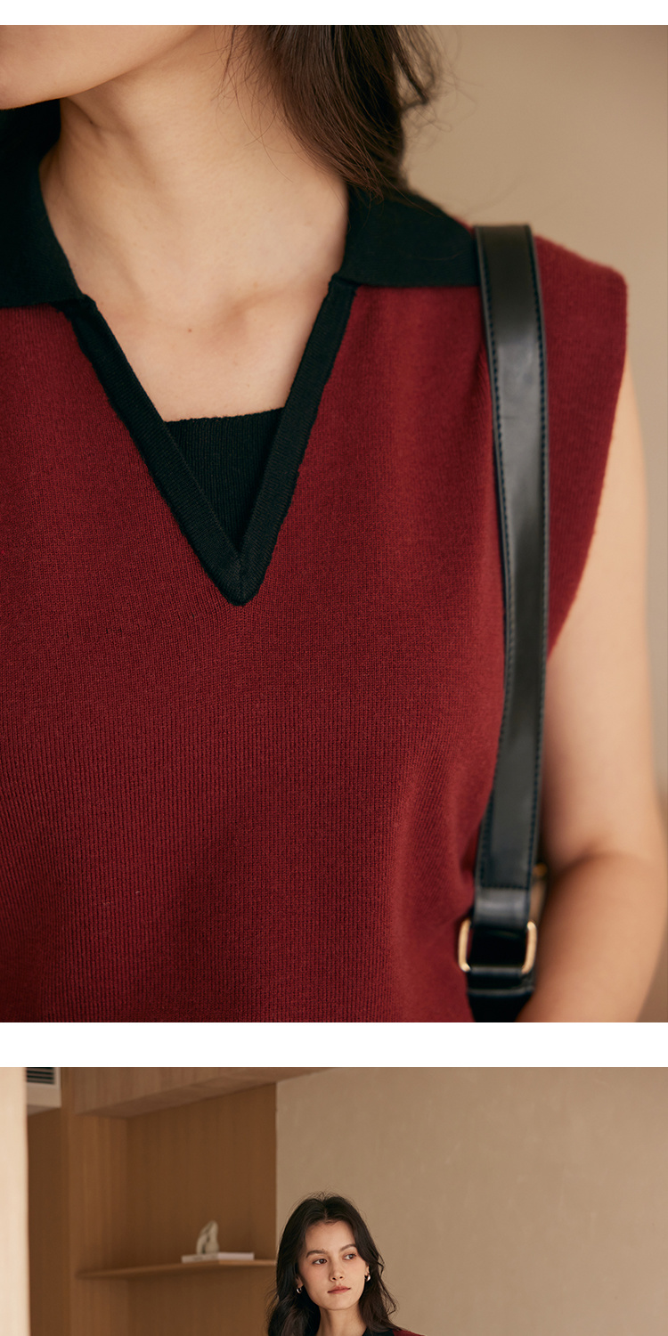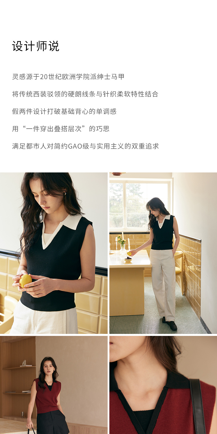 HeyDres撞色翻领针织背心女夏季复古宽松内搭新款外穿无袖短上衣
