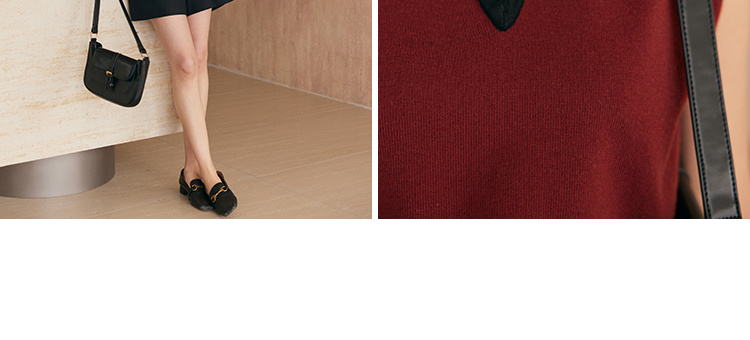 HeyDressV领开衩宽松羊毛毛衣/茧形针织松紧腰半裙