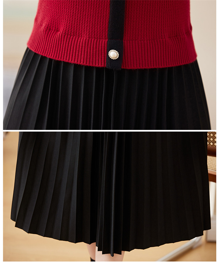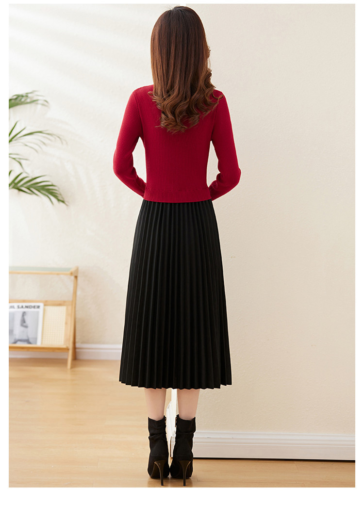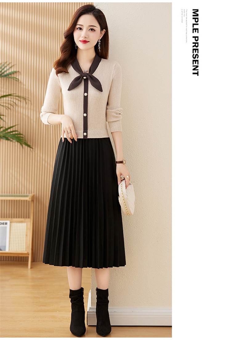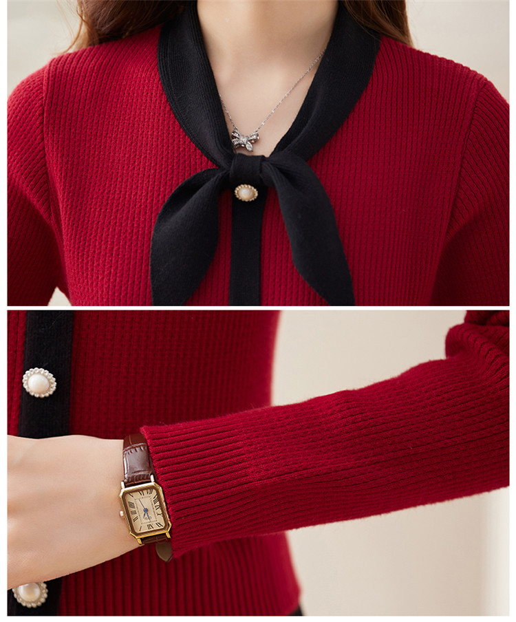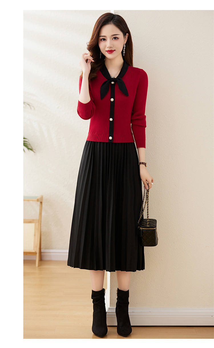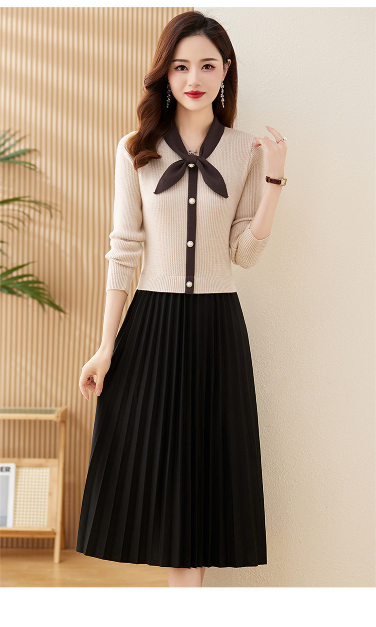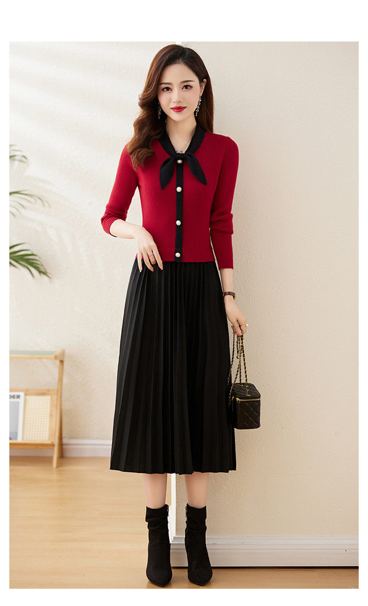 HR-WM21719冬上新气质时尚蝴蝶结领口拼接撞色假两件修身显瘦连衣裙