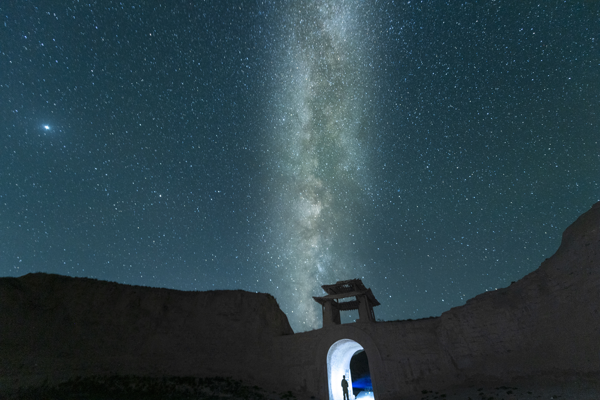 前往河西走廊东端,丝绸之路驿站,一座保存完好的明代城镇的永泰古城,也叫永泰龟城,因其城堡似一只金龟得名,距今已有400多年历史孤零零矗立在荒漠中。永泰古城日落、光汇、星空拍摄。