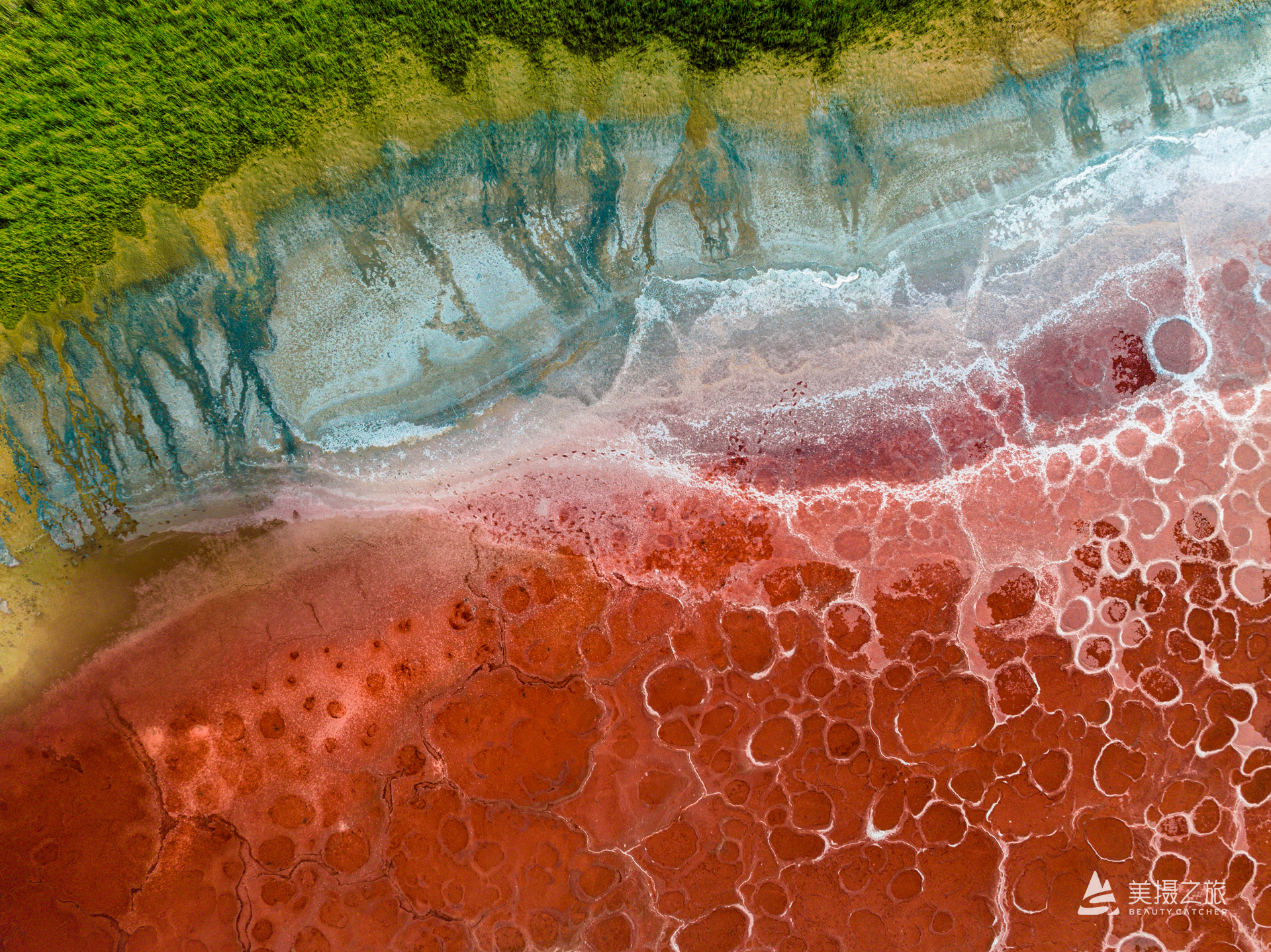远远望去,湖边堆堆盐囱恰似冰雪,湖面泛着银光,犹如沙海冰川。
