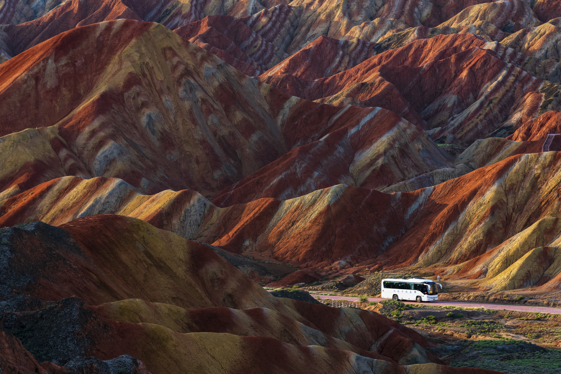 早上沙漠日出拍摄,离开巴丹吉林烧麦,前往张掖,张掖丹霞地貌在方圆五十平方公里山地丘陵地带,有造型奇特,色彩斑斓,气势磅礴的丹霞地貌。傍晚等候拍摄丹霞日落拍摄。
