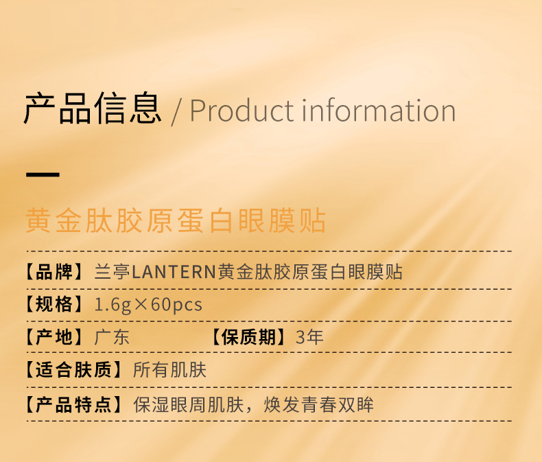 兰亭LANTERN黄金肽胶原蛋白眼膜贴 60片/盒