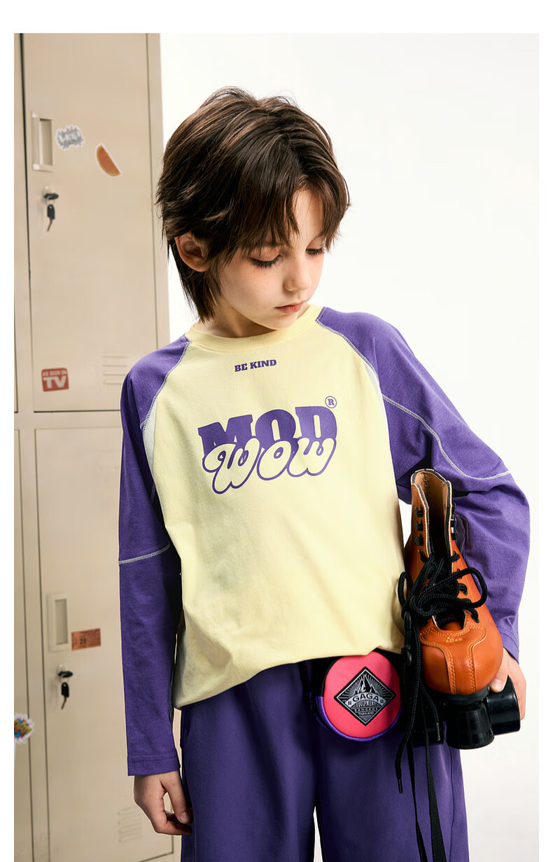 【MQD】男大童秋季潮酷休闲字母撞色长袖T恤
