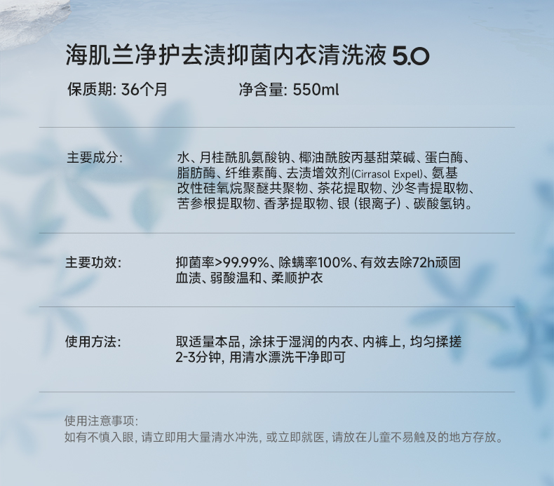 海肌兰第五代升级款内衣清洗液550ml除螨母婴可用