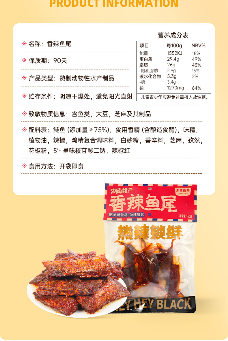【必尝特产】黑色经典香辣鱼尾160g 鲜香入味 辣得过瘾
