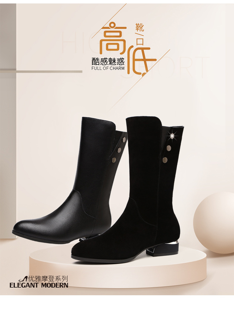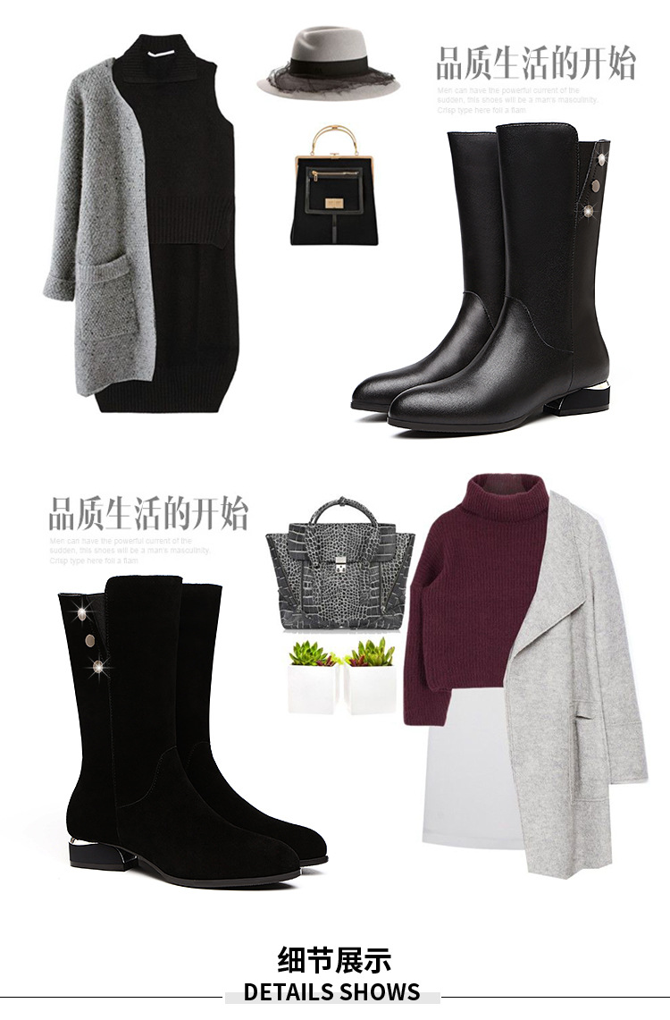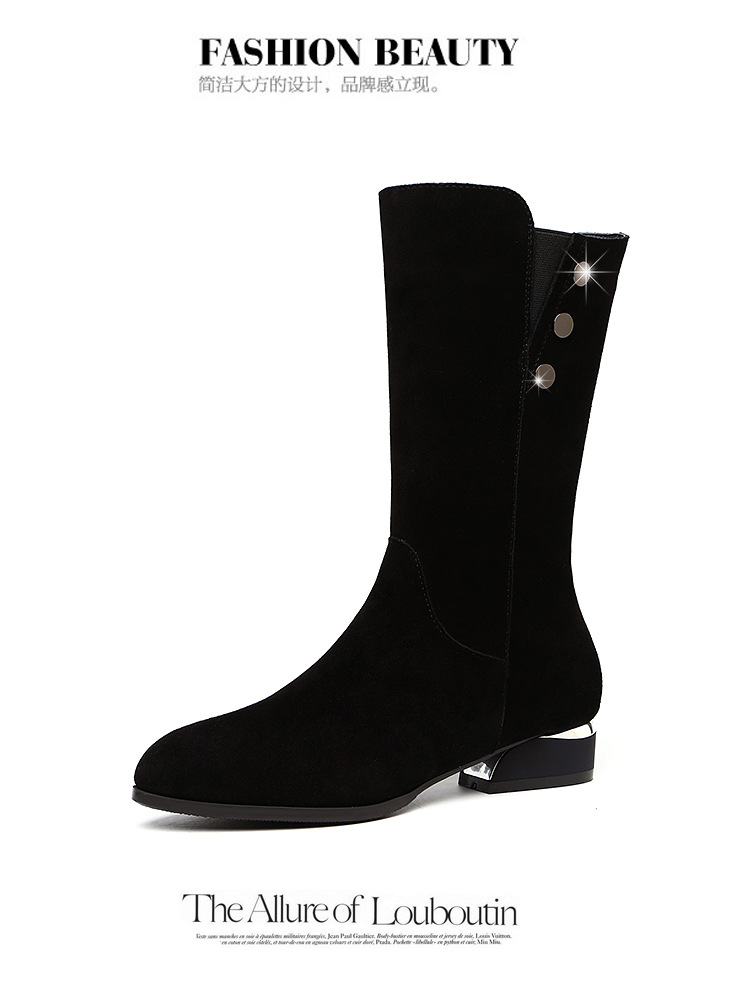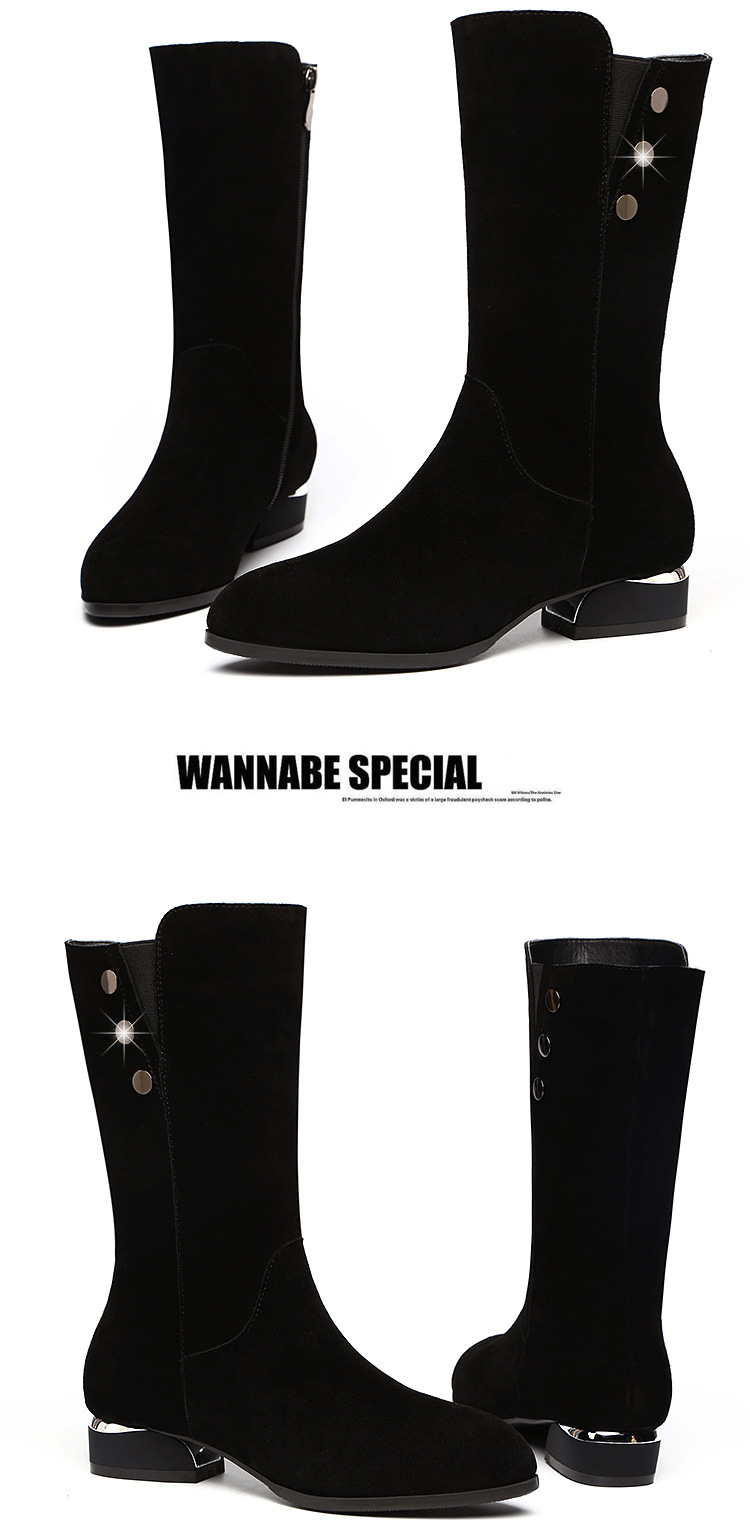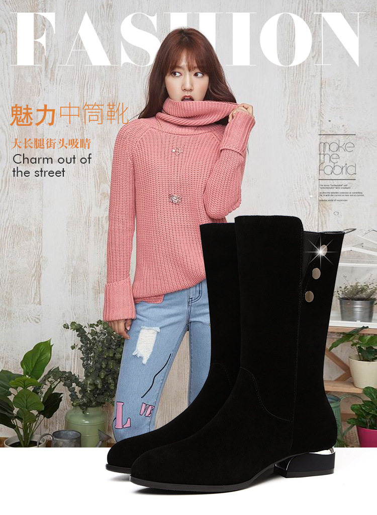 不过膝中筒靴女冬季加绒保暖磨砂皮平底马丁靴长靴子 LXHX2988