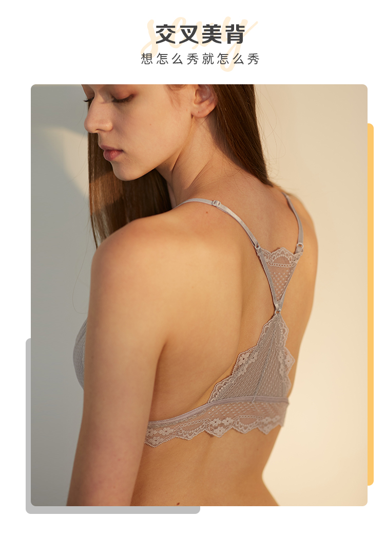 弗利少女法式内衣女性感蕾丝bra 无钢圈美背文胸轻薄透气胸罩夏季