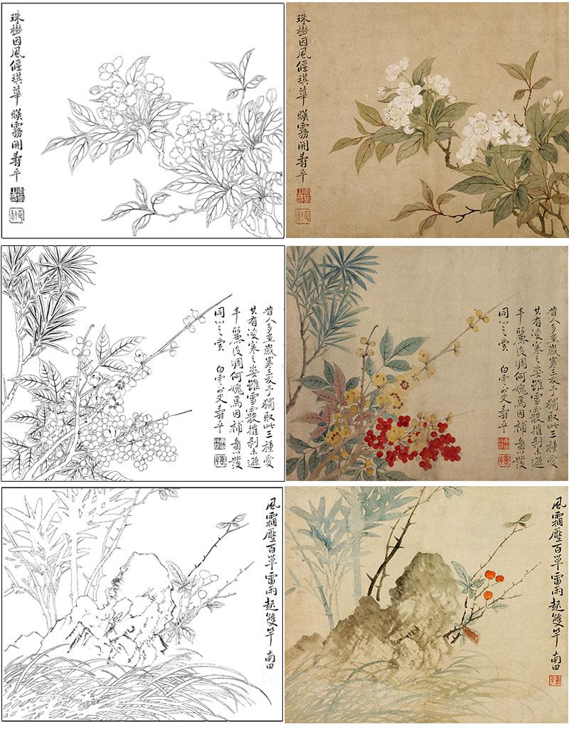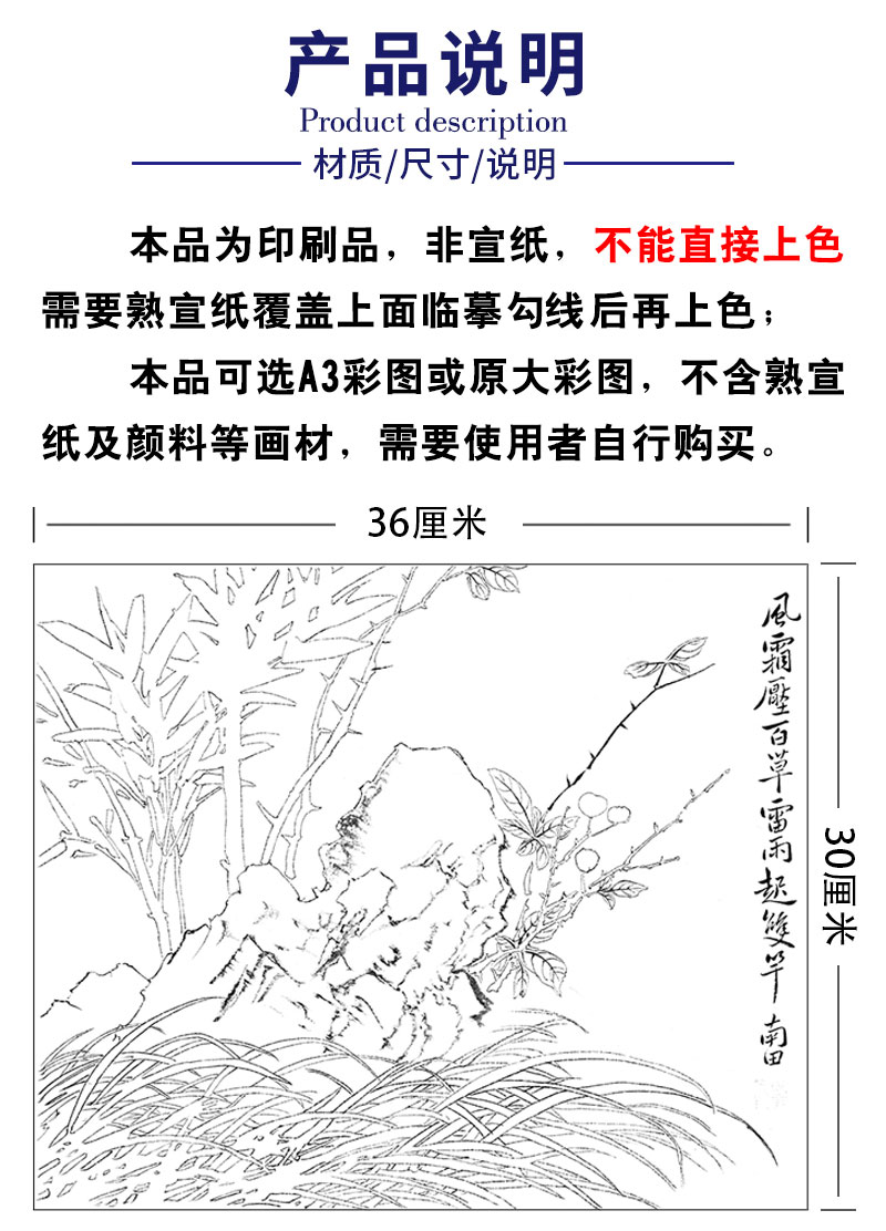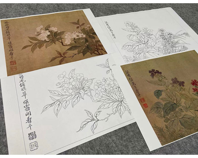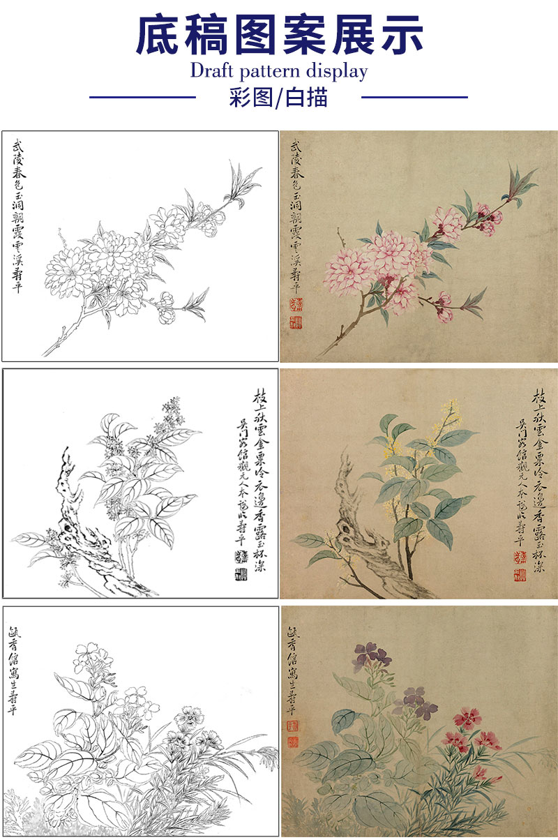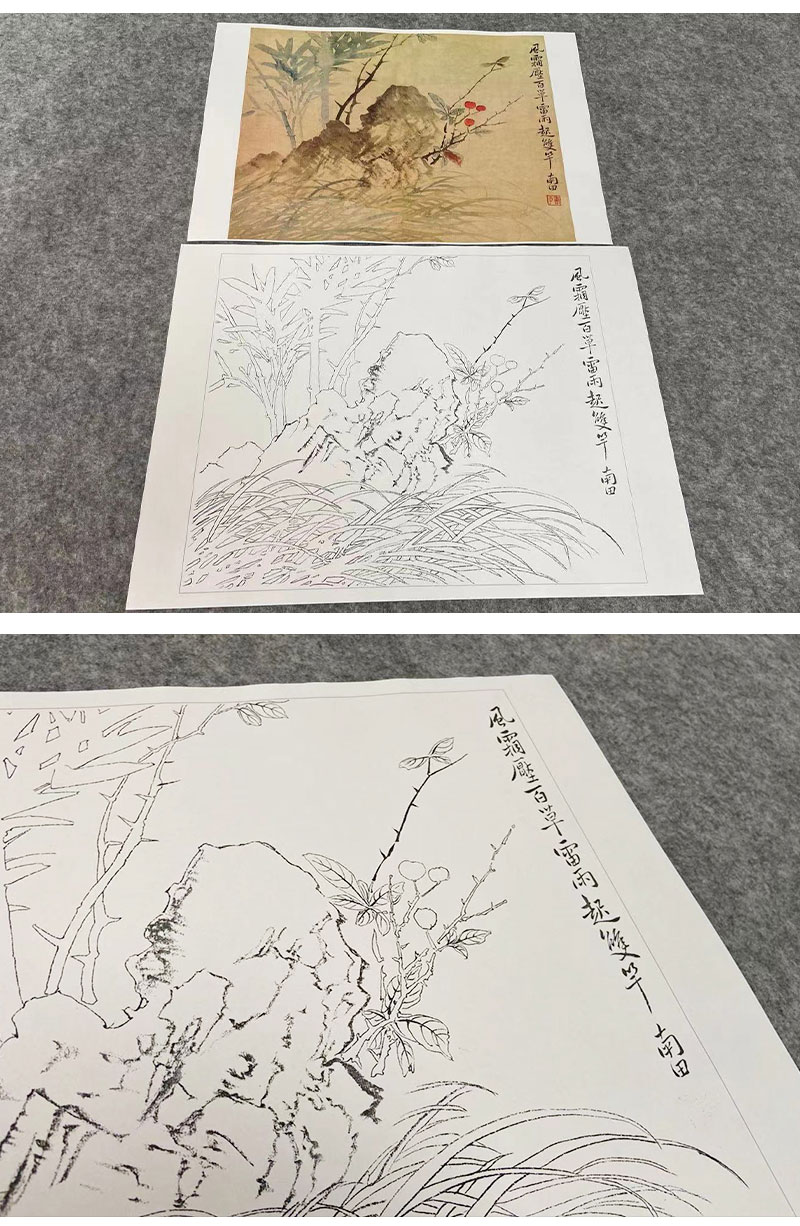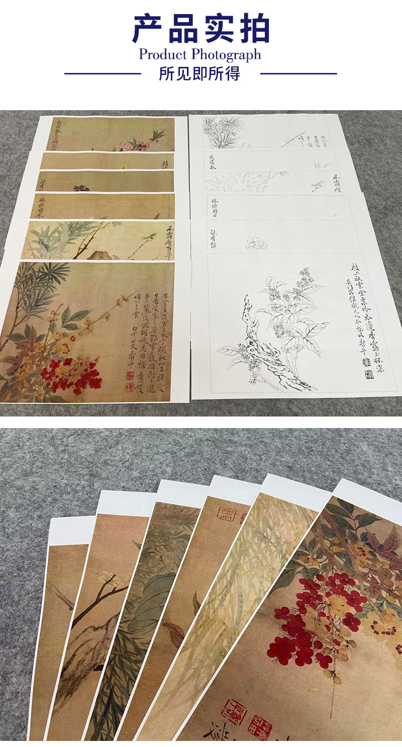 恽寿平工笔花鸟画白描底稿竹石桃花小品一套六幅册页初学者尺寸36*30厘米SP92