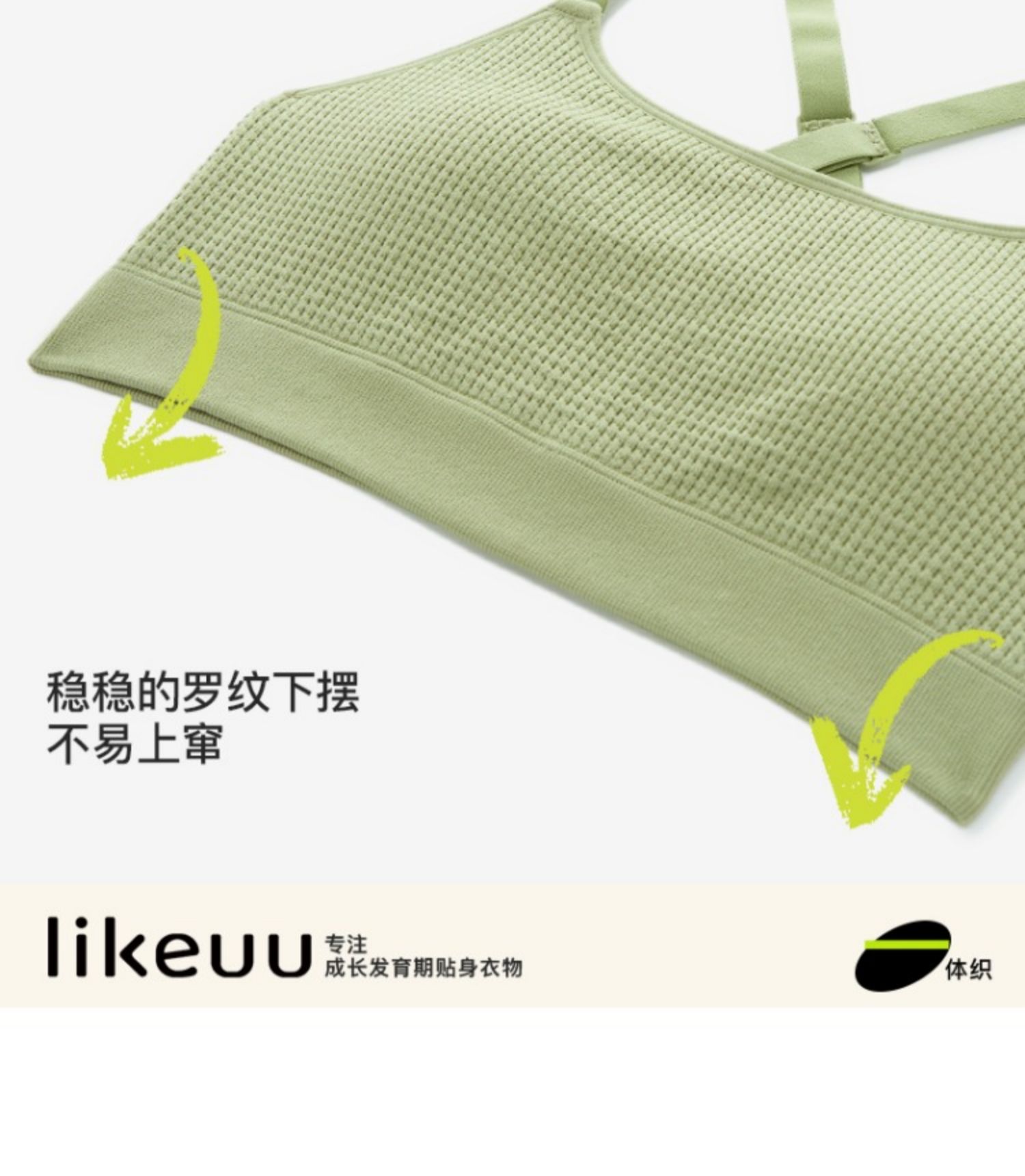 【低至5折】likeuu华夫格一体织发育期女童内衣学生文胸透气背心